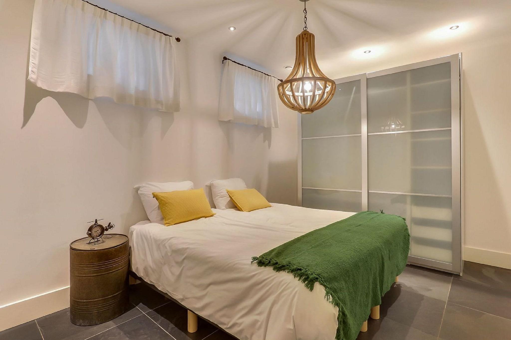 Stueetage: (entre(toilet), Stue(Fjernsyn(parabol), hyggepejs, DVD-afspiller), spisestue, Køkken(kaffemaskine, ovn, opvaskemaskine , køle-fryseskab), Soveværelse med badeværelse(dobbeltseng eller 2 enkeltsenge Senge, badekar, håndvask)) Kælderetage: (soveværelse(dobbeltseng eller 2 enkeltsenge Senge), soveværelse(2x køjeseng), Soveværelse med badeværelse(dobbeltseng eller 2 enkeltsenge Senge, bruser, håndvask), badeværelse(bruser, håndvask), toilet, toilet) åbent rum(dobbeltseng eller 2 enkeltsenge Senge), Bubble bath(privat), pulterkammer(tørretumbler, vaskemaskine), varme(central), terrasse, havemøbler, parkering, swimmingpool(deles med andre gæster)