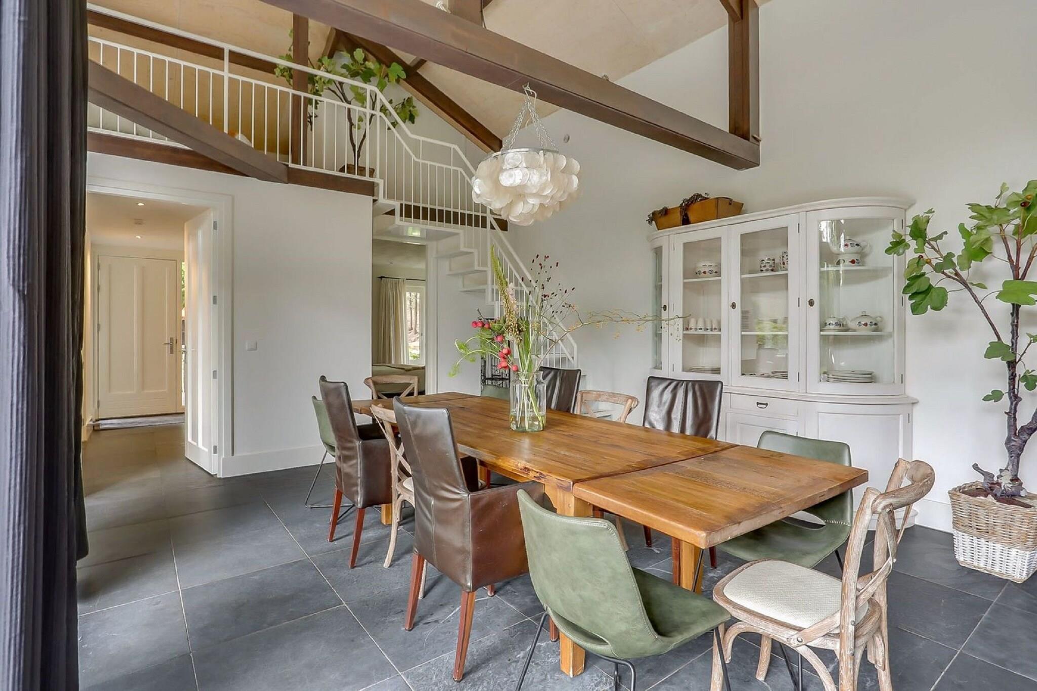 Rummelig skovvilla til familier og venner Velkommen til din ultimative grupperejse! Denne smukt designede 12-personers villa i Uden byder på generøs plads og komfort på tværs af tre unikke niveauer. Med fire soveværelser, tre moderne badeværelser og en hyggelig mezzaninloft, vil alle have deres eget hjørne at slappe af. Det åbne køkken er perfekt til fælles måltider, komplet med en stor spiseplads, ovn og opvaskemaskine. Et privat boblebad, dekorativ pejs og indbydende have gør dette hjem til en perfekt blanding af luksus og varme - ideel til familier eller grupper af venner, der ønsker at slappe af med stil. Direkte adgang til skoven og kæledyrsparadis Tag dine lodne ledsagere med - dette hjem er kæledyrsvenligt og har en privat port, der åbner direkte ind i skoven! Start dine morgener med gåture i skoven, lad din hund strejfe langs de grønne stier i nærliggende Herperduin, eller udforsk zonerne uden snor i Maashorst Nature Reserve. Den rummelige have er fantastisk til udendørs leg, mens den omkringliggende natur byder på uendelig hentevenlig sjov. Lokal charme og god mad Beliggende i hjertet af Nord-Brabant, er du kun få minutter fra Udens livlige bymidte, hvor du finder bagerier, lokale markeder og hyggelige caféer. Spis al fresco med din hvalp på hundevenlige steder som OONIVOO eller Brasserie ’t Zusje. Uanset om du nyder skoveventyr eller slapper af under stjernerne, lover denne villa et forfriskende og mindeværdigt ophold for alle - haler inkluderet!
