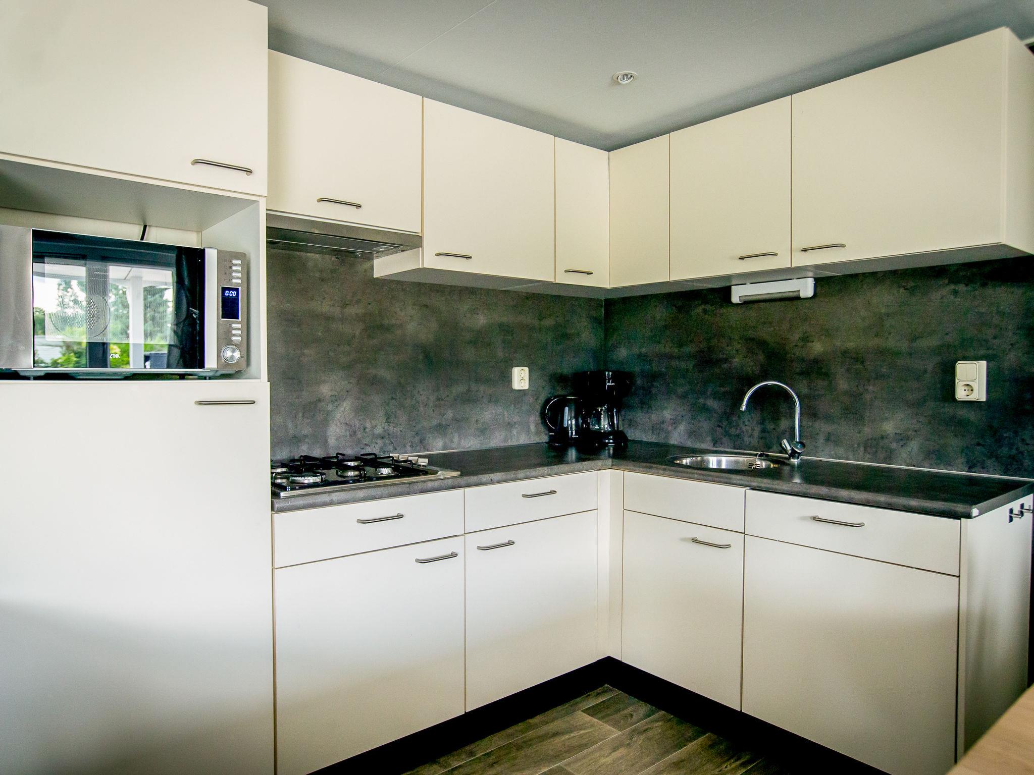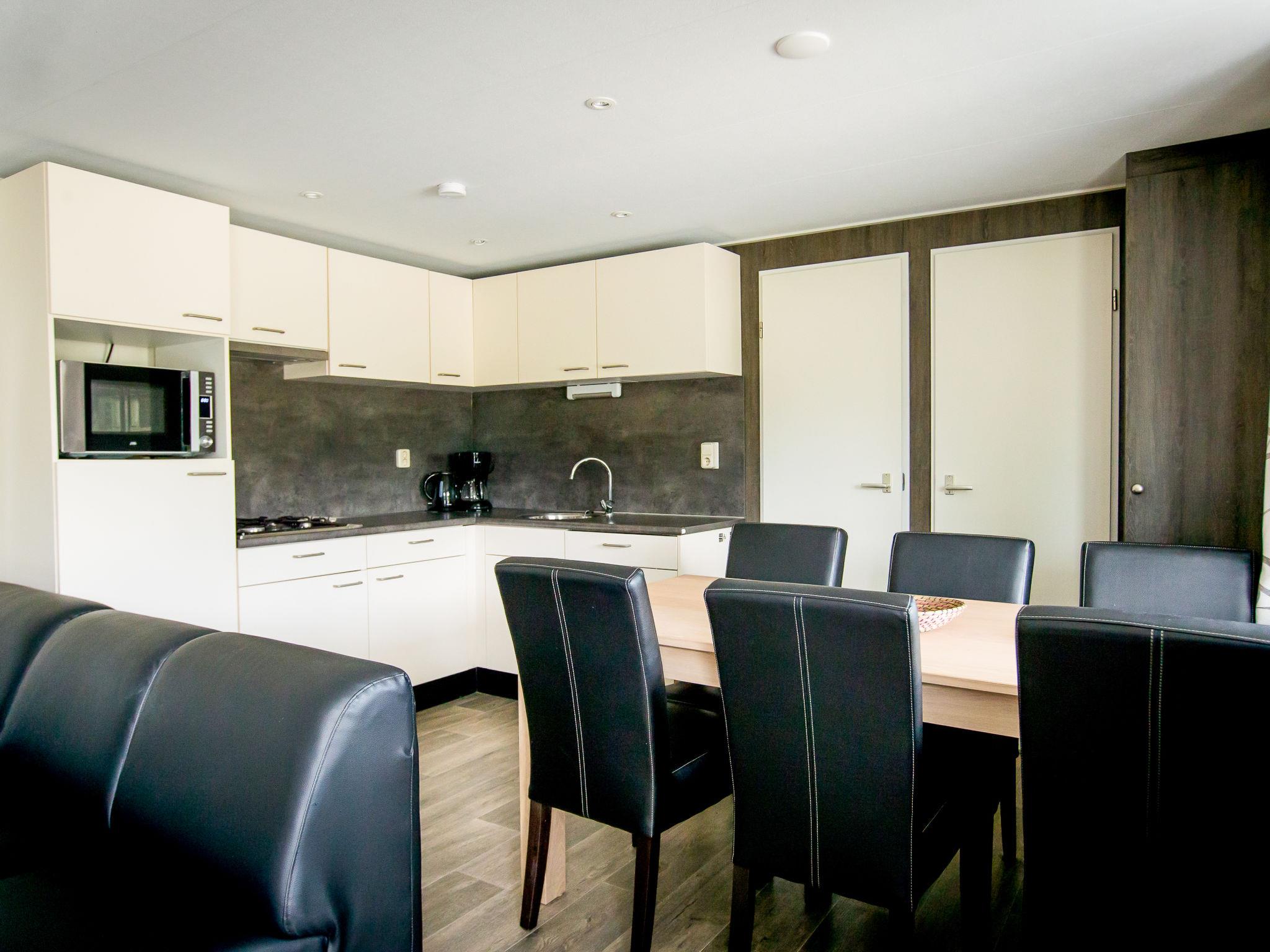 "Duinlodge", 4-room chalet 43 m2. Comfortable furnishings: with separate WC. Open living/dining room with TV. Exit to the terrace. 1 double bedroom with 1 x 2 bunk beds (80 cm, length 200 cm). 2 double bedrooms, each room with 2 beds (80 cm, length 200 cm). Open kitchen (4 hot plates, dishwasher, kettle, electric coffee machine, combination microwave). Shower. Heating. Terrace furniture. Facilities: Internet (WiFi, free). Parking (1 car) at the house. Please note: non-smoking house. Smoke alarm.