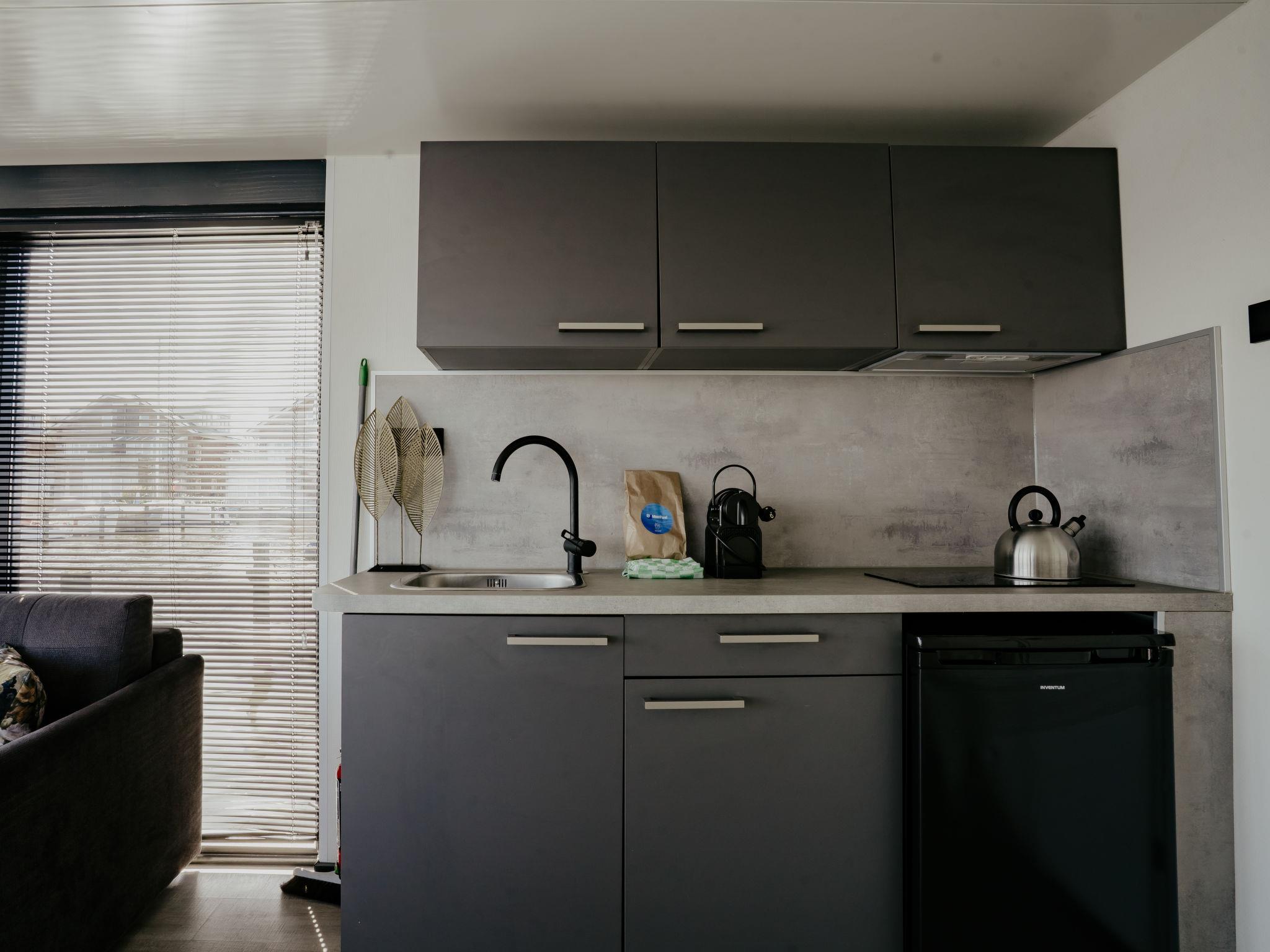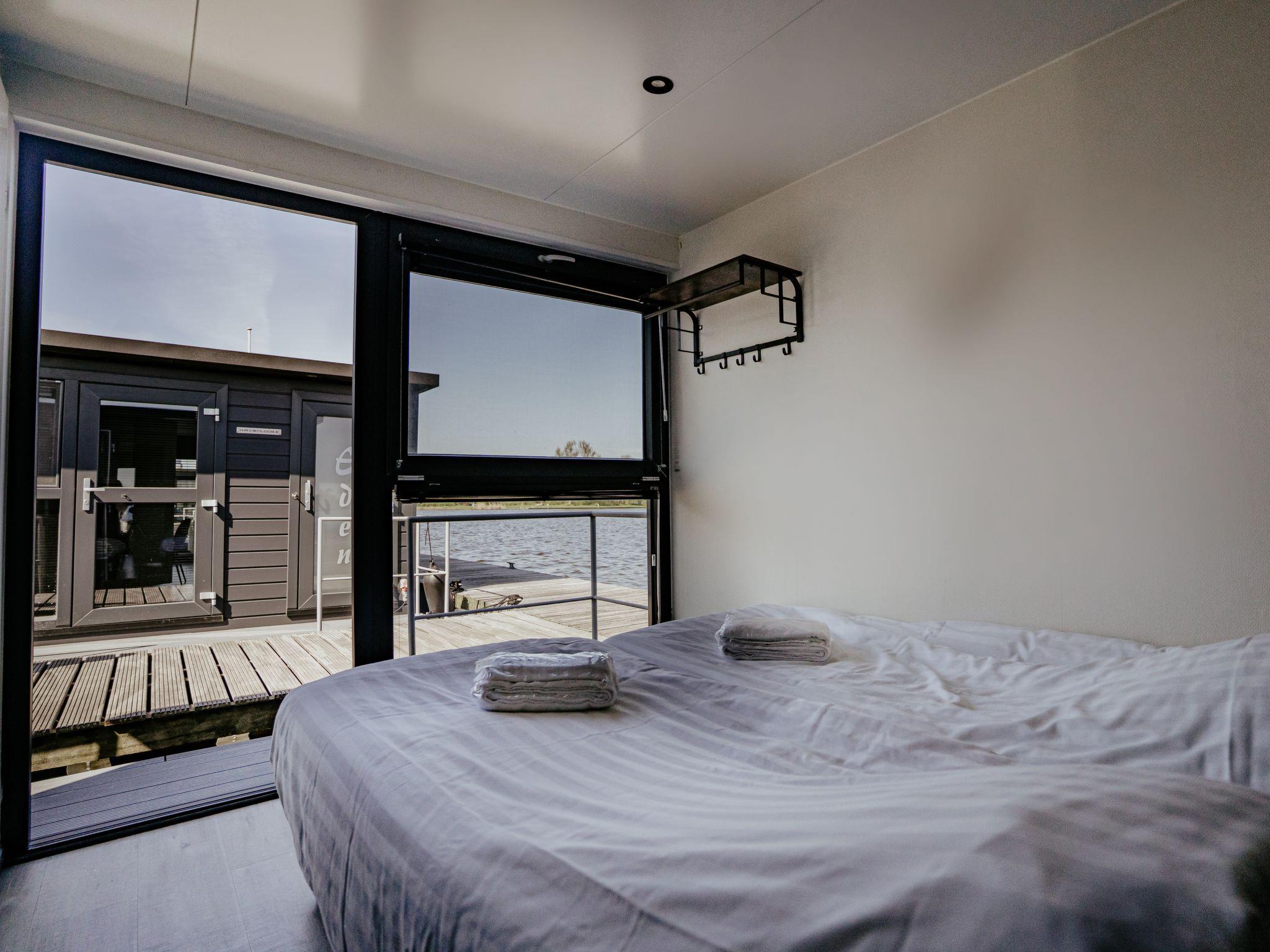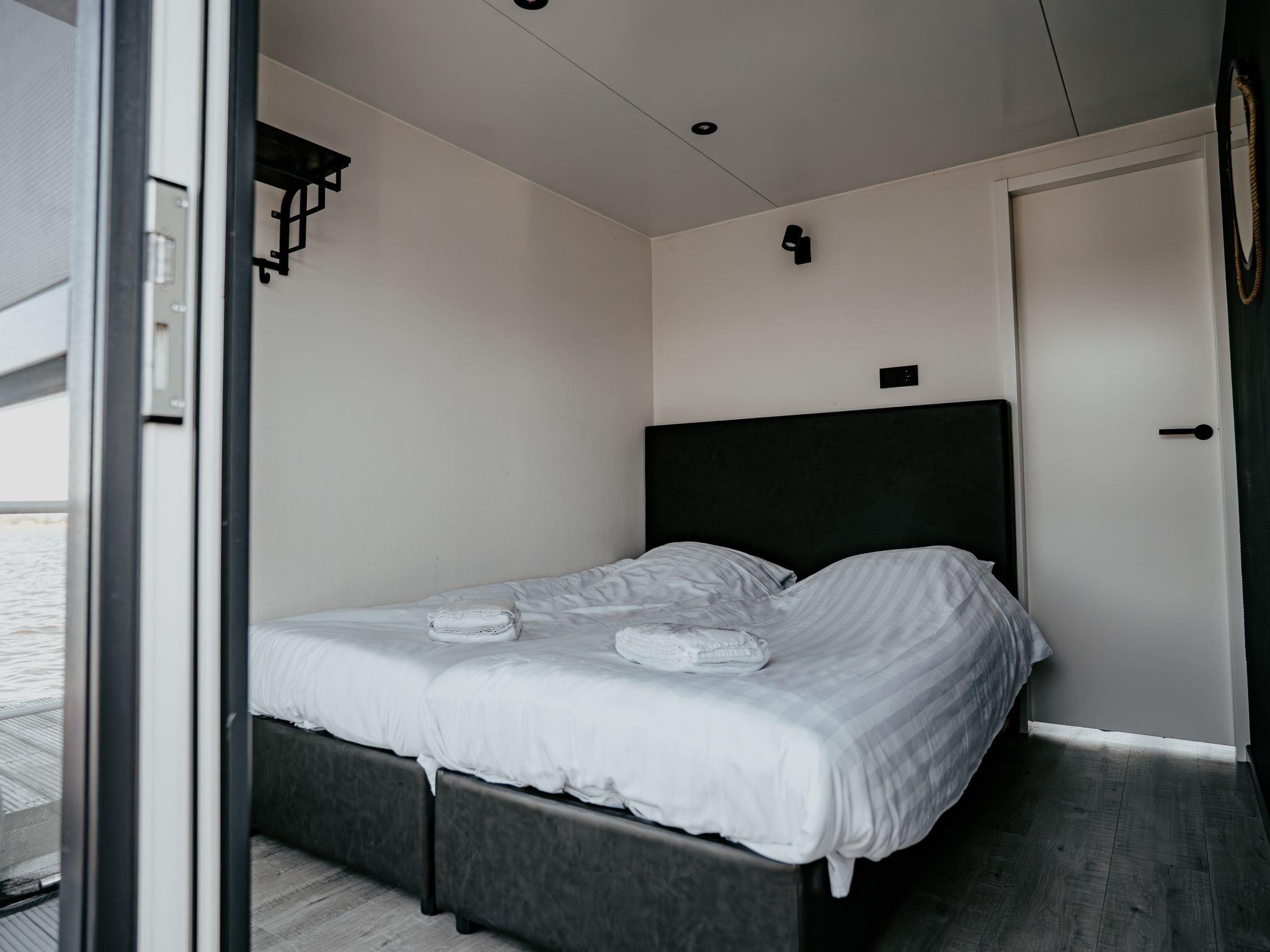 "Havenlodge", 3-room house 26 m2. Comfortable furnishings: living/dining room with dining table and flat screen. Exit to the terrace. 1 room with 1 double bed. Exit to the terrace. 1 double bedroom with 1 x 2 bunk beds. Small, open kitchen (4 induction hot plates, electric coffee machine). Shower/WC. Air-conditioning. Terrace. Terrace furniture. Panoramic view of the lake. Facilities: Internet (WiFi, free). Please note: non-smoking house. Maximum 2 pets/ dogs allowed. Smoke alarm. Air conditioning with heating function. This is a houseboat.