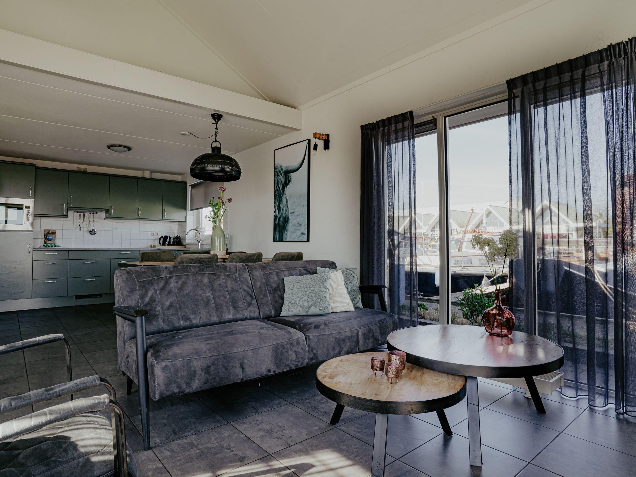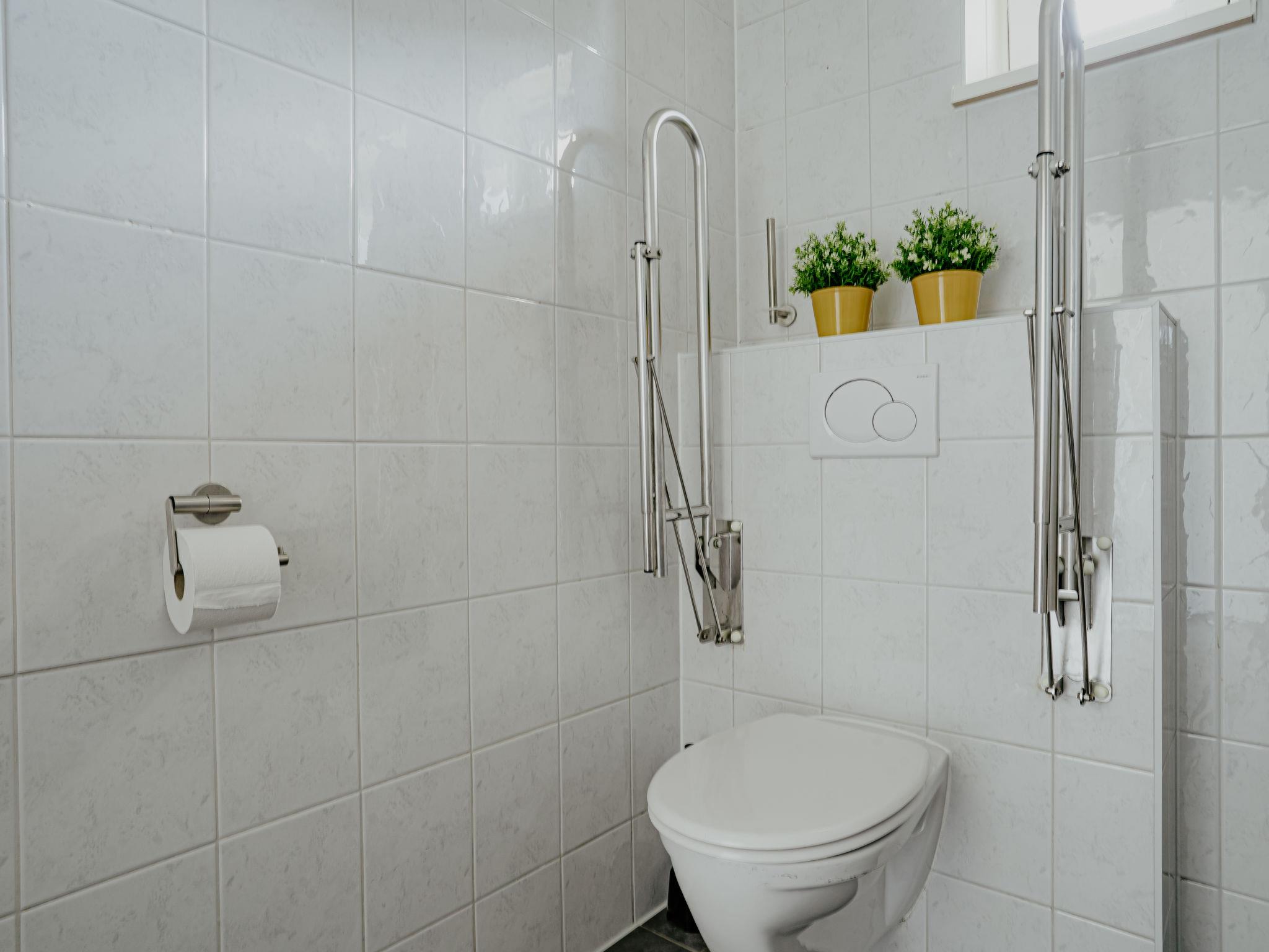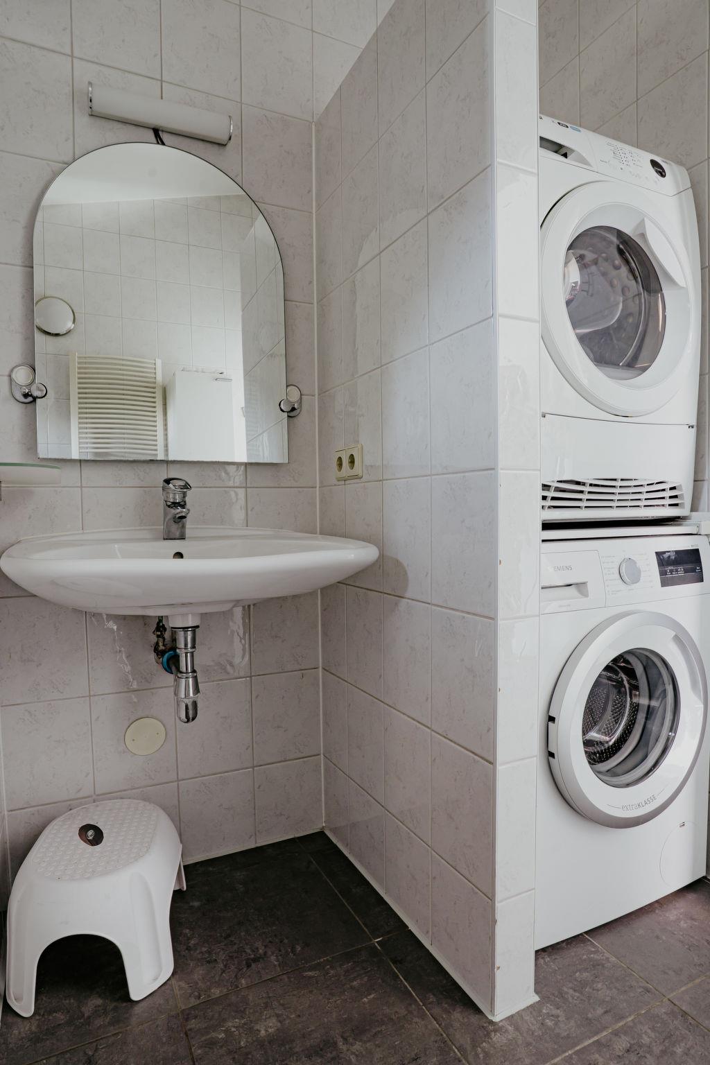 "Kraaijennest", 4-room house 103 m2. Bright, comfortable furnishings: entrance hall. Living/dining room with dining table and TV. Exit to the terrace. 1 double bedroom with 1 x 2 bunk beds. 1 room with 2 beds. Open kitchen (dishwasher, 4 induction hot plates, kettle, electric coffee machine, combination microwave). Shower/WC. Heating. Upper floor: 1 room with 2 beds. Small terrace. Terrace furniture. Partial view of the lake. Facilities: washing machine, dryer. Internet (WiFi, free). Parking (1 car) at the house. Please note: non-smoking house. Smoke alarm. Please note that the property is suitable for disabled. 1 bedroom on ground floor has one adjustable single bed. The shower in the bathroom (also on ground floor) is a wallseat shower. The toilet has a wall mount and throughout the house there are no thresholds.
