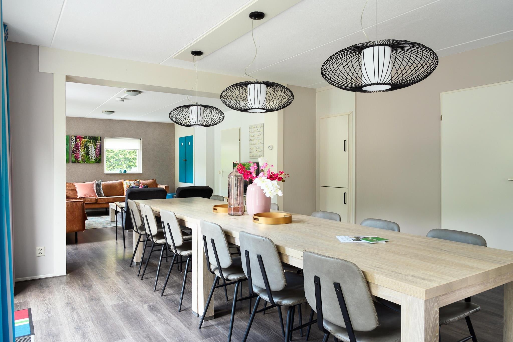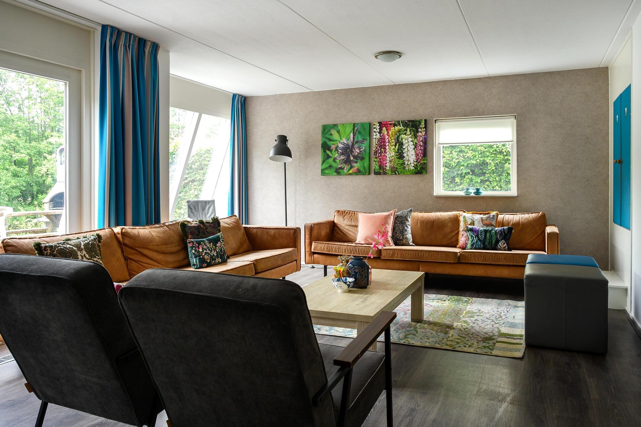 Dette hyggeligt indrettede familie- og vennerhus ligger i udkanten af skoven. Det er ideelt til en ferie med en stor gruppe venner eller familier. Huset har wellness-faciliteter såsom et brændefyret spabad i haven og en finsk sauna med lysterapi og infrarøde varmeovne Det lyse, solrige hus er moderne og praktisk indrettet. Nedenunder er der 2 soveværelser og 2 badeværelser, ovenpå er der 4 soveværelser, 2 med altaner og 2 badeværelser. Huset ligger på et lille hegn i skovbrynet og en kort gåtur fra den subtropiske swimmingpool. Vlagtwedde er kendt for sit maleriske landskab, rige historie og kulturarv. Det ligger tæt på grænsen til Tyskland og er omgivet af skove , enge og floder Du kan nyde gåture, cykle og fiske i de nærliggende naturreservater. Den solrige have har en stor og rummelig terrasse med et luksuriøst loungesæt, 2 luksuriøse liggestole, et picnicbord, et barbord med 4 stole og en udendørs pejs/grill. For børnene er der en legeplads med en sandbanke og en trampolin. Der er en badestige i vandet bag huset. Der er også 2 SUP boards til rådighed, med hvilke du kan gå direkte på vandet fra huset.