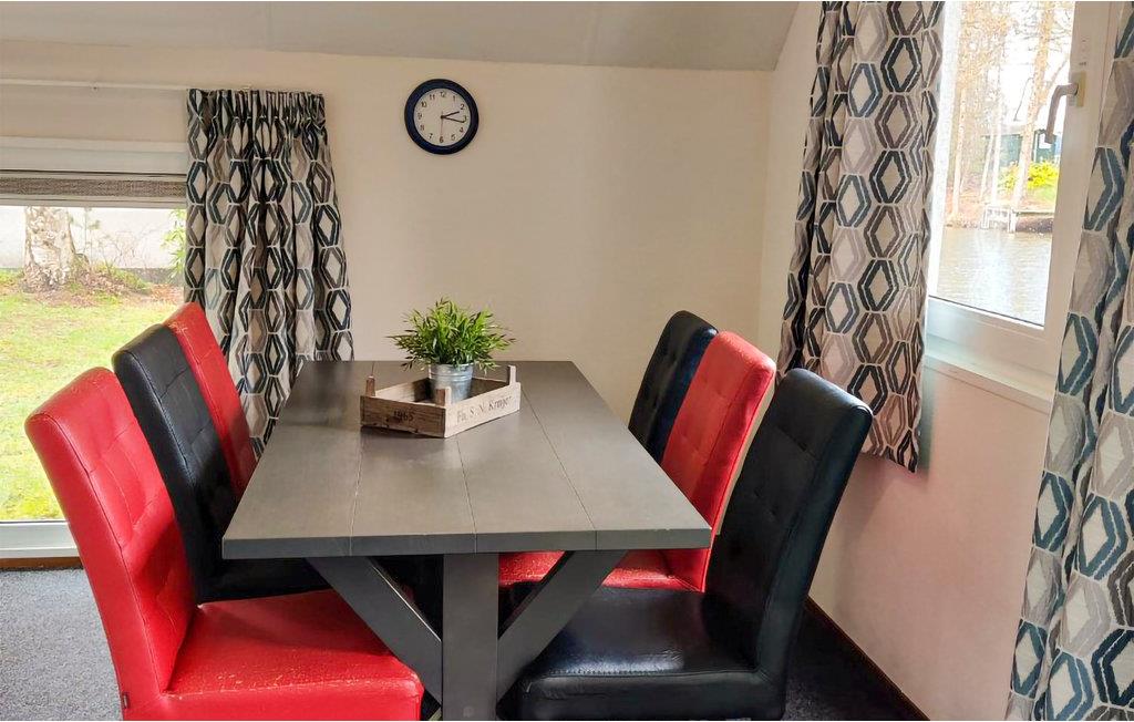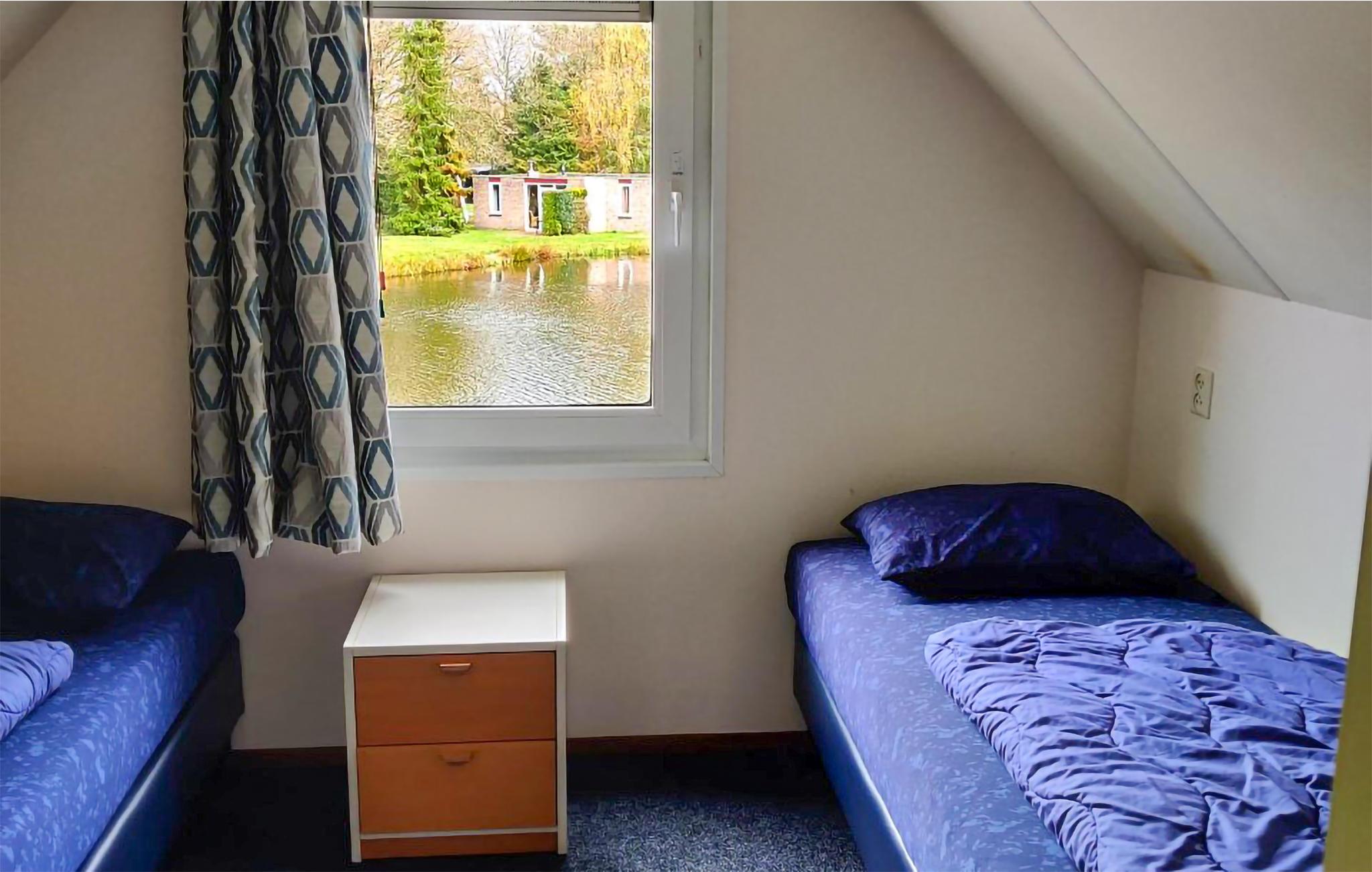 Dette feriehus i Drehnte ligger skønt ved vandet i en feriepark med skov i Vledder. På grund af beliggenheden er huset velegnet for fiskere. I stueetagen er der opholdsstuen med udsigt til vandet og adgang til terreassen. Der er to soveværelser på første sal. Her har I rolige og naturskønne rammer for en ferie i Holland. Ferieparken er udstyret med ktalrige forlystelser og aktiviteter - beregnet til alle aldre. Der er Minigolf (april til november), fiskedam, tennisbane, bocciabane, bordtennis, fodbold- og volleyballbane, klappezoo og forskellige legepladser. Her vil børnene føle sig hjemme. Den skønne by Steenwijk ligger 10 km fra huset. Blandt de andre oplagte udflugtsmål er Tyreparken Taman Indonesia, landsbyen Giethoorn. Ved receptionen er der oplysninger om vandreruter og cykelruter. Mod betaling kan I benytte det nærtliggende friluftsbad.