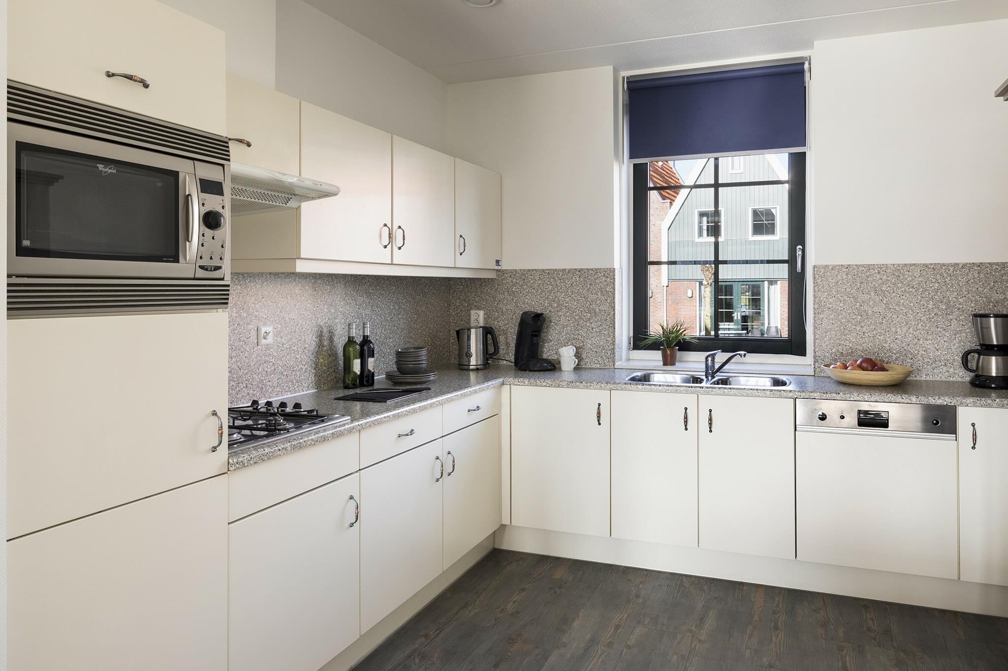 Oplev en afslappende ferie i dette stilfulde, nyrenoverede to-etagers hus i Marinapark Volendam. Med en lys stue, smart-tv og et fuldt udstyret åbent køkken – inklusive opvaskemaskine og mikroovn – har du alt, hvad du behøver for et bekvemt og hyggeligt ophold. Ovenpå tilbyder to rolige soveværelser fleksible sovepladser med boxmadrasser, og et elegant badeværelse med bruser fuldender rummet. Træd ud på din private altan med havemøbler og nyd udsigten over den maleriske marina. Dette hjem ligger i hjertet af Volendam og tilbyder det bedste fra begge verdener: en fredelig park og nem adgang til en af Hollands mest ikoniske landsbyer. Slentre rundt i havnen med dens charmerende træhuse, besøg Volendam Museum eller tag en kort færgetur til den maleriske ø Marken. Gæsterne har også adgang til den fælles indendørs swimmingpool, der er perfekt til afslapning året rundt. Volendam er et paradis for madelskere, især hvis du har lyst til friske fisk og skaldyr. Gå til de nærliggende restauranter ved diget og smag røget ål, sprød kibbeling eller sild tilberedt på traditionel hollandsk vis. For et afslappet måltid kan du sætte dig på en terrasse og se bådene glide forbi. Bemærk: Kæledyr er ikke tilladt, hvilket sikrer et rent, allergivenligt rum for alle gæster. Uanset om du er her for den berømte Volendam-messe eller et roligt ophold ved vandet, er dette hjem det perfekte match.