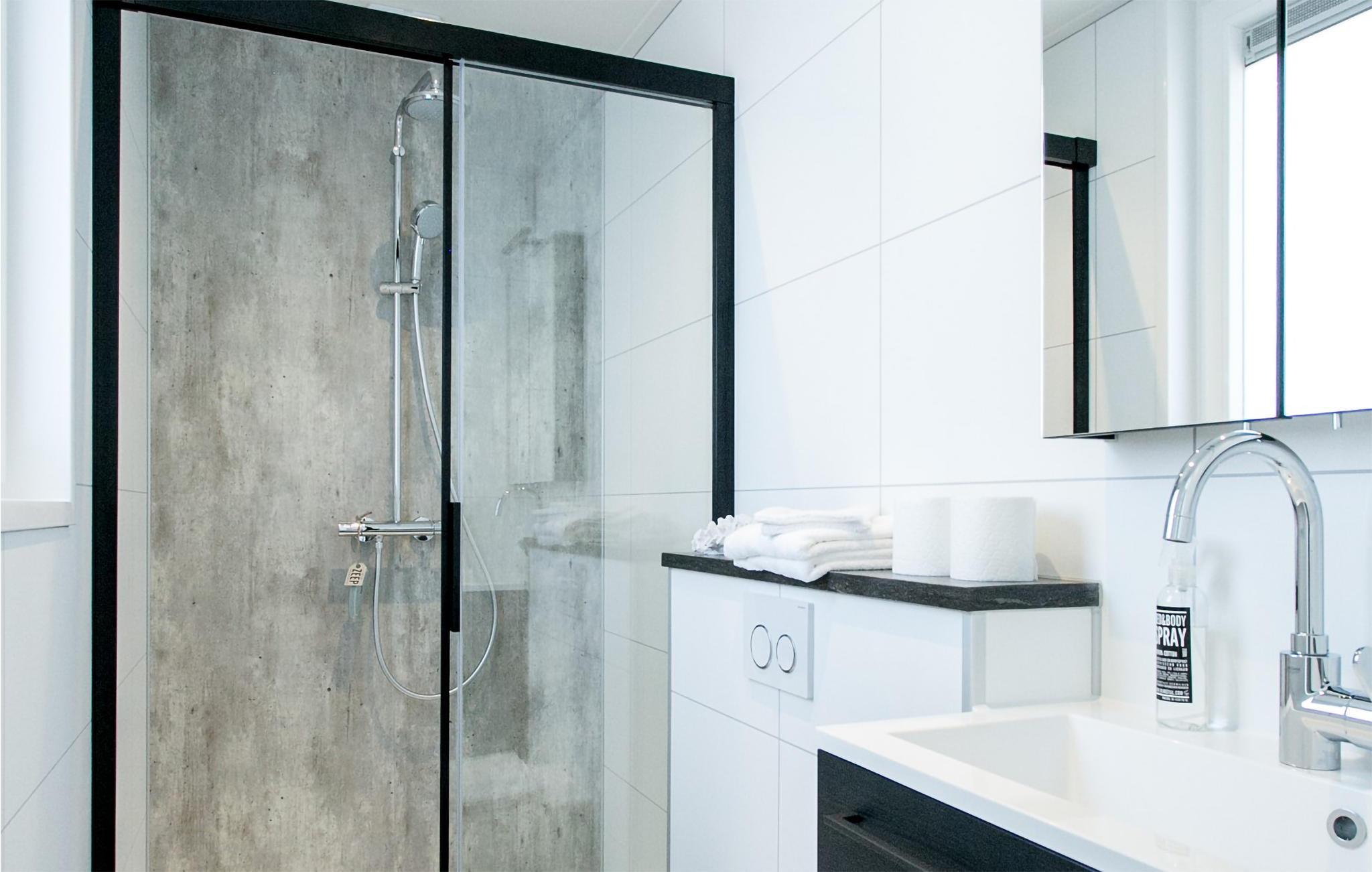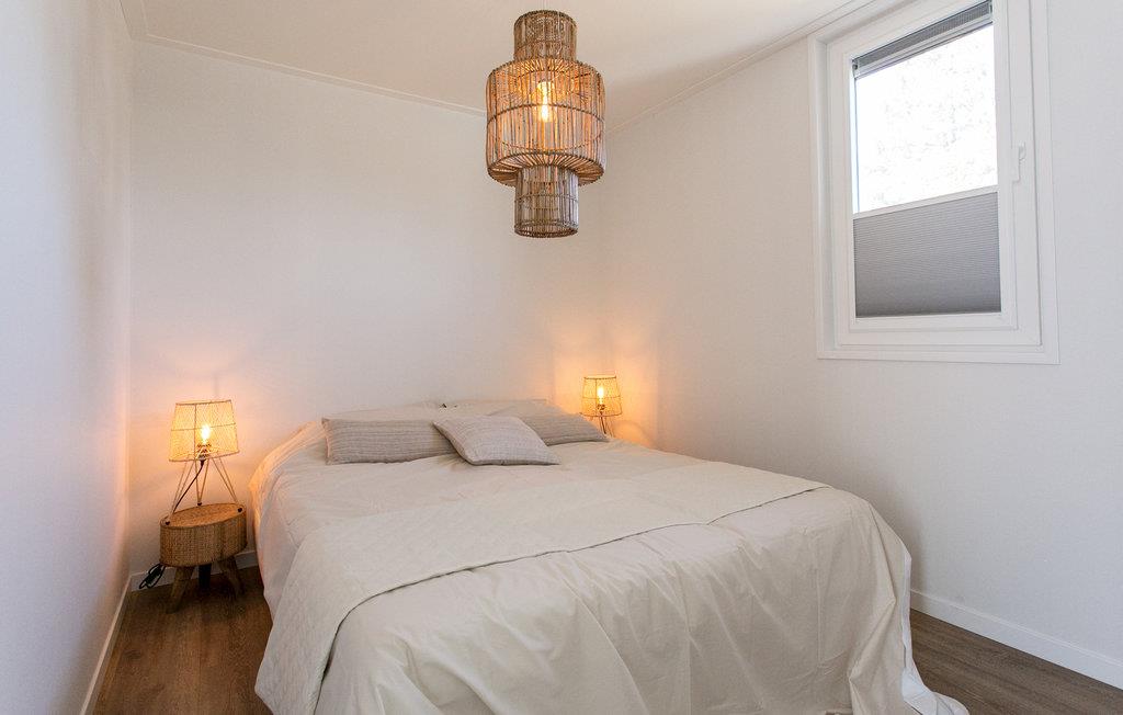 Begynd dagen med morgenmad i udestuen, som har et dejligt lysindfald og en fin udsigt til haven. Køkkenet er meget veludstyret og har opvaskemaskine og kombiovn. I forbindelse med køkkenet er der en hyggelig stue med sovesofa og smart-tv. I kan desuden se frem til to soveværelser og et luksusbadeværelse med regnbruser, toilet og håndvask.