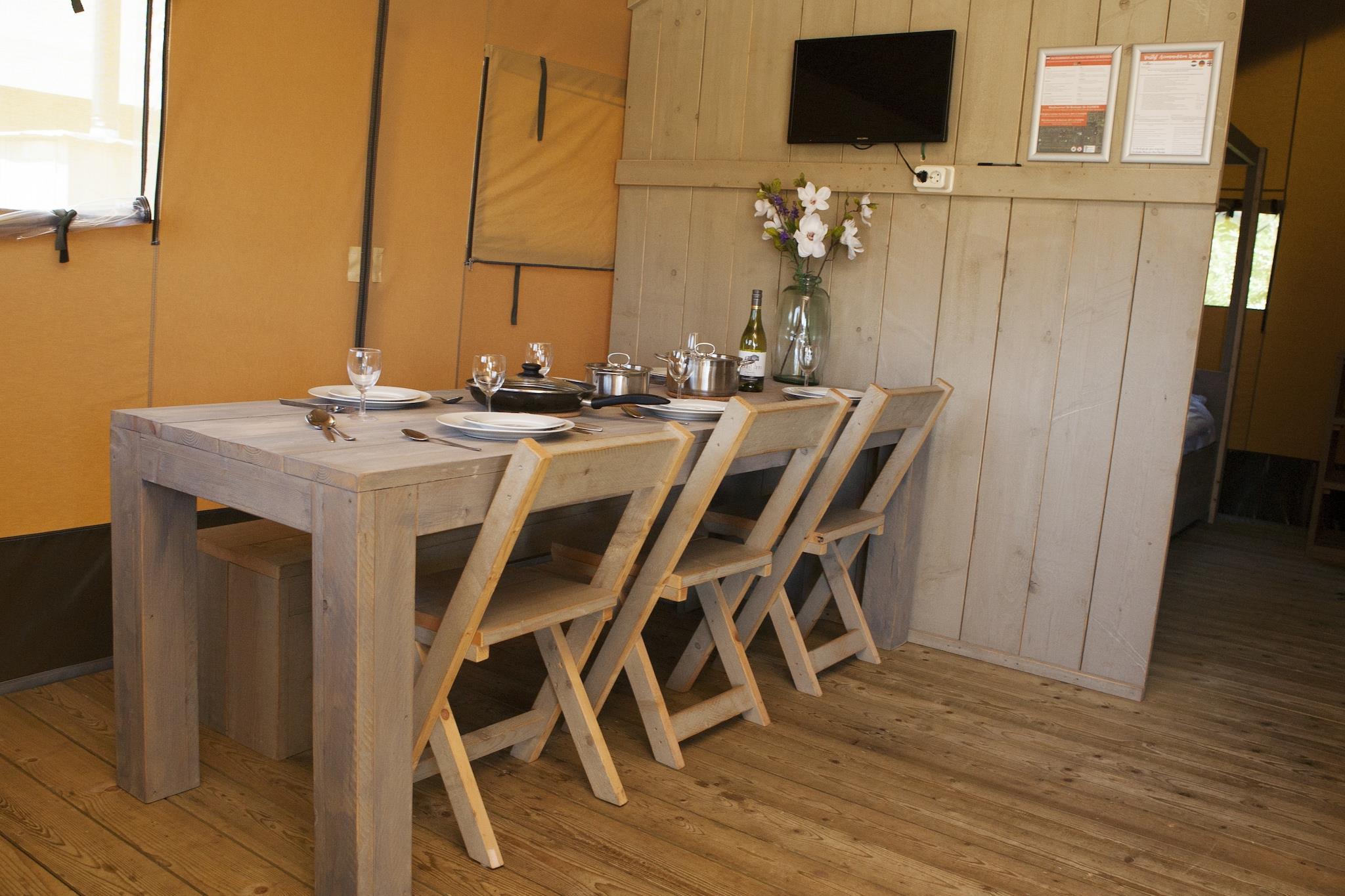 Velkommen til en enestående glampingflugt i Voorthuizen, hvor eventyr og komfort eksisterer side om side. Dette rummelige safaritelt til 8 personer blander rustik charme med avancerede bekvemmeligheder og byder på hyggelige boksmadrassenge, et fuldt udstyret køkken med opvaskemaskine og et privat badeværelse – ingen fælles faciliteter her. Slap af i opholdsstuen med komfur og tv, eller gå udenfor til din overdækkede veranda med havemøbler, en hængekøje og et loungesæt. Det er det perfekte sted til morgenkaffe eller en stjerneklar middag under Veluwe-himlen. Kæledyr er hjerteligt velkomne, og dette område er et paradis for firbenede opdagelsesrejsende. Blot få minutter væk byder Losloopgebied Zeumeren på store åbne marker, hvor hunde kan løbe frit. Nyd naturskønne vandreture sammen gennem De Veluwe, en af Hollands mest kæledyrsvenlige nationalparker. Om sommeren må du ikke gå glip af lokale begivenheder som Hondenzwemdag (Dog Swim Day), hvor din hvalp kan plaske rundt med andre hundekammerater. Tilbage i parken kan din lodne ven slappe af ved din side, mens du slapper af i naturen. Beliggende i udkanten af den pulserende by Voorthuizen, er du kun en kort gåtur fra dejlige caféer, butikker og spisesteder. Snup en terrasseplads på det kæledyrsvenlige Brasserie Buitenlust, eller forkæl dig selv med friske lokale retter på Eethuisje De Heuveltjes. Uanset om du rejser med familie, venner eller lodne sidekicks, lover dette luksustelt uforglemmelige minder i unikke udendørs omgivelser.