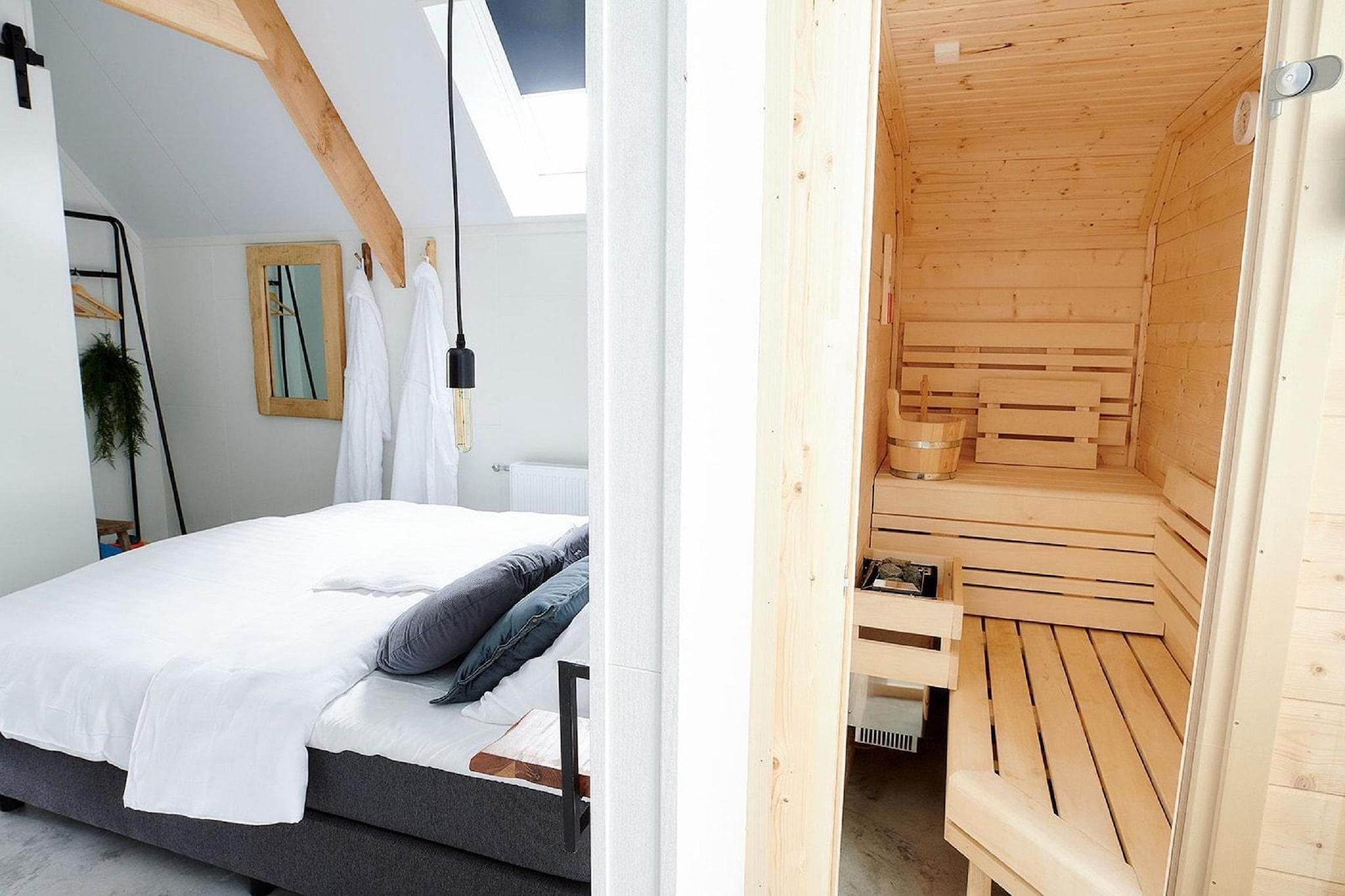 Flygt til denne luksuriøse wellness-lodge med 1 soveværelse i Voorthuizen, designet med komfort, privatliv og afslapning i tankerne. Fra det øjeblik, du ankommer, vil du føle dig forkælet - din seng er redt, bløde håndklæder og plysbadekåber venter, og atmosfæren er sat i chik stil og en hyggelig gaspejs. Slap af med dit yndlings Netflix-show på fladskærms-tv'et, eller nyd et roligt bad i det selvstændige bad. En privat sauna og solbruser tilføjer et strejf af spa-lignende forkælelse, hvilket gør dette til det ultimative parretreat. Træd ind gennem havens døre til din egen fredelige terrasse, hvor et luksuriøst loungesæt og liggestole inviterer dig til at nyde solskinnet. Uanset om du nyder morgenkaffe eller nyder en aftendrink, er udendørsrummet ideelt til at afbryde forbindelsen. Lodgen er en del af den eksklusive feriepark De IJsvogel, der tilbyder adgang til både indendørs og udendørs pools, anlagte haver og vandrestier - perfekt til par, der søger ro. Beliggende i den smukke Guelders-region er Voorthuizen en port til Veluwes naturskønne landskaber. Efter en dag med vandre- eller cykelture gennem skovstier kan du nyde en romantisk middag på lokale favoritter som Bistro Nijkerk eller 't Herdertje. For lidt ekstra forkælelse, bestil en frisk morgenmad leveret lige til døren. Bemærk venligst: kæledyr er ikke tilladt i denne bolig.