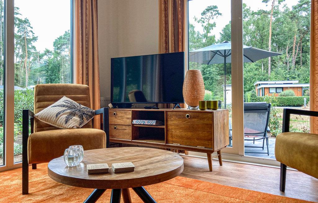 Denne stilfulde hytte er meget velegnet til en hyggelig familieferie, og her flytter I ind midt i et udvalg af sjove fritidsaktiviteter på stedet. Indenfor i hytten finder I smagfuld komfort og et dejligt tilflugtssted til en ubekymret ferie, hvor jeres hunde også er velkomne. Den smukke terrasse er den ideelle ramme for at nyde jeres feriemåltider udendørs eller blot slappe af i solen på liggestolene. Især familiens yngste medlemmer vil have det sjovt på pladsen. En stor legeplads, bordtennis, beachvolleyball og et soppebassin vil få børnenes øjne til at lyse op.