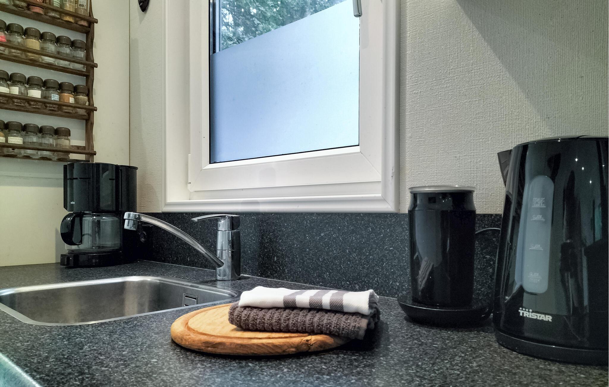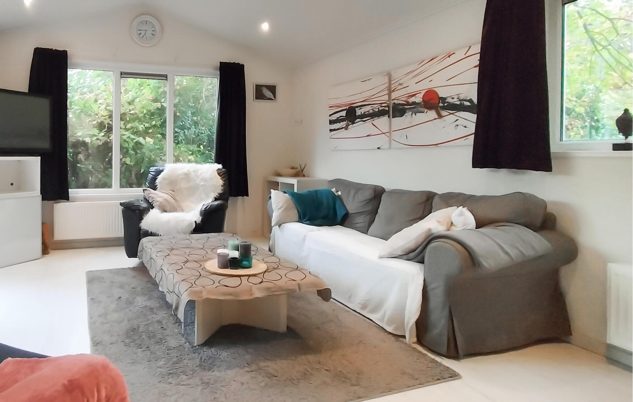 Dette indbydende feriehus ligger i en smukt beliggende feriepark og er indrettet i varme og lyse farver. Udenfor byder feriehuset på en skøn have med terrasse og havemøbler. Stuen med åbent køkken har udgang til terrassen. Feriehuset har soveværelse og badeværelse med bruser, toilet og håndvask. Skuret giver plads til cykler. Da de smukke omgivelser byder på mange vandremuligheder, er dette feriehus det rigtige valg til en ferie med hunde.