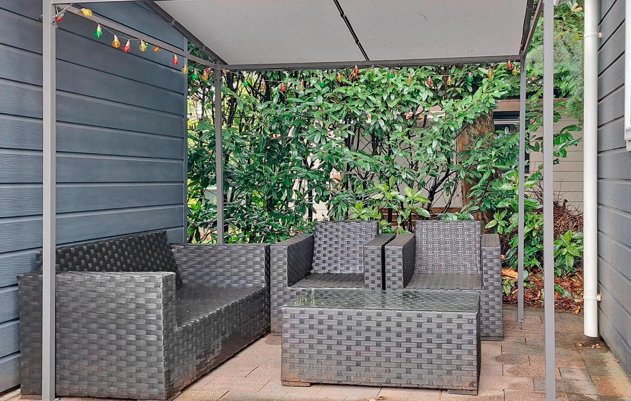 Dette stilfulde feriehus er ideelt til en afslappende familieferie, for her har I en lang række fritidsmuligheder lige uden for døren. Her venter der ikke kun høj komfort, men også en vidunderlig oase til en ubekymret ferie med familien. På den indbydende terrasse kan I slappe af på havemøblerne i det fri.