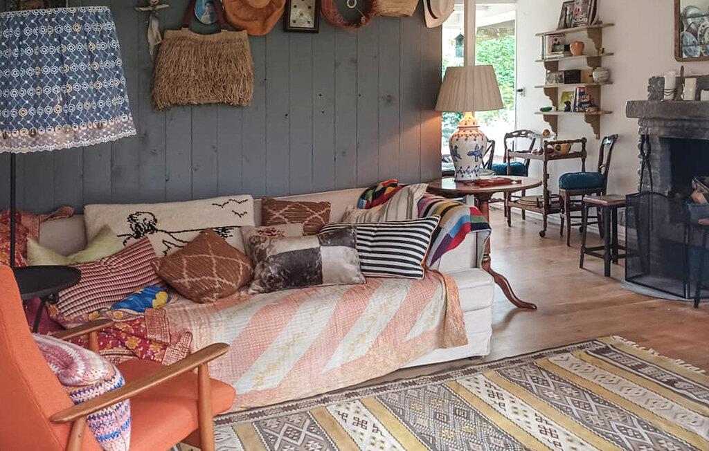 Nyd den hyggelige atmosfære i dette dejlige feriehus med overdækket terrasse og adgang til en privat have. Den kærlige indretning og den åbne pejs skaber en varm stemning, mens de store vinduer lukker masser af lys ind og gør opholdsrummet lyst og indbydende. Slap af på solsengene i haven, eller nyd jeres måltider udendørs. Dette hus er det perfekte udgangspunkt for at nyde jeres ferie fuldt ud.