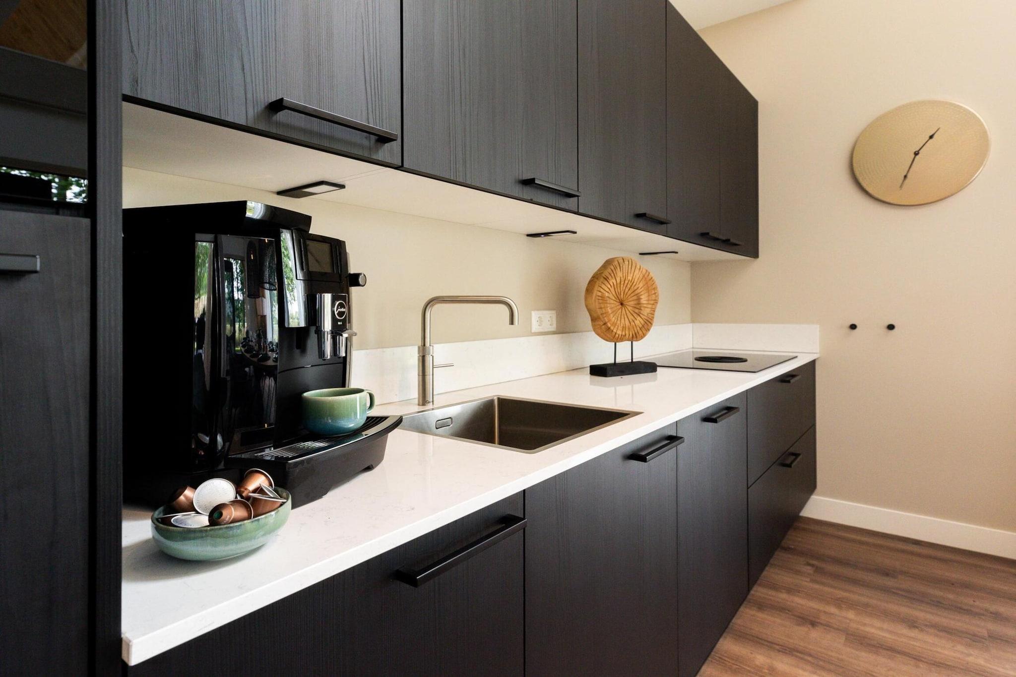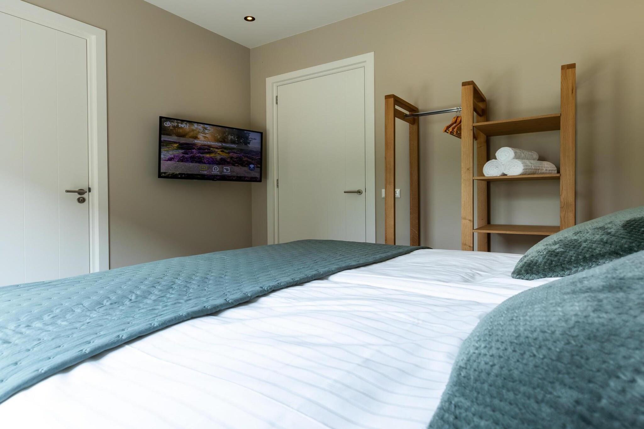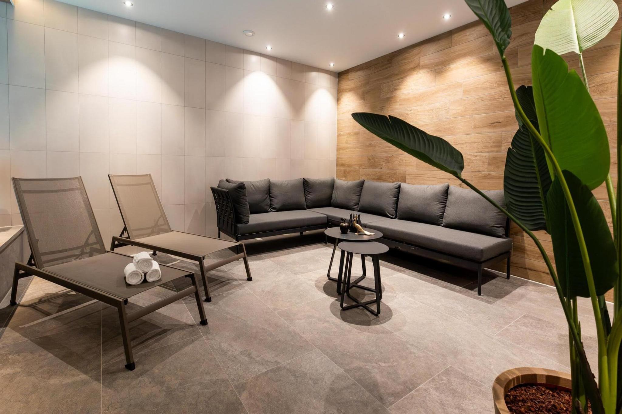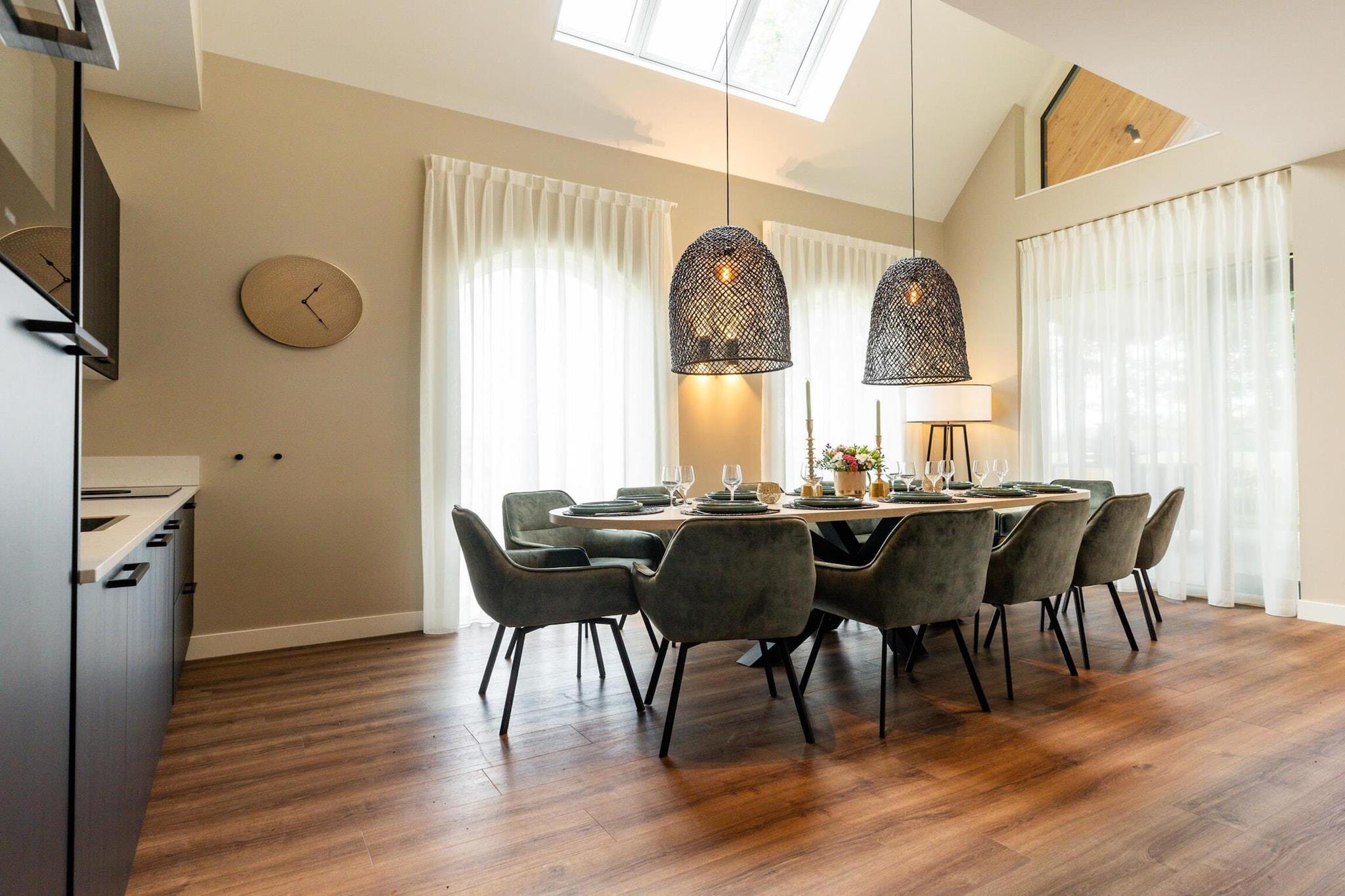 Stueetage: (Stue(sofahjørne), spisestue(spisebord), åbent køkken(komfur, kaffemaskine, ovn, mikrobølgeovn, opvaskemaskine , køle-fryseskab), Soveværelse med badeværelse(dobbeltseng, bruser, håndvask, toilet), Soveværelse med badeværelse(dobbeltseng, bruser, håndvask, toilet)) På 1. etage: (Soveværelse med badeværelse(dobbeltseng, bruser, håndvask, toilet), Soveværelse med badeværelse(dobbeltseng, bruser, håndvask, toilet), Soveværelse med badeværelse(køjeseng eller 2 enkeltsenge, køjeseng eller 2 enkeltsenge, bruser, håndvask, toilet)) Kælderetage: (hottub, bruser, toilet, solstole, private indoor pool)