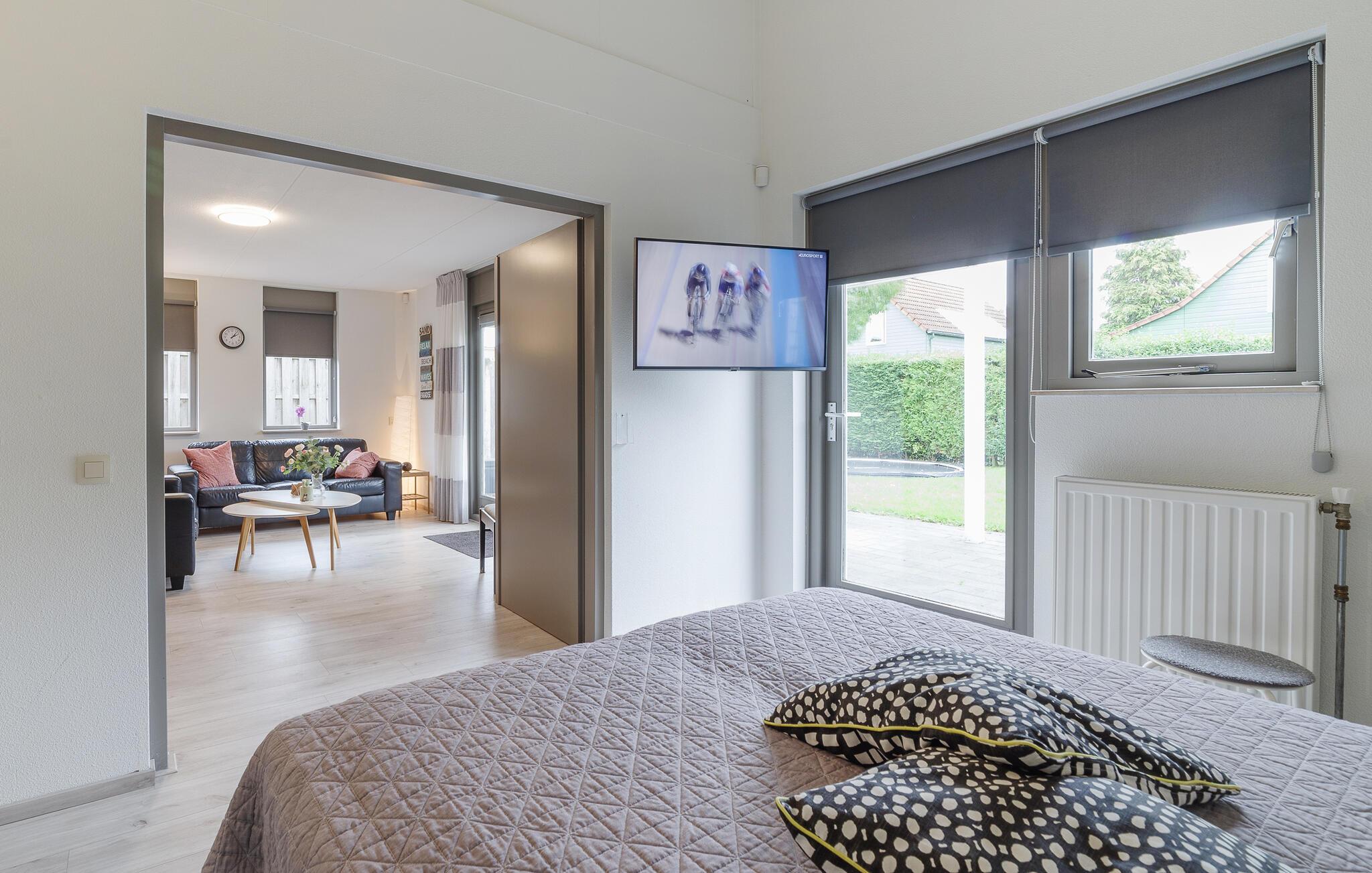 Denne feriepark ligger i Oosterschelde i Wemeldinge ved Oesterbaaibugten. Den lille by Goes ligger blot ti km mod vest fra ferieparken. Her kan I dyrke alle former for vandsport, fx sejle, svømme, fiske og surfe. Selvfølgelig kan I også tage håndklædet med og slappe af i sandet. Med ferieparken som udgangspunkt kan I cykle på diget eller gennem Zeelands frodige frugtplantager. Butikker, cafeer og restauranter findes i landsbyen Wemeldinge, blot 300 m fra parken. Her er der også en marina med mulighed for at pumpe gummibåde og luftmadrasser op. Lejligheden har egen sauna.