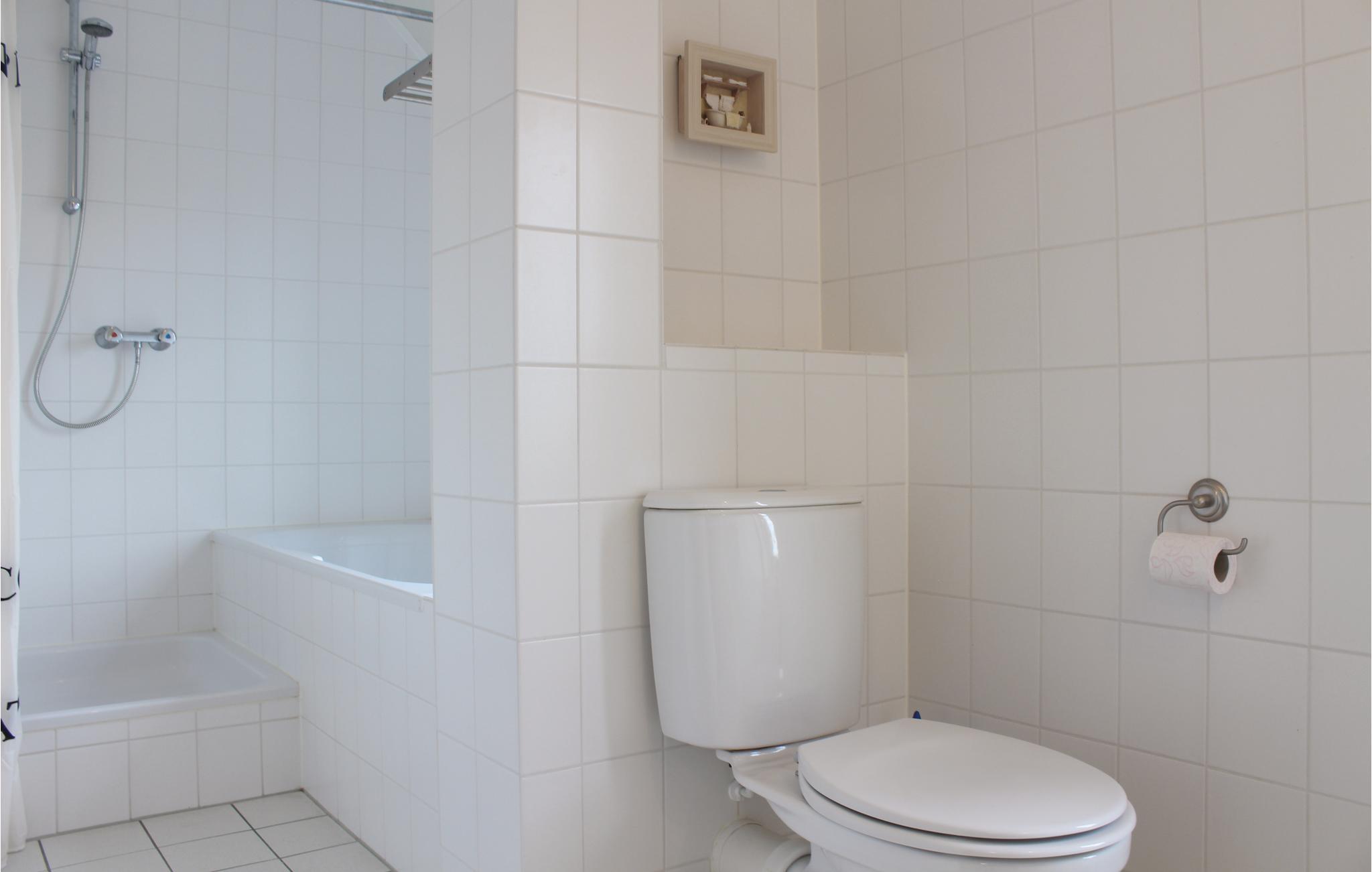 Badeværelse (nr. 1) - WC. Varmt og koldt vand. Håndbruser, badekar og bruser