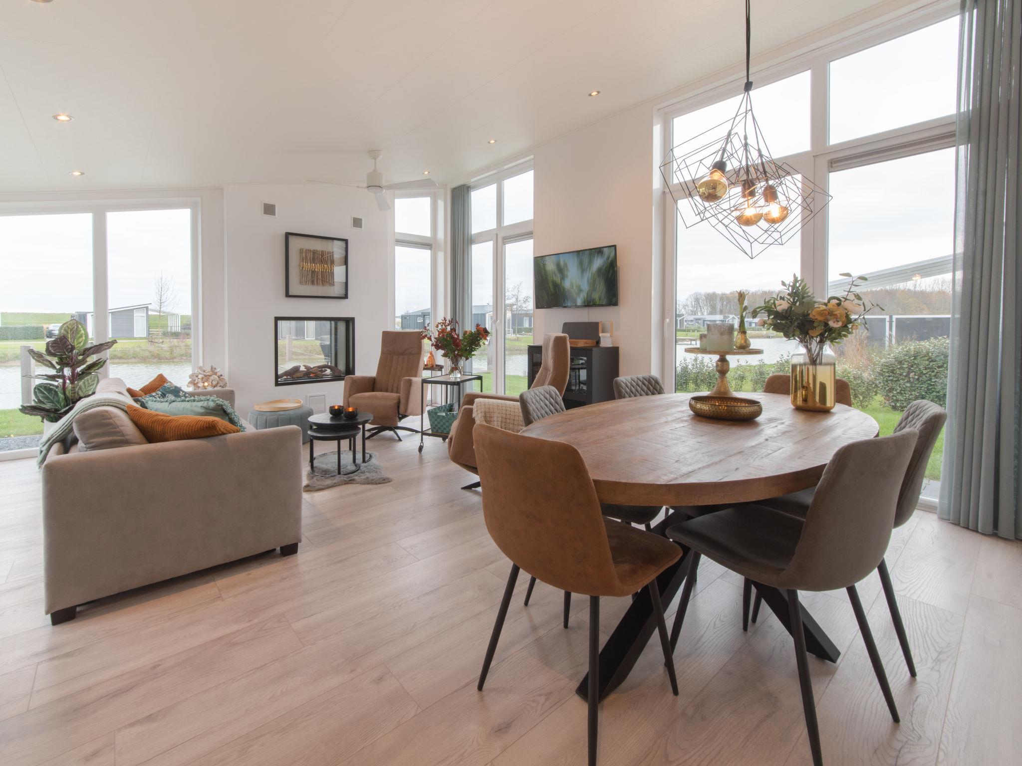 "Ruisweg 34", 3-room house 70 m2. Tasteful and cosy furnishings: entrance hall with separate WC. Living/dining room with dining table, flat screen, CD-player and fan. Exit to the terrace. 2 double bedrooms, each room with 2 beds (80 cm, length 200 cm). Open kitchen (oven, dishwasher, 4 induction hot plates, toaster, kettle, microwave, freezer, electric coffee machine). Shower. Heating. 2 terraces. Terrace furniture, barbecue, deck chairs (2), box-room. View of the lake. Facilities: washing machine, dryer, hair dryer. Internet (WiFi, free). Parking (2 cars) at the house. Please note: non-smoking house. Smoke alarm. The gas fireplace can be used during the colder months. The barbecue runs on coal (not included). Bookings accepted for holiday purposes only. A deposit of 100 EUR per person can be charged on site.