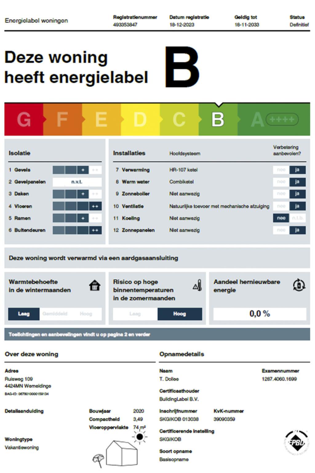"Ruisweg 109", 3-room bungalow 70 m2. Comfortable and modern furnishings: entrance hall with separate WC and shower. Living/dining room with dining table and flat screen. Exit to the terrace. 1 room with 2 beds (80 cm, length 200 cm). 1 room with 2 beds (80 cm, length 200 cm). Open kitchen (oven, dishwasher, 4 induction hot plates, toaster, kettle, microwave, freezer, electric coffee machine). Exit to the terrace. Heating. Terrace, large garden. Terrace furniture, deck chairs (2), sitting area. View of the forest. Facilities: Internet (WiFi, free). Parking (2 cars) at the house. Please note: suitable for families. Non-smoking house. Smoke alarm. The gas fireplace can be used during the colder months. One room in the house is closed off for private use. Bookings accepted for holiday purposes only.