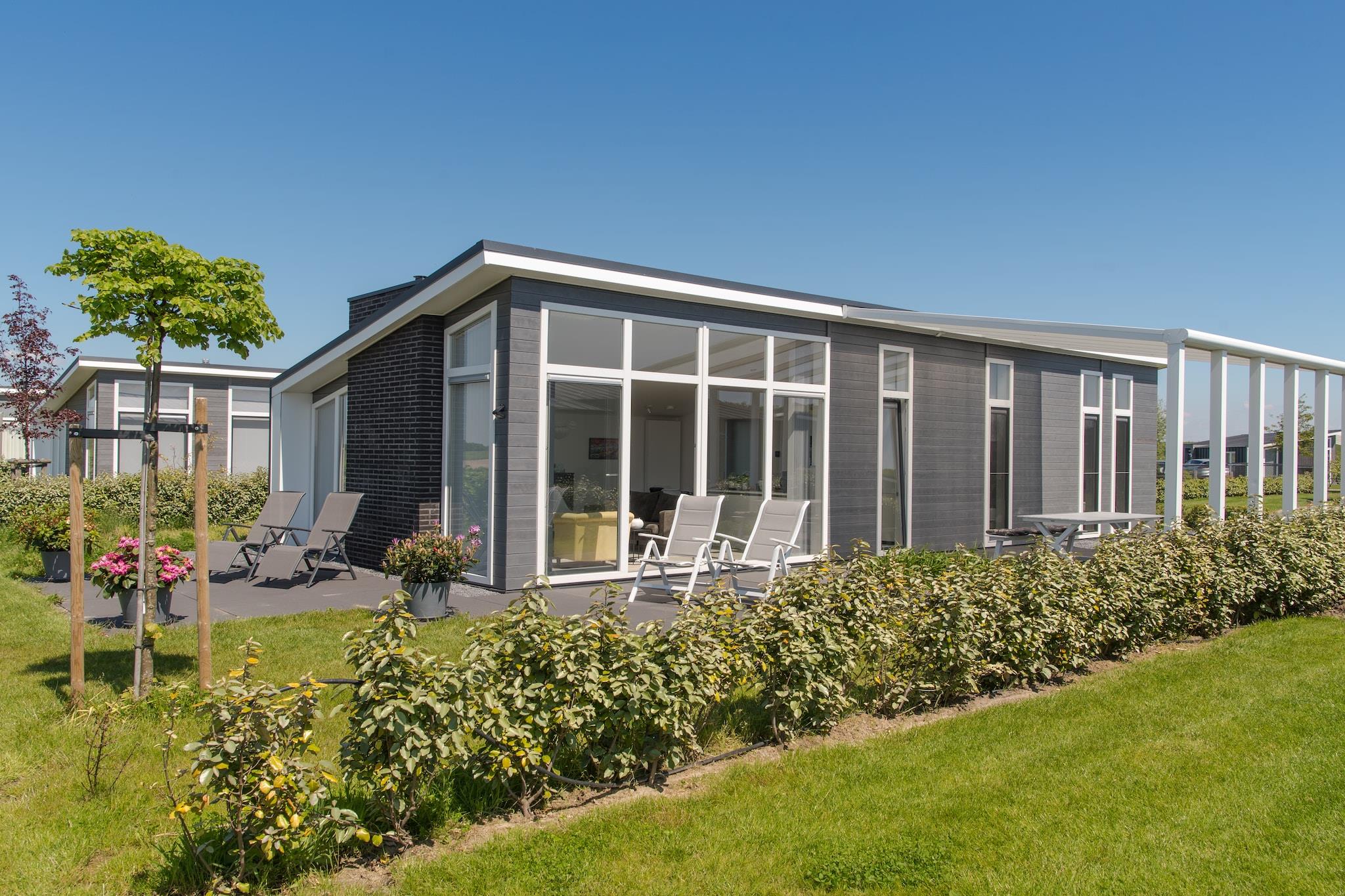 Gemt i udkanten af en fredelig feriepark i Zeeland tilbyder dette fritliggende hus den perfekte blanding af moderne stil og hyggelig charme. De rene arkitektoniske linjer, varme møbler og en dekorativ pejs skaber et indbydende rum til at slappe af. Store vinduer bringer masser af naturligt lys ind og tilbyder uforstyrret udsigt over de omkringliggende majsmarker - hvilket tilføjer et beroligende, landligt præg til dit ophold. Træd udenfor på din delvist overdækkede terrasse, komplet med havemøbler og liggestole - ideel til morgenkaffe eller solnedgangsvin. Uanset om du læser en bog i haven eller nyder en alfresco-middag, giver den udendørs opsætning dig virkelig mulighed for at komme i kontakt med det rolige Zeeland-landskab. Med et fuldt udstyret køkken, to komfortable soveværelser med dobbeltsenge og et moderne badeværelse, lover dit ophold både lethed og elegance. Beliggende i naturskønne Wemeldinge, er du kun få minutter fra digerne i Oosterschelde, perfekt til cykling eller gåture langs kystlinjen. Besøg den charmerende lokale havn, kig forbi til friske kager på et nærliggende bageri, eller nyd en fiske- og skaldyrsmiddag på en af regionens populære restauranter ved vandet. Uanset om du søger en romantisk flugt eller fredelig genopladning, tilbyder dette Zeeland-retræte komfort, stil og en ægte smag af hollandsk kystliv.