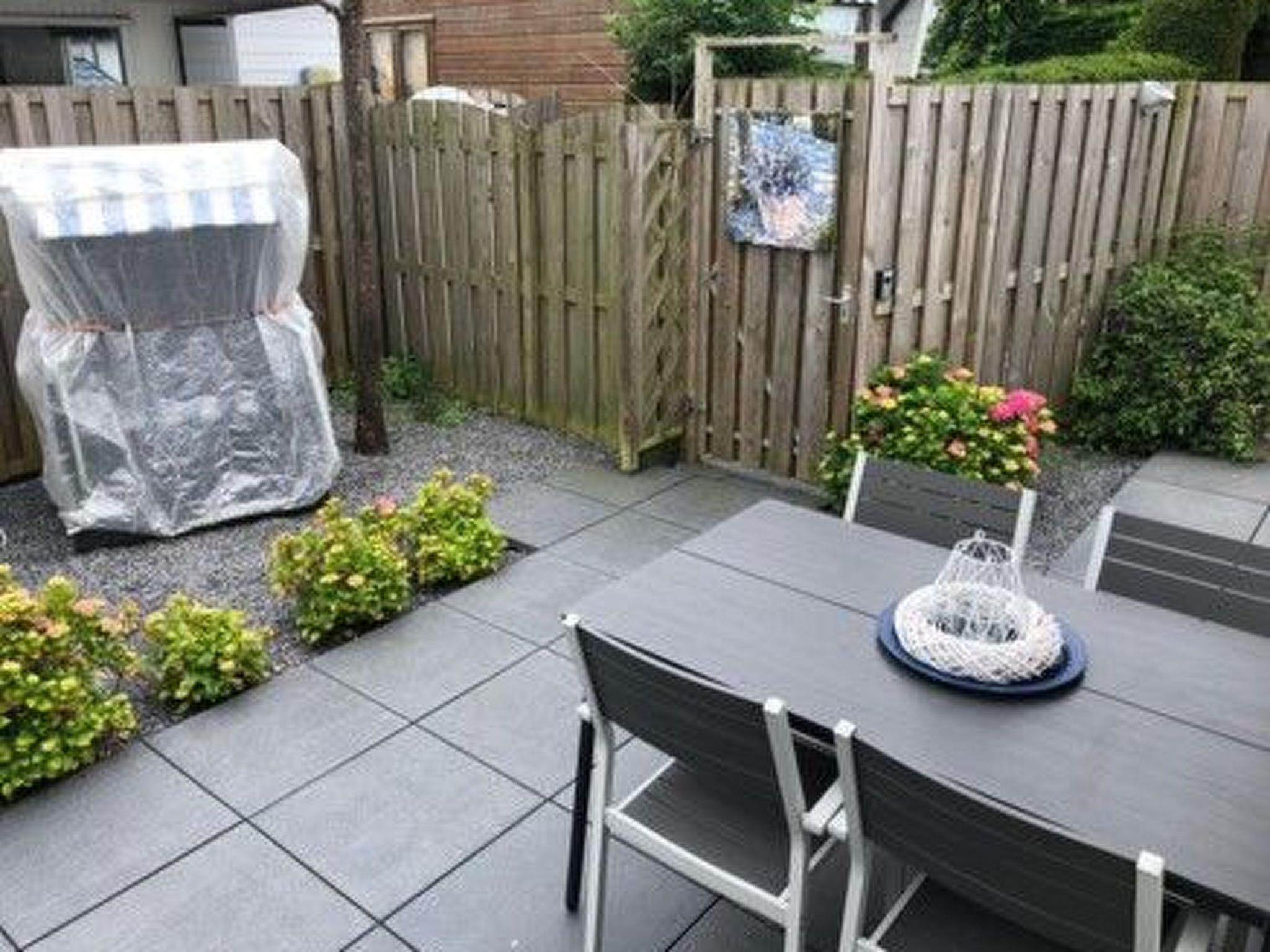 On the garden side there is another terrace with a dining area (table and 4 chairs), parasol, beach chair and 2 sun loungers for sunbathing. The direct water access is ideal for stand up paddling (SUP), kayaking or boating. A charcoal barbecue is also available.