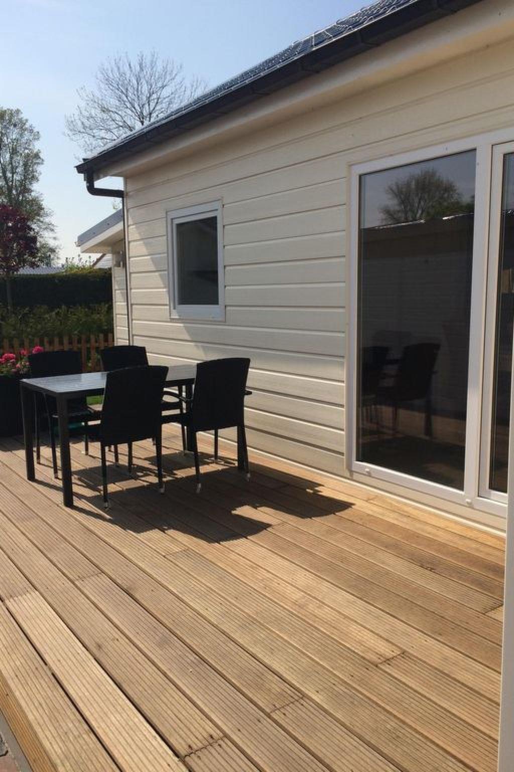 Recently built, light-flooded, pretty holiday home on a small, fine estate in Noordholland. It is situated on an island of approx. 2 hectares in a large lake, accessible via a bridge. The house is modernly furnished and offers everything you need for a great holiday! The light-flooded dining/living area offers space for the whole family. The flat screen TV receives many German programmes. The kitchen is fully equipped: Cooker, oven, fridge with freezer compartment, kettle, coffee machine, toaster, crockery and cooking utensils. The bathroom has a shower. Bedroom 1 is furnished with a French double bed and a sliding-door wardrobe. Bedroom 2 has two bunk beds, a wardrobe and a shelf with additional storage space. The sliding door leads to the sunny terrace, which invites you to relax with its cosy wicker furniture. The entire house has central heating.