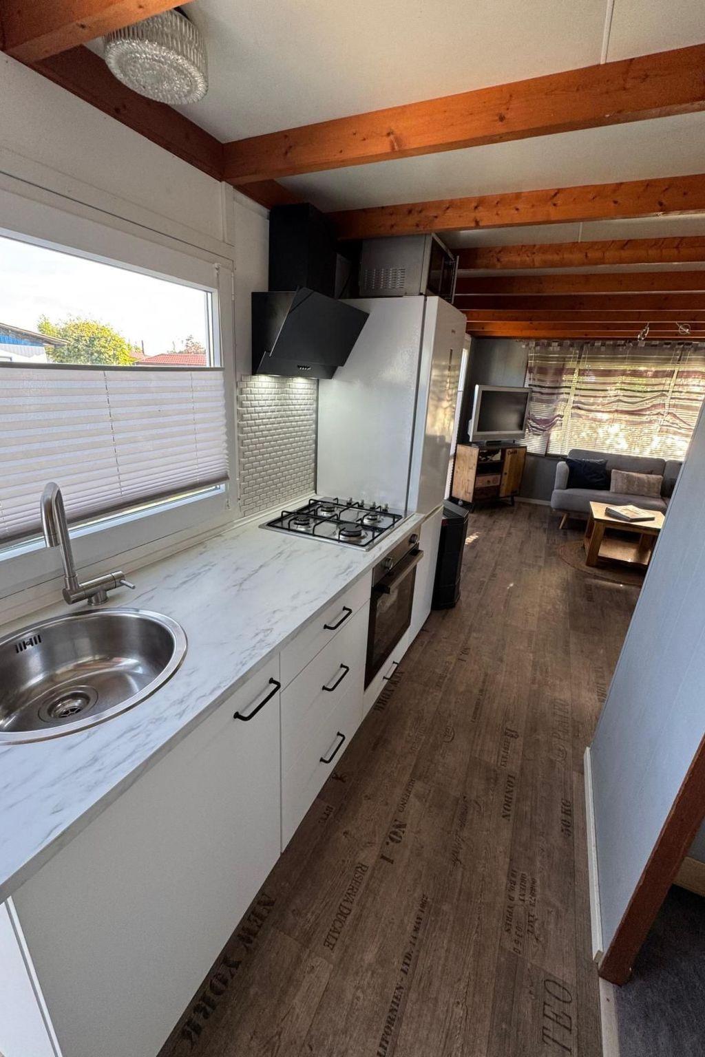 Small, fine holiday home park surrounded by water (only 70 buildings in total).