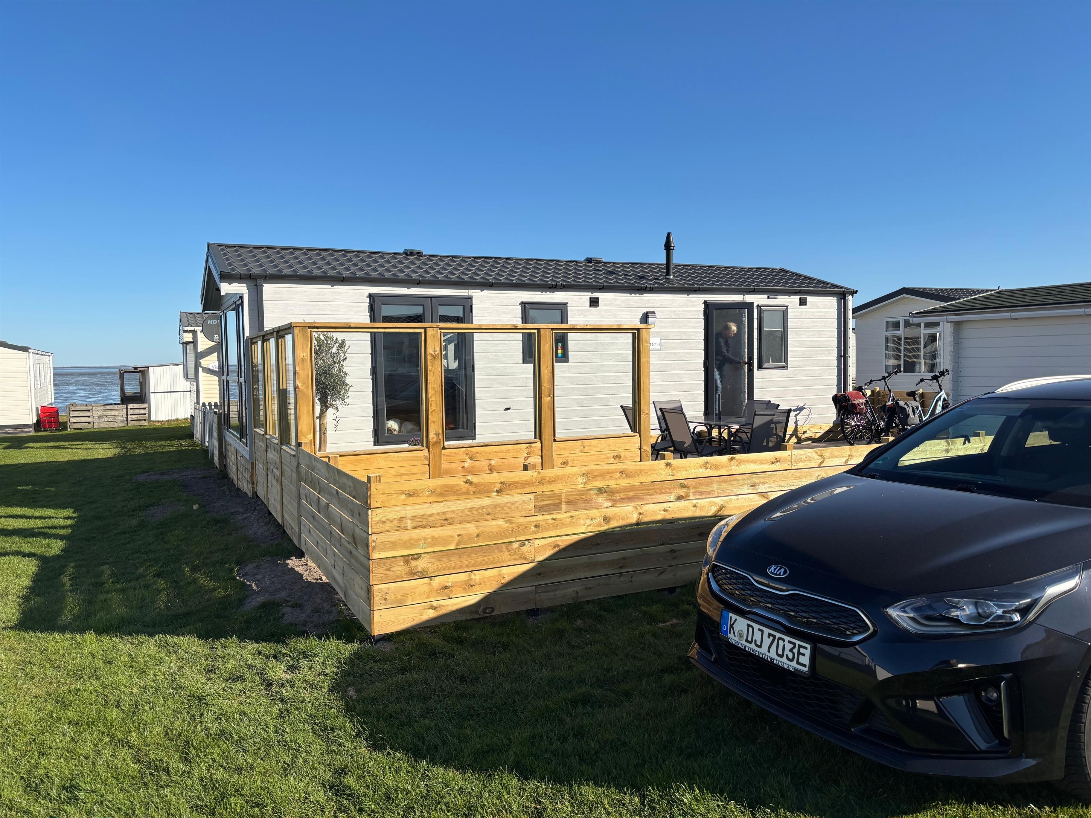 Der Campingplatz liegt direkt am Wattenmeer. Hier stehen 100 Ferienhäuser.