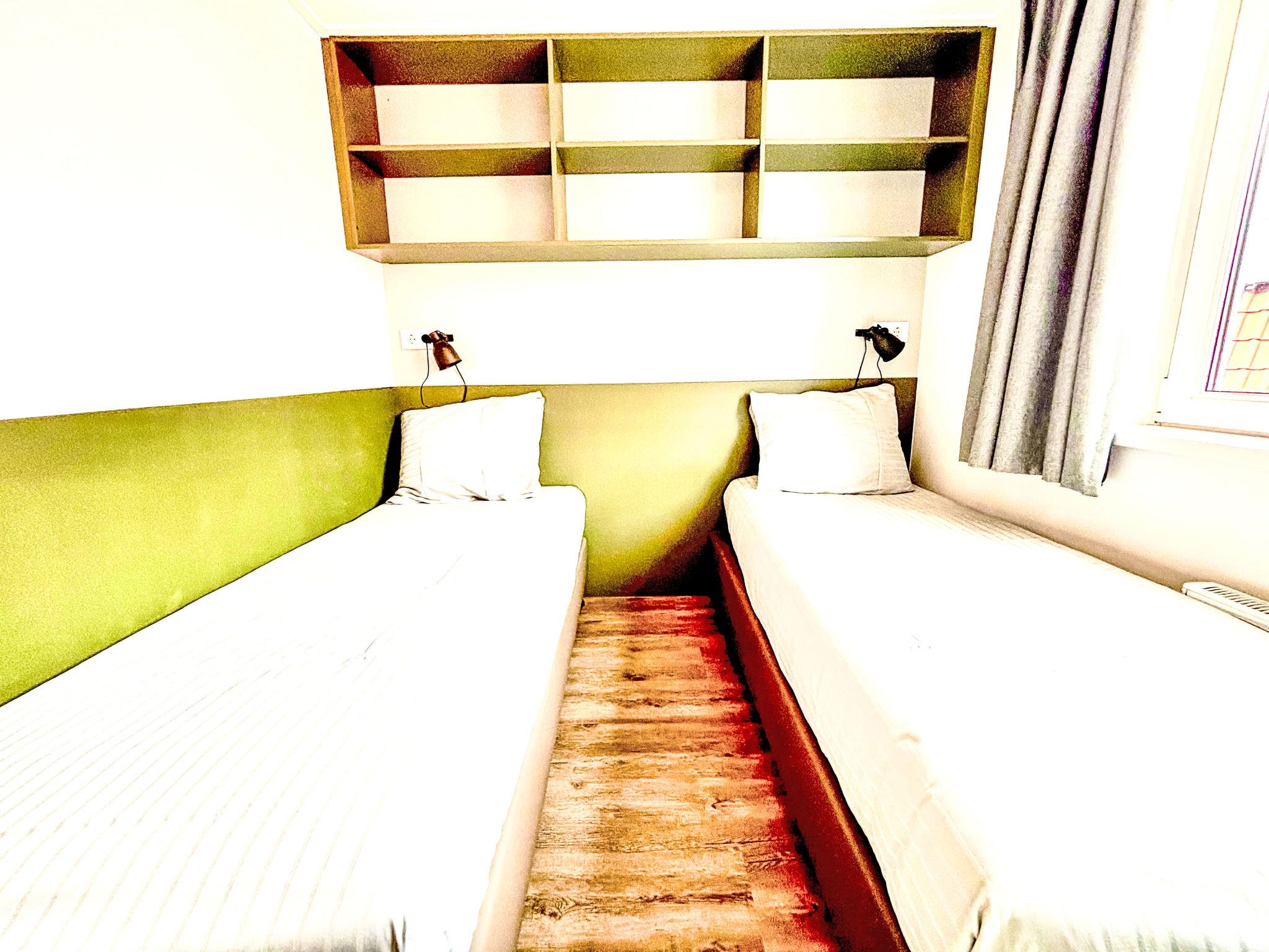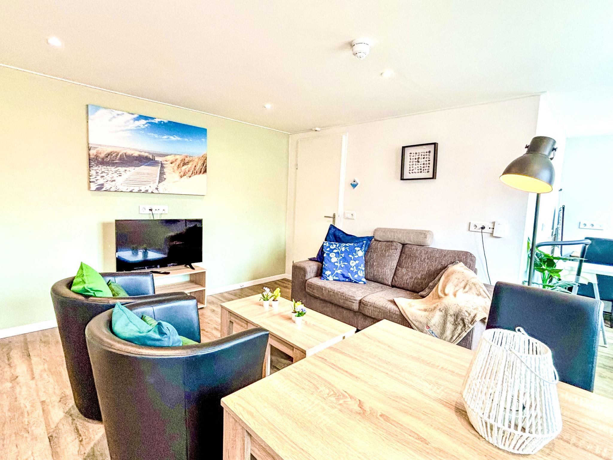 "Beach House Westkapelle 105.4", 4-room apartment on 1st floor. Comfortable furnishings: entrance hall. Exit to the terrace. Living/dining room with dining table and TV. 2 rooms, each room with 2 beds (80 cm, length 200 cm). 1 room with 1 bed. Kitchen (dishwasher, 4 induction hot plates, kettle, freezer, electric coffee machine, combination microwave). 2 showers, 2 sep. WC's. Heating. Terrace. Terrace furniture. Facilities: children's high chair, baby cot. Internet (WiFi, free). Parking at the house. Please note: non-smokers only. Smoke alarm. A deposit of 100 EUR per person can be charged on site.