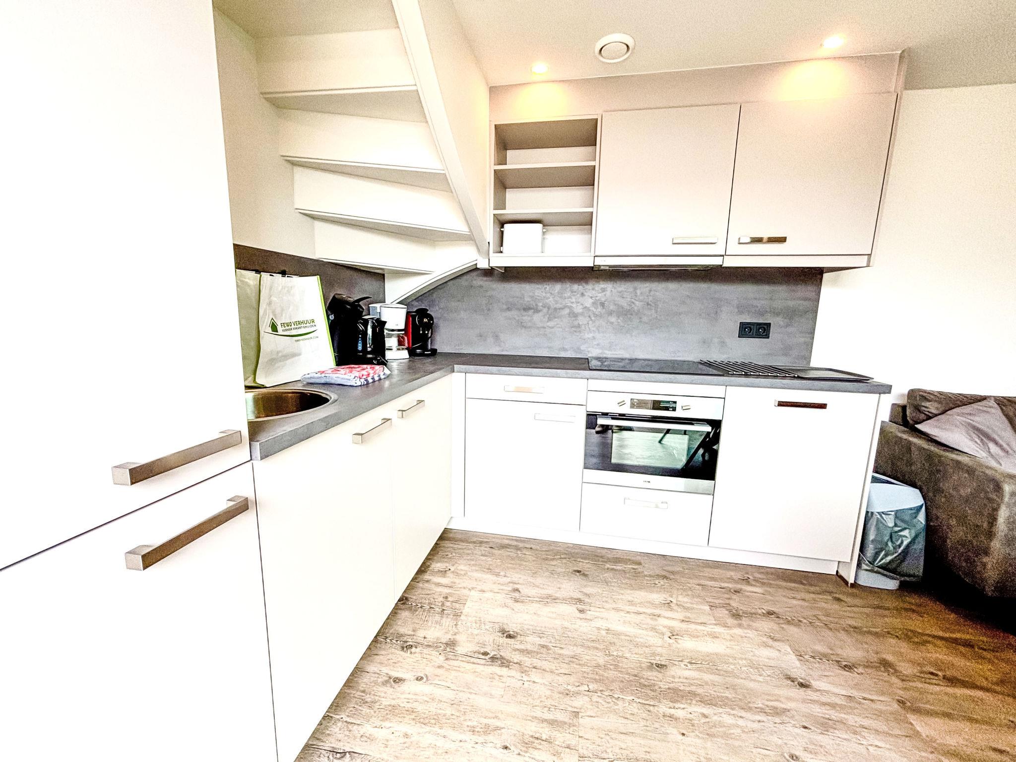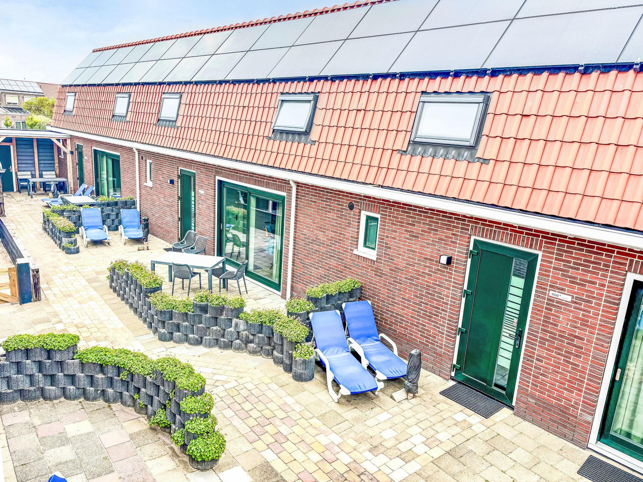 "Beach House Westkapelle 103B", 3-room terraced house. Spacious, fully renovated in 2024, comfortable and beautiful furnishings: living/dining room with TV and air conditioning. Exit to the terrace. Open kitchen (oven, dishwasher, 4 induction hot plates, toaster, kettle, microwave, freezer, electric coffee machine). Shower/WC (private), Sauna. Gas heating. Upper floor: 2 double bedrooms, each room with 2 beds (80 cm, length 200 cm), air conditioning. Terrace furniture, deck chairs. Facilities: children's high chair, baby cot, hair dryer. Internet (WiFi, free). Parking (1 car) at the house. E-charging station. A deposit of 100 EUR per person can be charged on site.