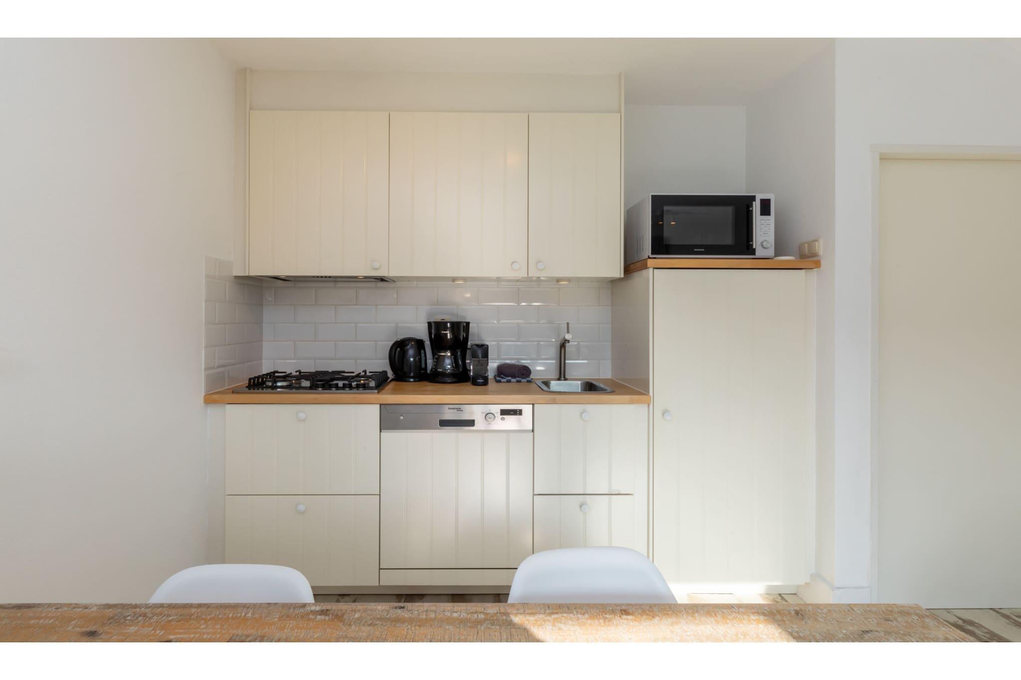 Kun et minut fra Westkapelles sandstrand byder dette hyggelige feriehus dig velkommen med solfyldte rum, moderne bekvemmeligheder og en privat sydvendt terrasse. Stuen i åbent plan har store vinduer, komfortable siddepladser og et smart layout, der flyder ind i et fuldt udstyret køkken - ideel til afslappede morgener eller fælles måltider ved spisebordet til fire personer. Terrassen, med justerbare stole, inviterer dig til at nyde den Zeelandske sol efter en stranddag eller nyde udendørs spisning med din yndlingsflaske vin. Tag dine firbenede venner med - dette hjem byder med glæde velkommen til to kæledyr! Den nærliggende Westkapelle-strand er perfekt til hundeture tidligt om morgenen og gåture i solnedgangen. For ekstra eventyr, udforsk de naturskønne klitter i De Kreek naturreservat eller stierne omkring Zoutelande - både kæledyrsvenlige og billedskønne. Sikre dine cykler lige ved huset, og begiv dig ud til lokale caféer og terrasser, hvoraf mange byder på vandskåle og lækkerier til lodne gæster. Beliggende nær centrum af Westkapelle, finder du et supermarked, bageri, slagter og dejlige restauranter lige rundt om hjørnet. Prøv de friske fisk og skaldyr på De Fontein eller nyd et hyggeligt måltid på en hundevenlig terrasse i nærheden. Med et badekar og separat bruser, to lyse soveværelser med mørklægningsgardiner, babyudstyr og en privat parkeringsplads er dette hjem et topvalg for familier og kæledyrsejere, der søger komfort, bekvemmelighed og kystcharme.
