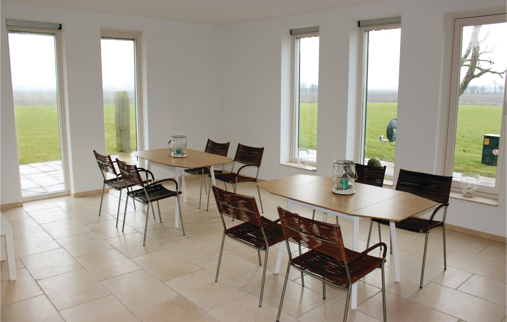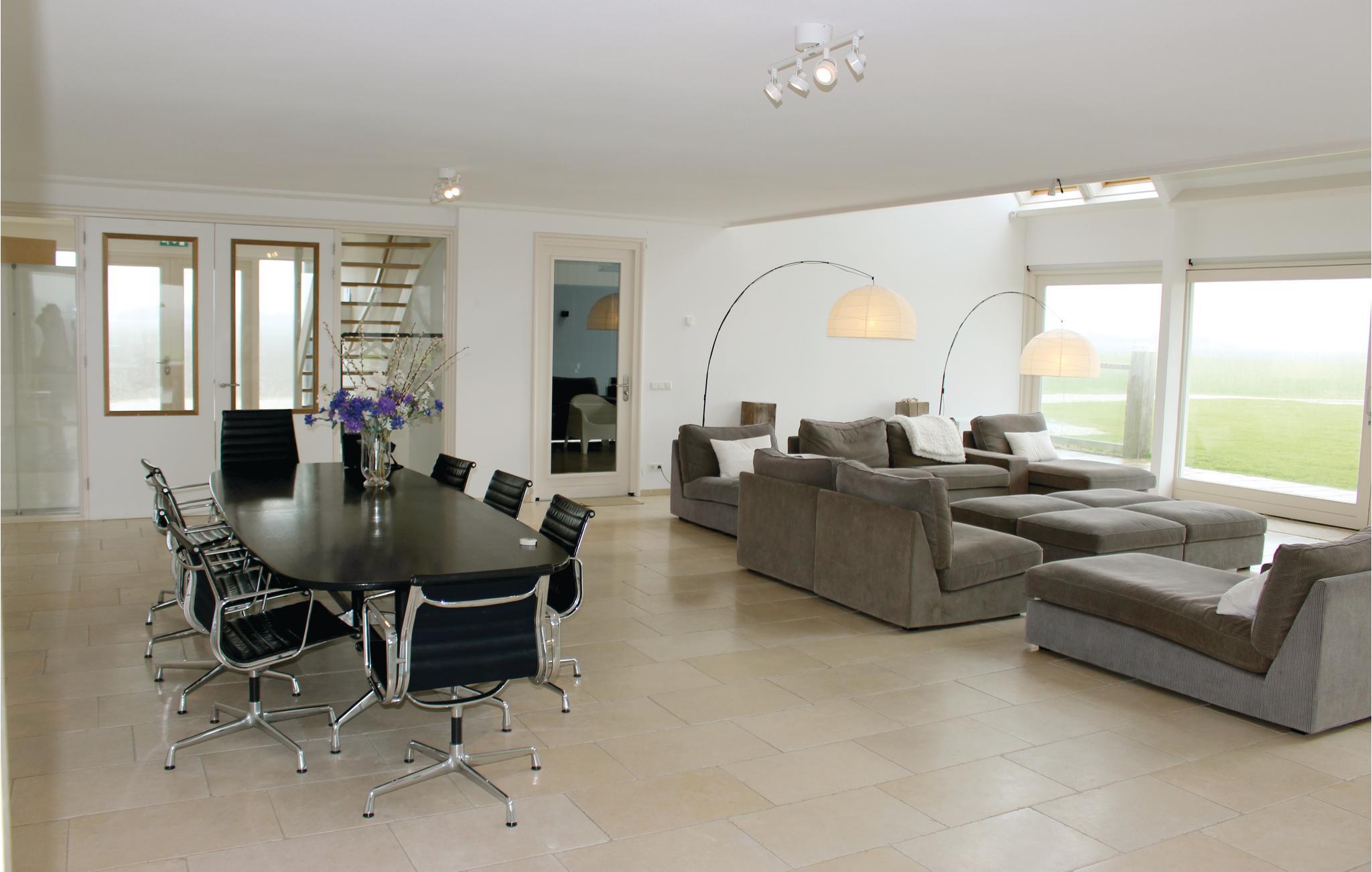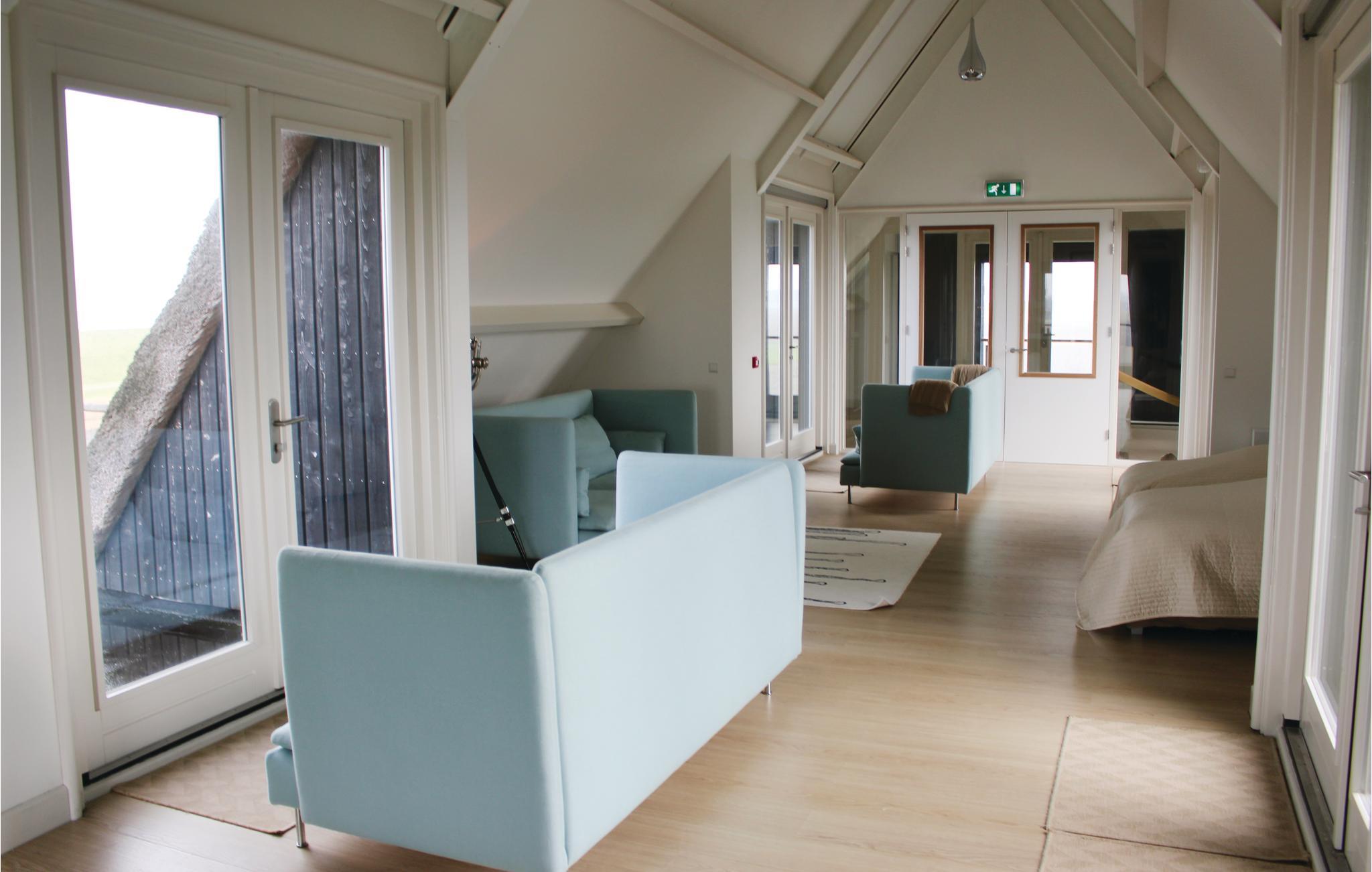 Lige ud til Vadehavet ligger dette moderne feriehus til 22 personer i usædvanligt smukke omgivelser. Her bor I midt i naturen og langt fra naboer - helt ideelt til en rolig ferie, til mindre konferencer, firmasammenkomster eller som øvelokale til bands. Huset er i tre etager, i stueetagen findes stuen, køkkenet og et soveværelse (3 personer) med eget badeværelse (spabad og to brusere). På første og anden etage har I udsigt over Vadehavsøen Ameland og Schiermonnikoog. På første etage findes fem soveværelser med eget badeværelse. I et af badeværelserne er der et spabad. På anden etage findes et gennemgangsværelse med to dobbeltsenge (sengene kan skilles til enkeltsenge). På tredje etage findes endnu et gennemgangsværelse med to enkeltsenge. På den 8000 m² store grund kan I være aktive udendørs. Feriehuset garanterer ikke kun en skøn ferie med familien, det kan også sagtens være firmamæssigt. S 9 og S 10 ligger i en niche og er adskilt med en rumdeler.