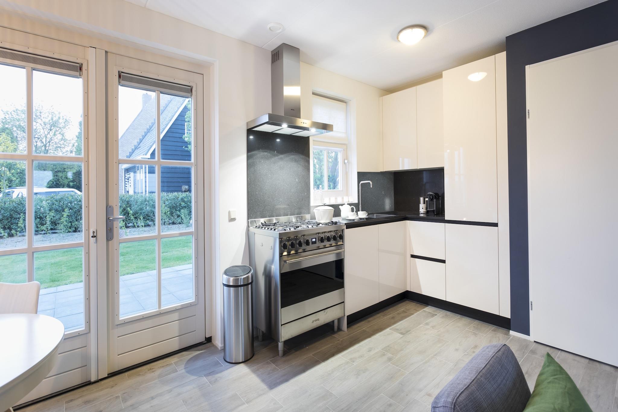 Stueetage: (Stue(Fjernsyn(fladskærm, digital, Hollandske TV-kanaler, Tyske TV-kanaler, Internationale TV-kanaler), sofahjørne(6 personer), gaspejs), åbent køkken(spisebord(6 personer), kogeplade(gas), elkedel, emhætte, kaffemaskine(kopper), ovn, opvaskemaskine , køle-fryseskab), Soveværelse med badeværelse(dobbeltseng(boxmadras, 160 x 200 cm), bruser(Walk-in-bruser), håndvask), toilet, bryggers(tørretumbler, vaskemaskine)) På 1. etage: (soveværelse(enkeltseng(boxmadras, 80 x 200 cm), enkeltseng(boxmadras, 80 x 200 cm)), soveværelse(enkeltseng(boxmadras, 80 x 200 cm), enkeltseng(boxmadras, 80 x 200 cm)), badeværelse(bruser(Walk-in-bruser), håndvask), toilet) havedøre, terrasse(overdækket), have(privat, oplyst), cykelopbevaring, havemøbler, parkering, trampolin, Haveskur