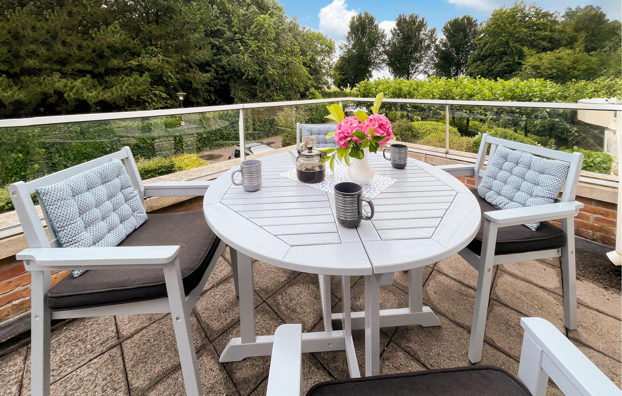 Terrassen lægger op til vidunderlige soltimer udendørs med et vidunderligt vandpanorama. Begynd dagene her med en god kop kaffe. Sæt jer senere til rette samme sted med et glas vin og giv jer tid til de gode snakke.