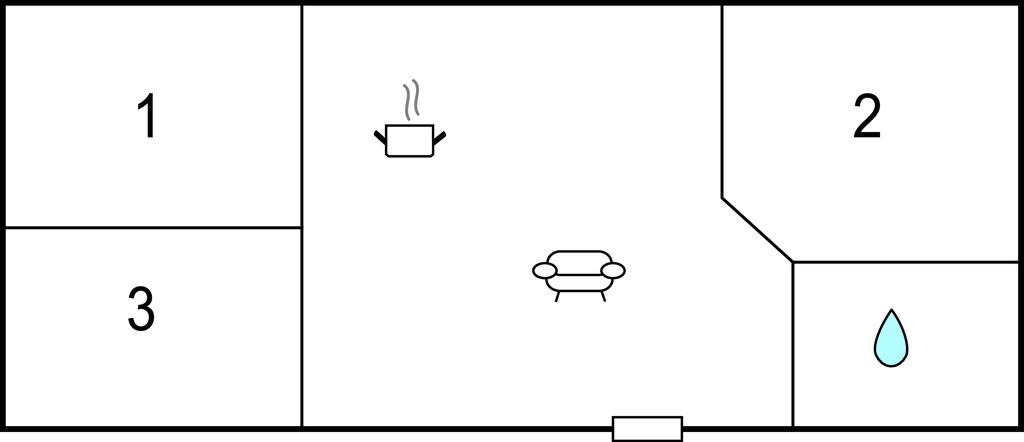 Badeværelse (nr. 1) - WC. Varmt og koldt vand. Bruser