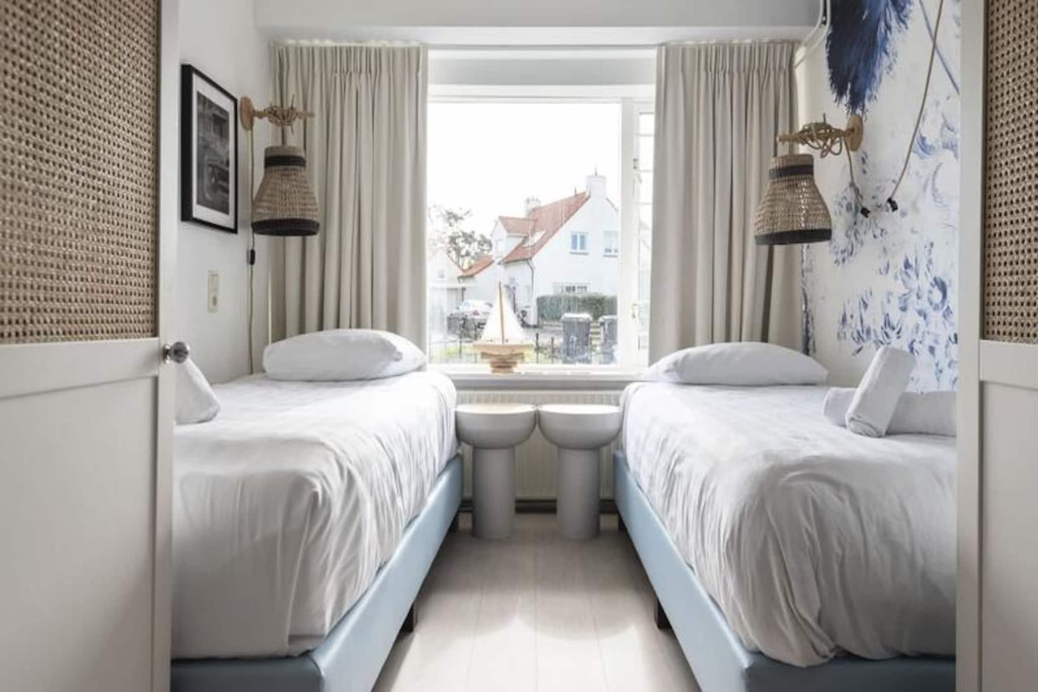 Omfavn charmen ved kystlivet i denne moderne lejlighed i stueetagen, kun få skridt fra Zandvoorts sandstrande. Med sit elegante design og åbne planløsning inviterer denne ejendom dig til at slappe af i et rum, hvor naturligt lys strømmer ind gennem store vinduer og skaber en lys og luftig atmosfære. Den private terrasse, der er tilgængelig via skydedøre, er det perfekte sted at nyde din morgenkaffe eller slappe af med den beroligende lyd af havbrisen om aftenen. Indenfor har lejligheden to veludstyrede soveværelser, der sikrer afslappende nætter for alle gæster. Soveværelset kan prale af en stor dobbeltseng med bløde topmadrasser, mens det andet soveværelse tilbyder to komfortable enkeltsenge. Et stilfuldt, fuldt udstyret køkken åbner ud til den rummelige stue, hvilket gør den til et ideelt sted for både underholdning og rolige aftener. Det moderne badeværelse, komplet med bruseniche, kombinerer praktisk anvendelighed med et strejf af luksus. Beliggende i hjertet af Zandvoort er denne lejlighed perfekt placeret til både afslapning og eventyr. Stranden ligger kun en kort gåtur væk og tilbyder uendelige muligheder for solbadning, svømning eller blot at nyde de pulserende strandklubber og restauranter. Naturentusiaster vil elske at udforske de nærliggende nationalparker, De Waterleidingduinen og Kennemerduinen, som tilbyder fantastiske stier til vandreture og cykling. For spændingssøgende ligger den berømte Circuit Park Zandvoort kun 1,2 km væk, der er vært for spændende motorsportsbegivenheder hele året rundt. Med sin nærhed til Amsterdam tilbyder Zandvoort det bedste fra begge verdener: et roligt tilflugtssted ved havet og nem adgang til hovedstadens kulturelle og historiske vidundere. Uanset om du er her for at slappe af, udforske eller forkæle dig selv med udendørs eventyr, er denne lejlighed din port til en uforglemmelig hollandsk kystoplevelse.