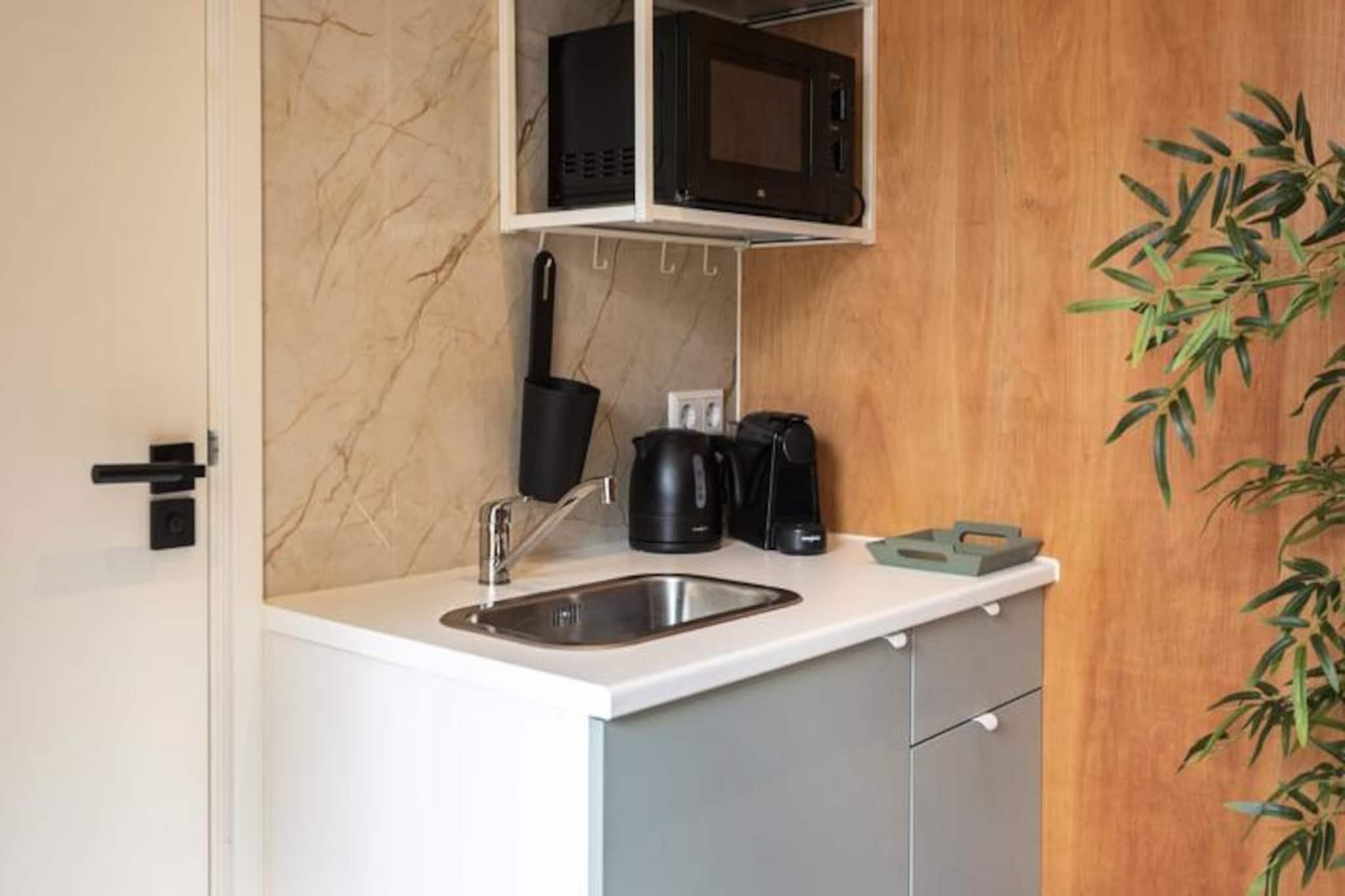 Træd ind i et fredfyldt oase ved havet i den charmerende kystby Zandvoort. Dette moderne, lydisolerede studio er en oase af ro, der blander varme trædetaljer med beroligende naturlige toner for at skabe en hyggelig og indbydende atmosfære. Kun en kort gåtur fra Nordsøens sandstrande er det det perfekte tilflugtssted for par eller solorejsende, der søger afslapning og foryngelse. \n\nStudioet er omhyggeligt designet til komfort og bekvemmelighed. En blød 160x200 boxmadras sikrer afslappende nætter, mens tekøkkenet giver mulighed for at tilberede lette måltider. Det private badeværelse har en walk-in bruser og moderne bekvemmeligheder. Højdepunktet ved dette oase er den sydvestvendte private terrasse, hvor du kan sole dig i eftermiddagssolen eller nyde en fredelig morgenkaffe omgivet af den blide kystbrise. Med Wi-Fi, tv og alle nødvendige faciliteter som sengelinned og håndklæder lover dit ophold at være lige så behageligt, som det er mindeværdigt. \n\nZandvoort tilbyder et væld af aktiviteter og attraktioner, der passer til enhver interesse. Udforsk de nærliggende nationalparker, De Waterleidingduinen og Kennemerduinen, som er perfekte til gåture eller cykling midt i fantastiske naturlandskaber. For de eventyrlystne kan du prøve surfing, kitesurfing eller endda mountainbiking i den berømte Circuit Park Zandvoort. Byen kan også prale af livlige strandklubber, restauranter og en unik nudiststrand for dem, der søger noget anderledes. \n\nStudiolejligheden har en bekvem beliggenhed, kun en kort gåtur fra Zandvoorts togstation, der forbinder dig til Amsterdam på under 30 minutter. Uanset om du ønsker at slappe af ved havet eller udforske Hollands kulturskatte, tilbyder denne stilfulde studiolejlighed den ideelle base for en uforglemmelig ferie.