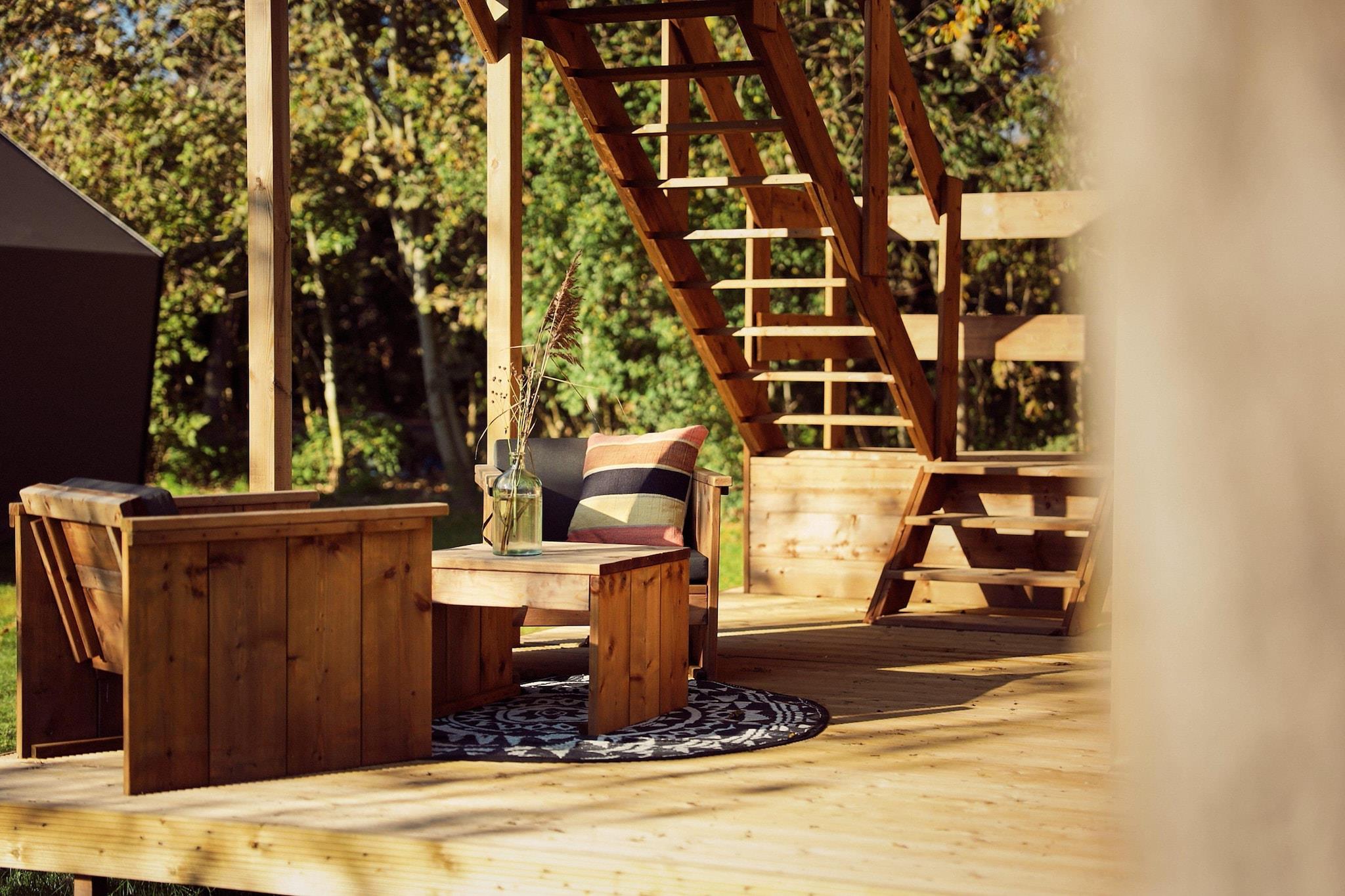 Flygt til denne fortryllende glamping-lodge i Zeewolde, designet til den perfekte ferie for to. Beliggende midt i naturens fredfyldte skønhed er denne bolig fuldt møbleret for at sikre et behageligt ophold. Det veludstyrede tekøkken har kogeplader, køleskab og vask, sømløst forbundet med en fantastisk træterrasse. Med en enkel rulle kanvas forvandler dit køkken sig til et udendørs kulinarisk paradis, så du kan nyde den friske luft, mens du tilbereder måltider. Det dejlige badeværelse har bruser, toilet og håndvask for din bekvemmelighed, hvilket får denne lodge til at føle sig som et hjem væk fra hjemmet. Gå ovenpå for at opdage et hyggeligt soveværelse med en plys dobbeltseng, hvor du hver morgen kan vågne til en betagende udsigt over vandet og det omkringliggende skovområde. Et charmerende ekstra siddeområde på dette niveau giver det perfekte sted at nippe til din morgenkaffe eller slappe af med en god bog, alt imens du nyder roen i dine omgivelser. Lodgen har også en charmerende udendørs terrasse med havemøbler, ideel til stjernekiggeri om natten eller til at nyde en grill ved hjælp af den medfølgende kulgrill. Beliggende i hjertet af naturen, er denne glamping-lodge kun få minutter fra nogle af Zeewoldes vigtigste attraktioner. Udforsk de naturskønne vandre- og cykelstier i det nærliggende Veluwemeer, eller tag en afslappet spadseretur gennem det frodige grønne område Horsterwold, en af de største løvskove i Holland. For dem, der søger lidt eventyr, kan du opdage de forskellige vandsportsaktiviteter, der er tilgængelige i den nærliggende marina, eller slappe af på sandstrandene langs søen. Oplev den perfekte blanding af komfort og udendørs eventyr på denne smukke glamping lodge i Zeewolde!