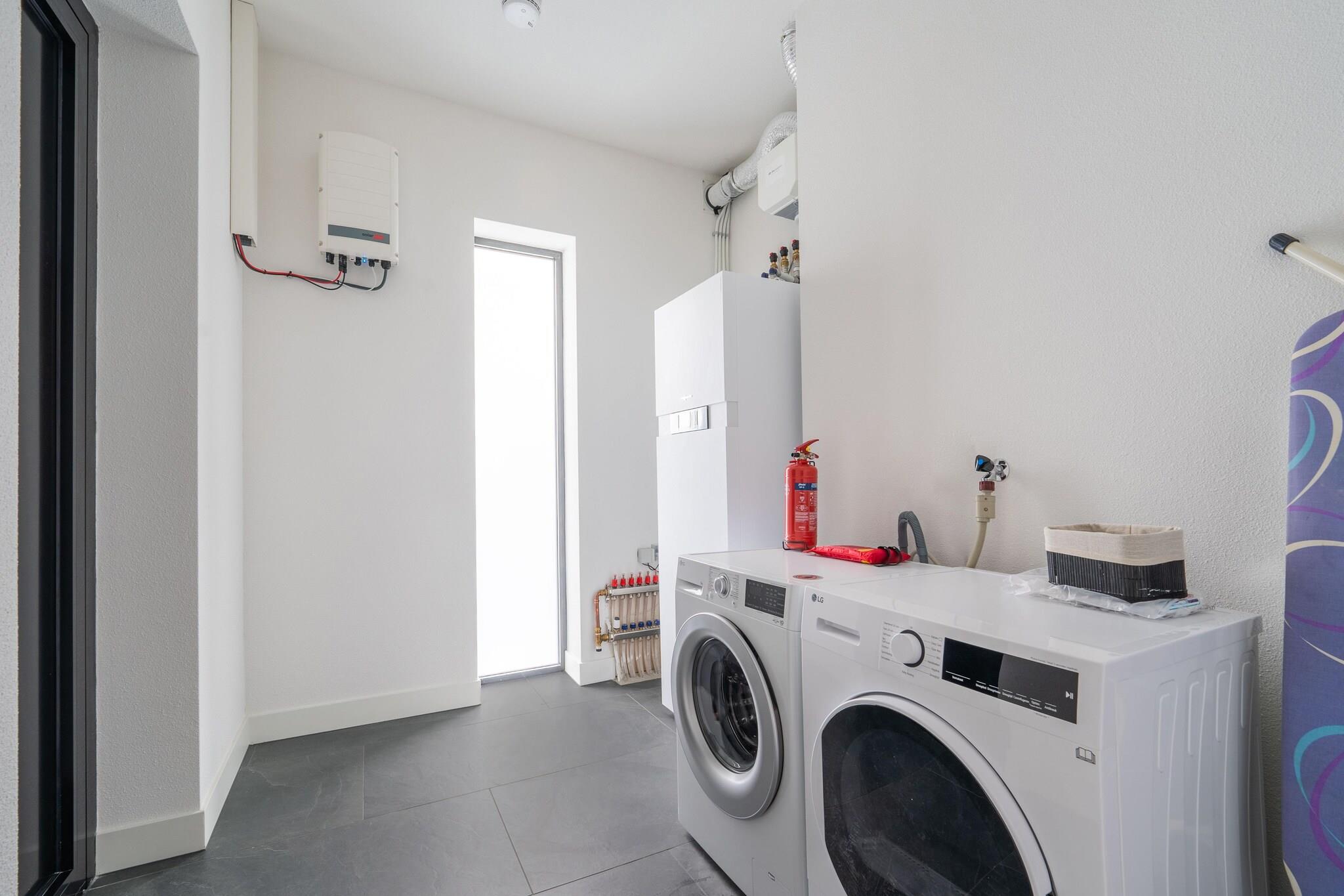 Stueetage: (Indgang , entre, åbent køkken(kogeplade(induktion), elkedel, emhætte, kaffemaskine, combi-mikroovn, opvaskemaskine , køle-fryseskab), stue / spisestue(Fjernsyn(digital, Smart-TV), spisebord, sofahjørne, Netflix, havedøre, Netflix), soveværelse(dobbeltseng), badeværelse(bruser(Walk-in-bruser), håndvask, håndvask, toilet), toilet(håndvask, toilet), pulterkammer(tørretumbler, vaskemaskine)) På 1. etage: (gang, soveværelse(dobbeltseng, klimaanlæg), soveværelse(dobbeltseng, klimaanlæg), badeværelse(badekar, bruser(Walk-in-bruser), håndvask, håndvask, toilet), badeværelse(bruser(Walk-in-bruser), håndvask, toilet), Repos) fortøjningsbro, terrasse, have(indhegnet), havemøbler, grill, parkering, Parasol, tennisbane(deles med andre gæster, betalt), vand til vand-varmepumpe