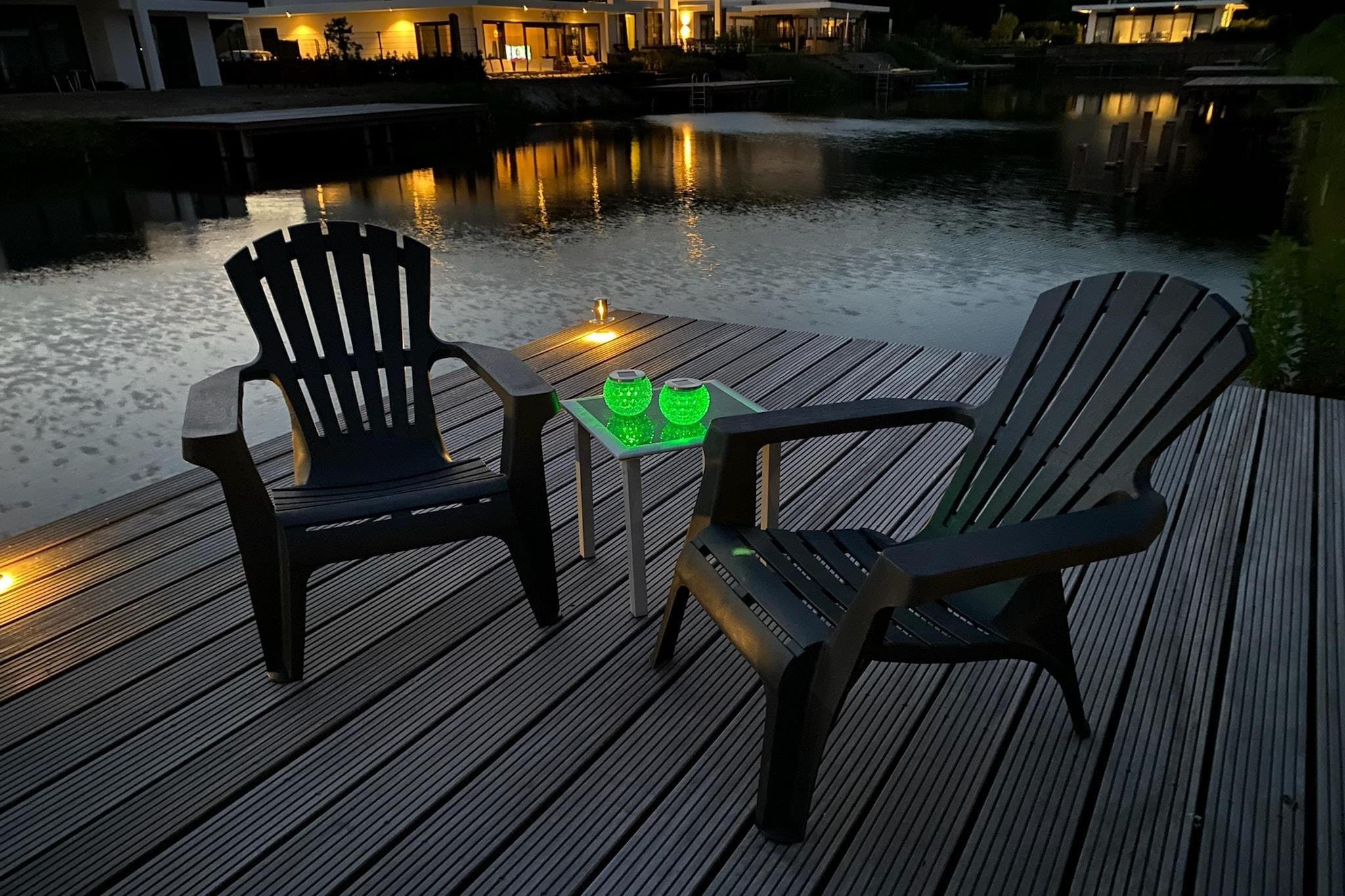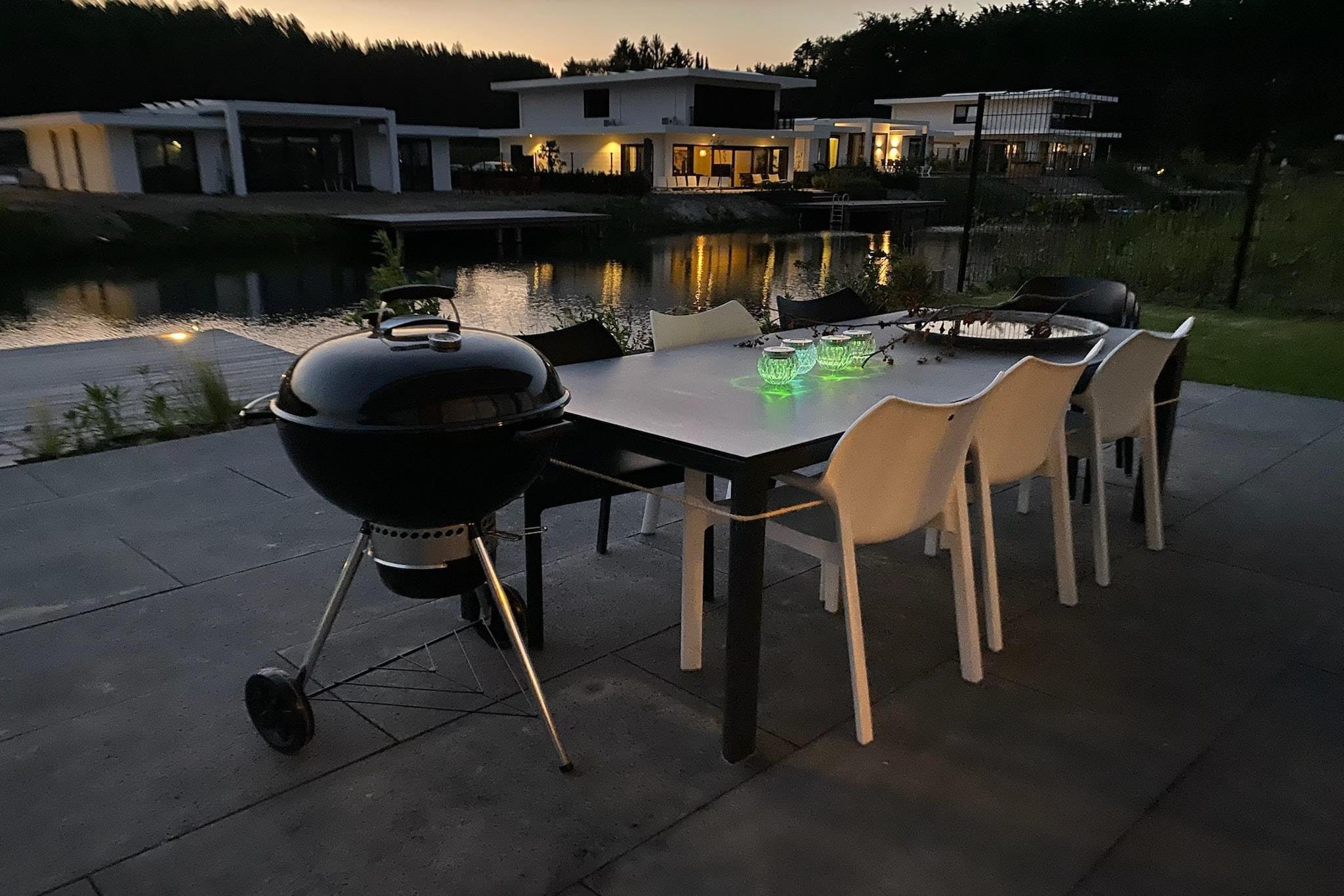 Stueetage: (Indgang , Stue(Fjernsyn, sofahjørne, varme(gulvvarme)), åbent køkken(spisebord, kogeplade, cooker, emhætte, kaffemaskine(kopper, kaffetragt), ovn, combi-mikroovn, opvaskemaskine , køle-fryseskab, varme(gulvvarme), Foodprocessor), soveværelse(enkeltseng, enkeltseng, varme(gulvvarme)), badeværelse(bruser, håndvask, toilet), toilet(håndvask, toilet), pulterkammer(tørretumbler, vaskemaskine)) På 1. etage: (gang, soveværelse(enkeltseng, enkeltseng, balkon, klimaanlæg), soveværelse(enkeltseng, enkeltseng, klimaanlæg), badeværelse(badekar, bruser, håndvask, toilet), badeværelse(bruser, håndvask, toilet), Repos) fortøjningsbro, terrasse, have, havemøbler, grill, parkering, Parasol, barnestol, strygebræt, strygejern