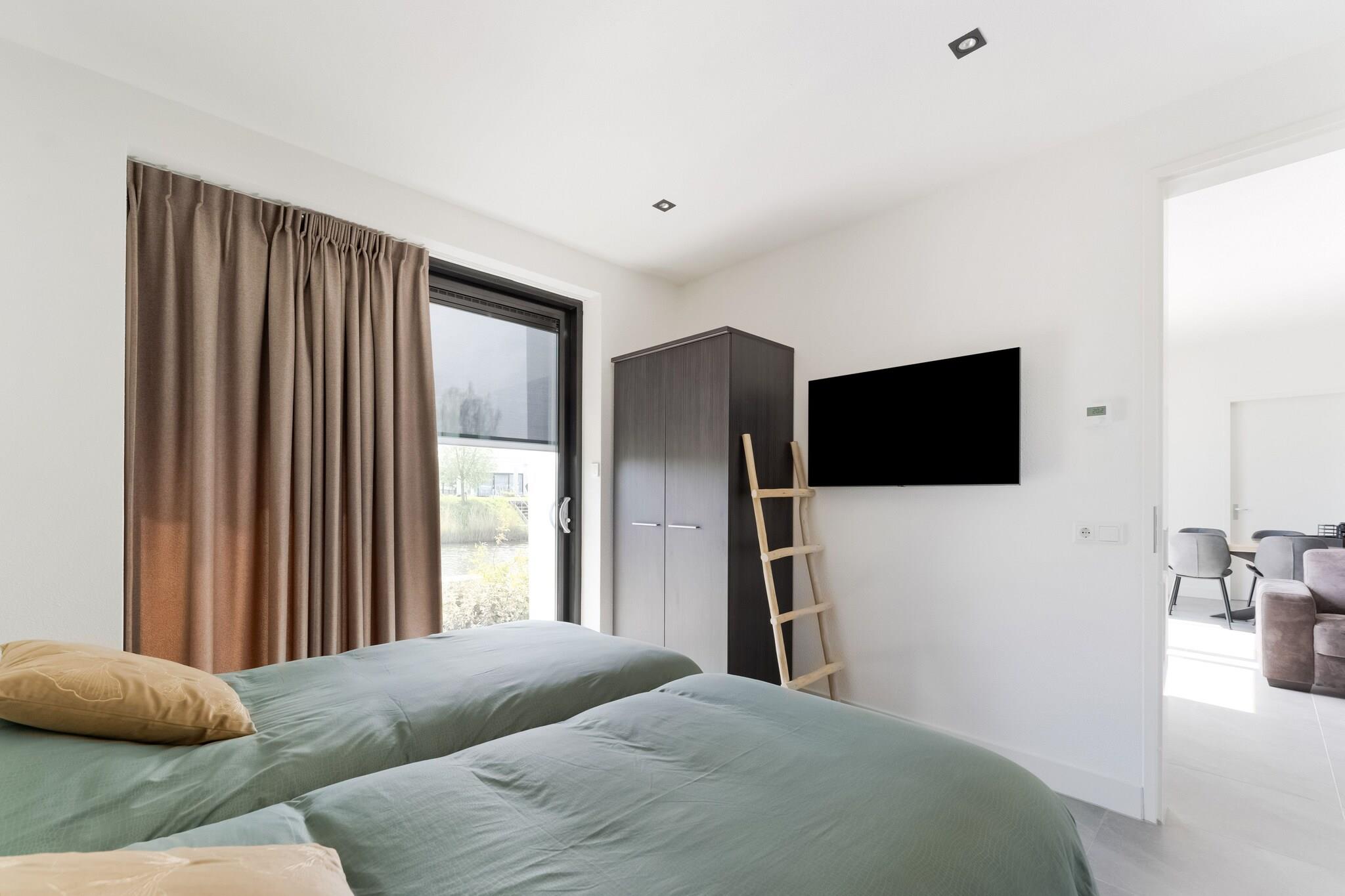 Et stilfuldt tilflugtssted ved vandet Denne moderne villa i Zeewolde tilbyder rolige omgivelser omgivet af grønne områder og vand, perfekt til en afslappende ferie. Det omhyggeligt designede opholdsrum åbner ud til en terrasse og have, hvor du kan nyde dine måltider eller blot slappe af i solen. En privat anløbsbro tilbyder et malerisk sted at slappe af ved vandet, mens de små kan nyde trampolinen eller lege sikkert med en høj stol og barneseng til rådighed. Uanset om du holder grillfest, slapper af indendørs med aircondition eller nyder bruseniche, har denne villa komfort i centrum. Natur og eventyr hele vejen rundt Beliggende kun 2 km fra Veluwemeer og tæt på Flevostrand Strand, placerer dette hjem dig i hjertet af Flevolands naturlige skønhed. Gå eller cykel gennem den nærliggende Horsterwold-skov eller udforsk Oostvaardersplassen for fuglekiggeri og naturskønne landskaber. For familiesjov ligger Dolfinarium i Harderwijk kun 5 km væk, og spændingssøgende vil elske Walibi Holland, kun 15 minutters kørsel væk. Med en golfbane 300 meter væk og vandsport i nærheden er der noget for enhver smag. Smagsoplevelser i nærheden For lokale smagsoplevelser kan du besøge det berømte Pannenkoekenhuis Hans en Grietje (8,3 km), et magisk pandekagehus elsket af både børn og voksne. Nyd en middag ved søen i Harderwijk, hvor livlige spisesteder og terrasser ved vandet tilbyder frisk fisk og skaldyr, hollandske klassikere og international mad. Uanset om det er afslappede snacks eller en romantisk middag, finder du lækre muligheder kun få minutter væk.
