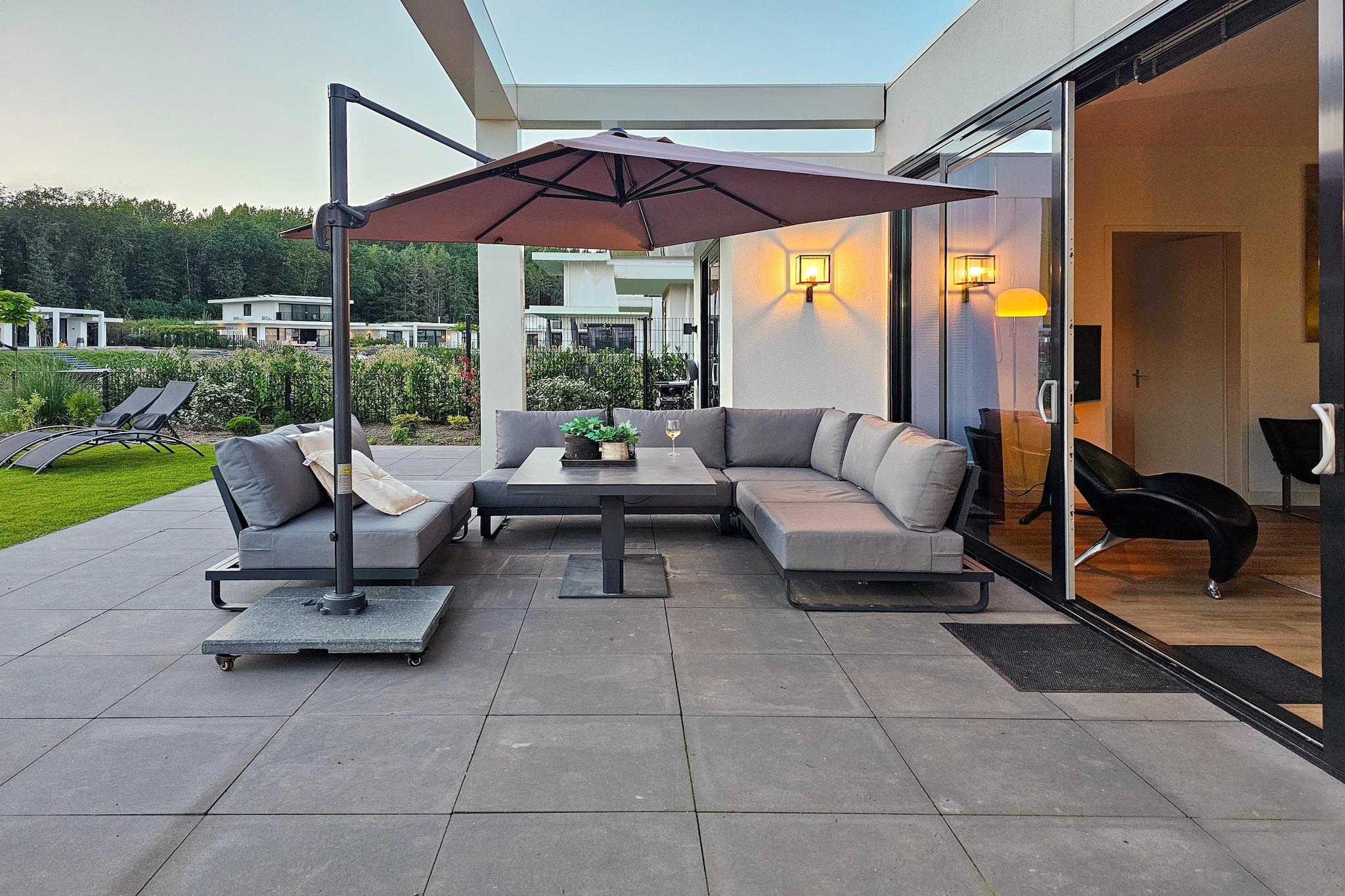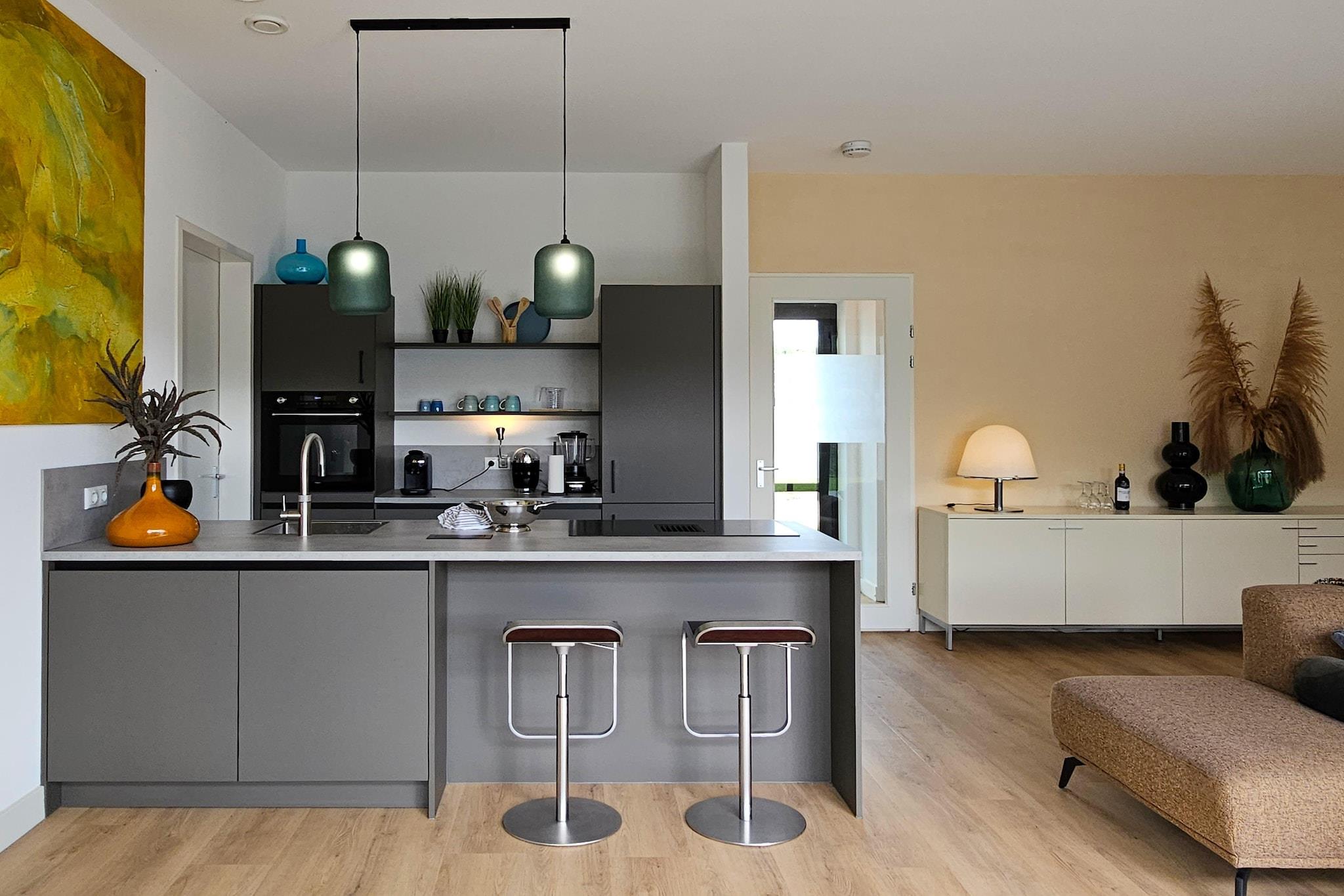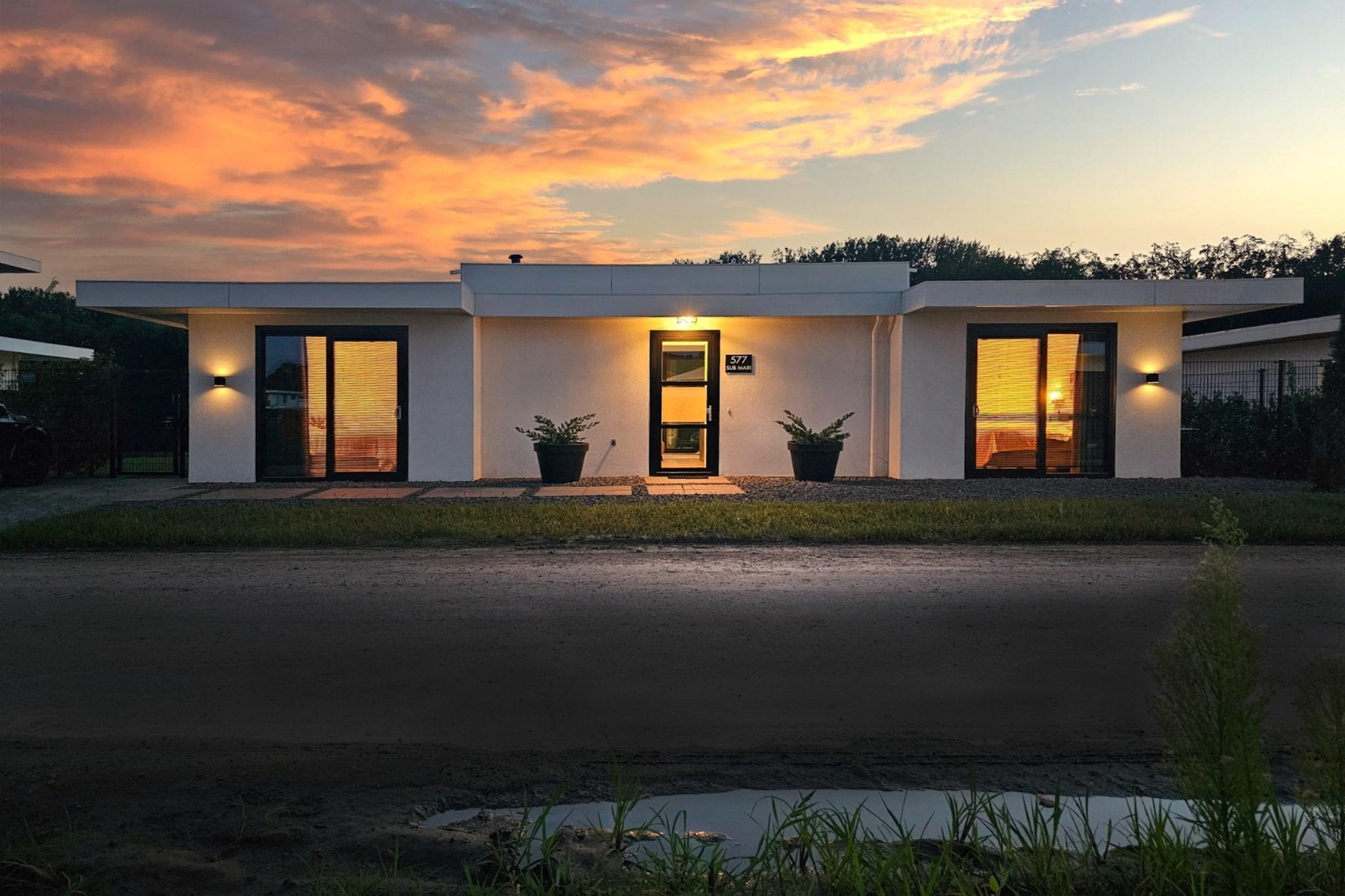 Denne villa i én etage har en stor terrasse og græsplæne med flere siddeområder, liggestole og en elektrisk grill samt en vandtæt veranda-solskærm til lette sommerbyger. En mole giver nem adgang til vandet, og der er en 3-personers kano, redningsveste til børn og en højstol til rådighed. Det elegante interiør kombinerer moderne komfort med et fuldt udstyret køkken, herunder induktionskomfur, kombiovn, kogende vandhane, kaffemaskine, blender, appelsinpresser og airfryer. Villaen har smart-tv, bærbar højttaler, tre rummelige soveværelser med boxmadrasser og to badeværelser. Gulvvarme med solceller og varmepumpe sikrer et behageligt indeklima. Haven er indhegnet, hvilket gør den sikker for børn og hunde, med nærliggende strande og skove til gåture. Parken er fyrværkerifri med en stille periode fra kl. 22.00 til 8.00. Fra sommeren 2024 vil en del af haven blive yderligere indhegnet for små børn.