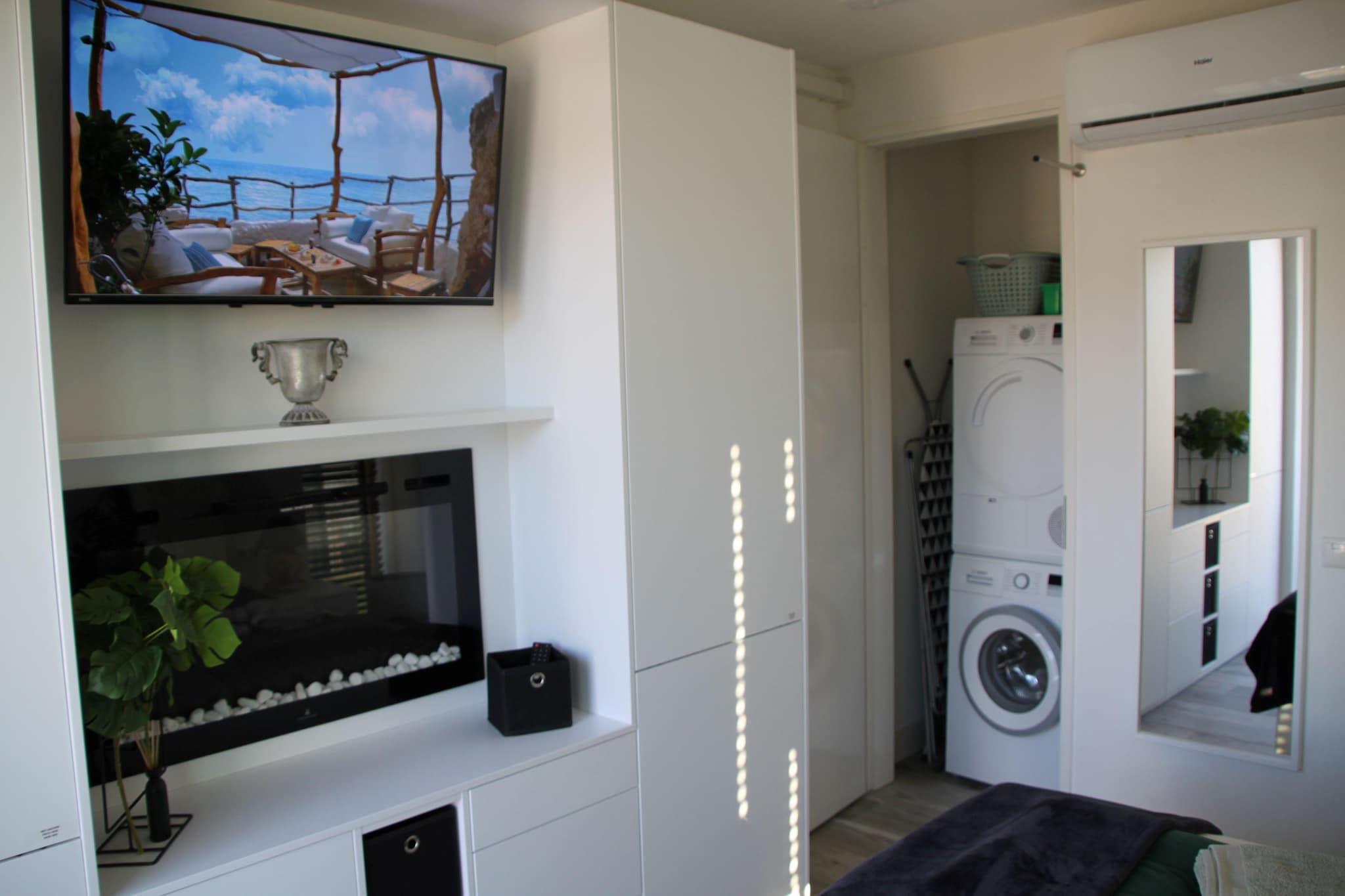 Velkommen til dette smukt indrettede feriehus beliggende ved vandet i Zeewolde. Villaen tilbyder en unik blanding af moderne komfort og stilfuld elegance med en rummelig stue, dekorative pejse og luksuriøse boxmadrassenge. Gå ud på den private, overdækkede terrasse for en fredelig morgenkaffe, eller slap af i haven med en bog. Med en anløbsbro, der er tilgængelig via en udendørs trappe, en elektrisk grill, selskabsspil og et flygel, tilbyder hjemmet en mindeværdig ramme for afslapning og kontakt. Omgivet af fredfyldte landskaber er denne villa en fremragende base for at udforske den naturskønne Flevoland-region. Tag en afslappet gåtur til Veluwemeer, kun 2 km væk, eller sol dig i sommersolen på Flevostrand-stranden. Eventyrlystne sjæle kan dykke ned i vandsport eller tage til forlystelsesparken Walibi Holland for et adrenalinsus. Familier vil nyde Dolfinarium i Harderwijk, mens naturelskere kan udforske de smukke stier i Oostvaardersplassen eller de nærliggende Veluwe-skove. Efter en dag med opdagelser kan du forkæle dig selv med lokale smagsoplevelser. Nærliggende Harderwijk byder på et udvalg af charmerende spisesteder, herunder De Basiliek ved søbredden for udsøgte restauranter og Beachclub NU for afslappede, naturskønne måltider. For et sjovt twist kan du besøge det magiske Pannenkoekenhuis Hans & Grietje, en familievenlig pandekagerestaurant kun en kort køretur væk. Uanset om du er ude efter elegant mad eller afslappede snacks, er der noget for enhver smag i nærheden.
