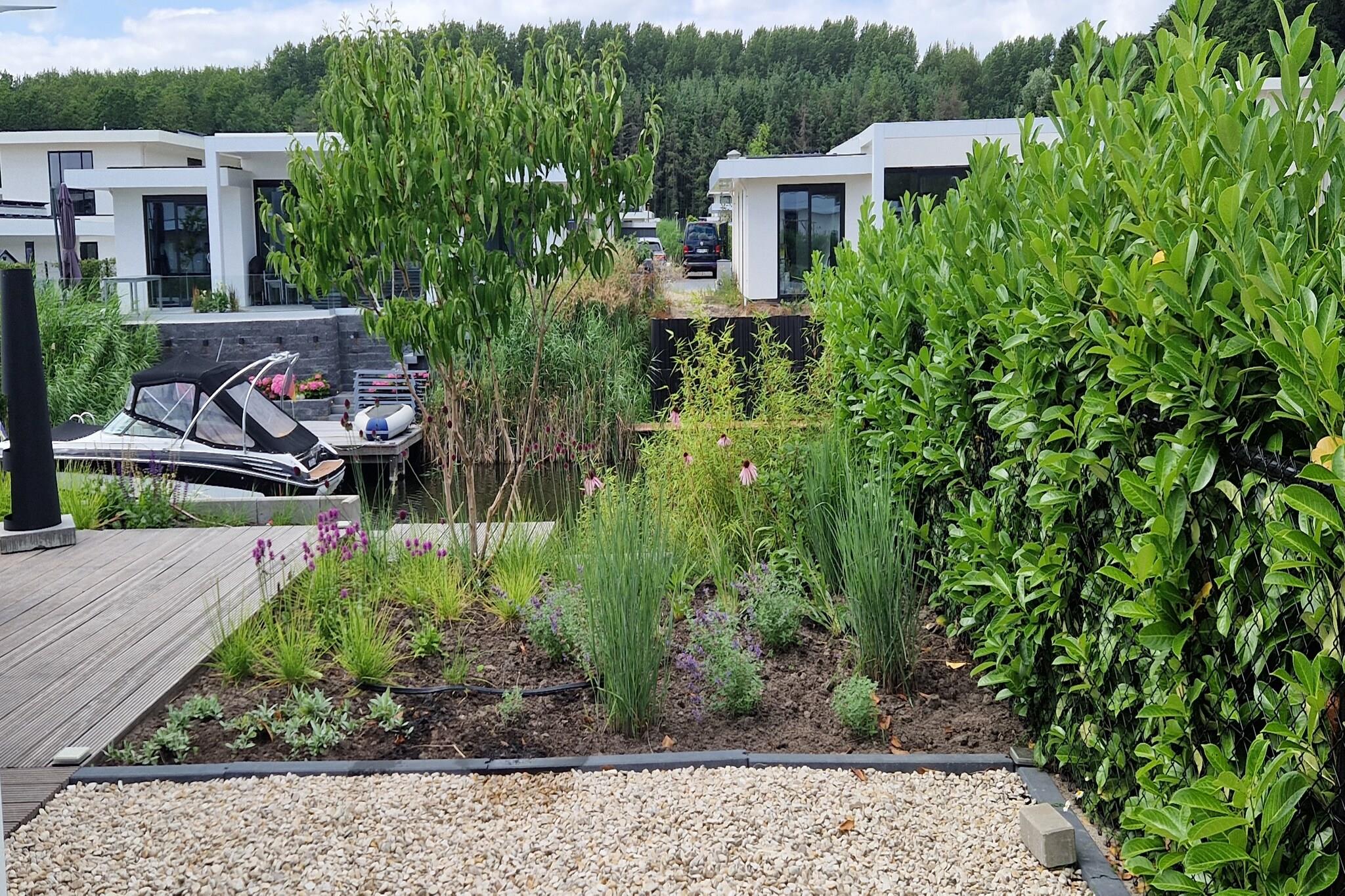 Vandvilla med anløbsbro og 3 fritidsbåde