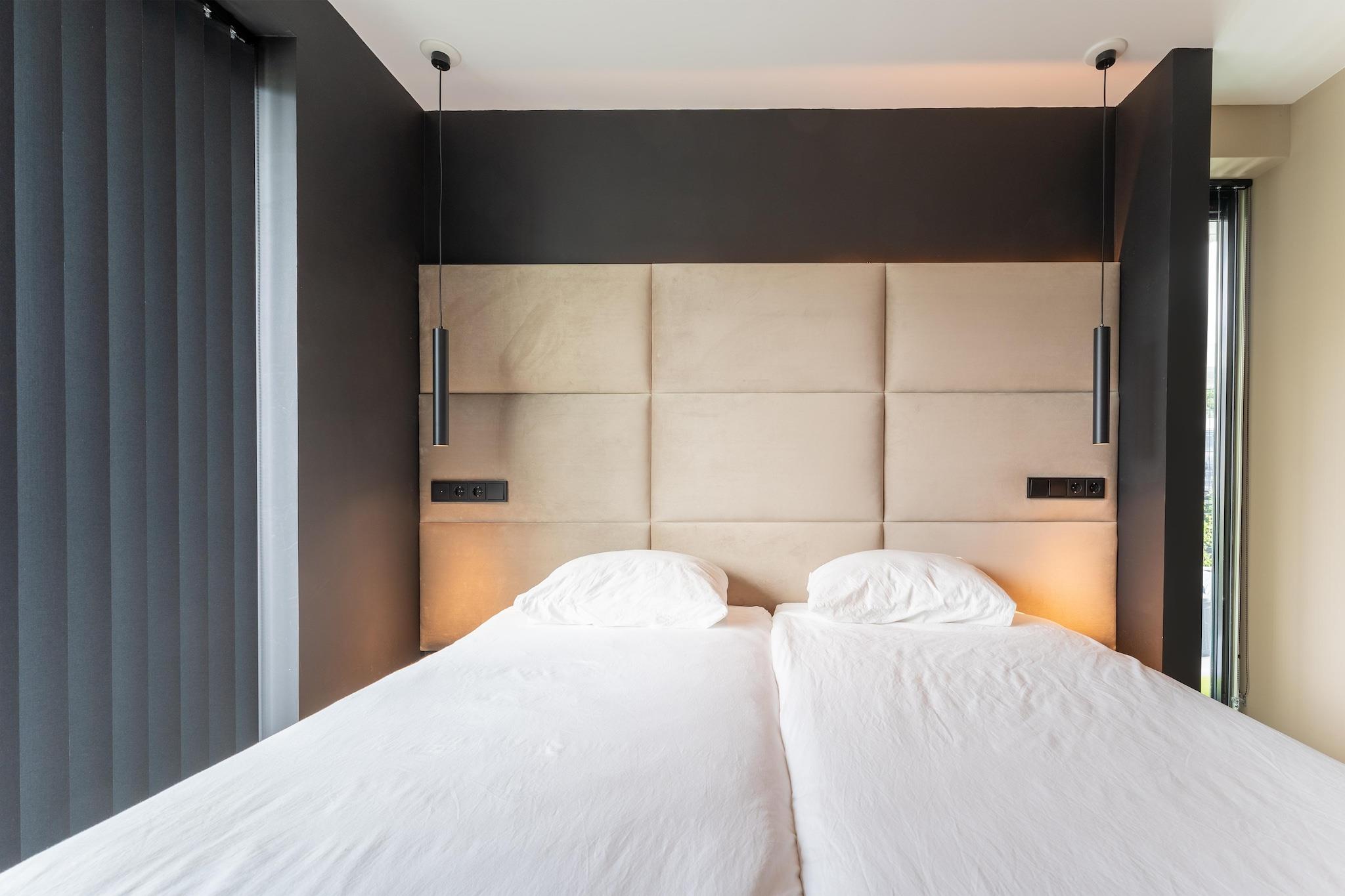 Denne elegante villa ligger gemt væk i Flevolands fredelige grønne områder og tilbyder en harmonisk blanding af komfort og stil. Dens private anløbsbro, indhegnede have og luksuriøse udendørs boblebad gør den til det perfekte tilflugtssted for dem, der søger hvile og rekreation. Børnene kan nyde den private trampolin og gynge, mens de voksne slapper af på terrassen eller i den udendørs bruser. Indenfor finder du en moderne opholdsstue med aircondition, gulvvarme og et elegant køkken, der er ideelt til at tilberede mindeværdige måltider med venner eller familie. Villaens beliggenhed er en indgangsport til det bedste i regionen. Udforsk det fredfyldte Veluwemeer, kun 2 km væk, ideelt til vandsport eller gåture langs søen. Golfentusiaster vil sætte pris på nærheden til Harderwold Golf & Events (400 m), mens spændingssøgende kan nyde en dag på Walibi Holland (14,5 km). Naturelskere kan vandre gennem Harderbos eller tage en naturskøn tur til historiske hansestader som Elburg og Kampen. For familier tilbyder Dolfinarium Harderwijk (4,9 km) en magisk dag med havliv, kun få minutter væk. Når det er tid til at forkæle dig selv, finder du fremragende restauranter kun en kort gåtur væk. Nyd et raffineret måltid på Brasserie Harderwold (500 m) eller oplev den hyggelige hollandske charme i 't Huus van Guus (2,2 km). Bataviastad Fashion Outlet ligger kun 26,8 km væk, hvis du vil shoppe. Uanset om du nipper til vin fra din villas vinkøleskab eller spiser udendørs med en trækulsgrill, lover hvert øjeblik her komfort, smag og varige minder.