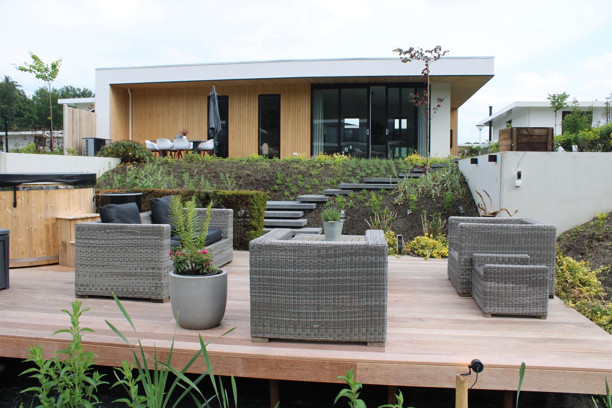 Afslappende morgenmad ved vandet! Det er muligt på terrassen, i de afslappede liggestole ved vandet. Solen er let synlig der. Er skyggen et yndlingssted? Så kan den findes på terrassen ved huset. Huset med sit landlige design passer ind i omgivelserne. Både huset og det omkringliggende område udstråler ro og afslapning. Huset er fuldt udstyret. En campingseng og en høj stol er til rådighed for de mindste. Området byder på noget for enhver smag. Gåture, cykling, vandsport, golf, shopping eller en drink? Det er alt muligt i området. Den gamle bydel i Harderwijk er i nærheden. Denne by ligger ved Veluwe-søen og byder på mange muligheder. Selve parken har en golfbane, mens huset er udstyret med to cykler. (Elektriske) cykler lejes også i parken. Det er også muligt at SUP fra huset. Passer det dig bedre at blive hjemme? Så kan du nyde den store have med smukke sommerblomstrer. Du kan selvfølgelig også forkæle dig selv ved at tage et varmt bad eller bruge spabadet. Denne er udstyret med boblebadsfunktion og belysning. Bliv overrasket over dette attraktive hjem i landlige omgivelser med vand, skov og enge. På grund af anlægsarbejder i nærområdet kan der være gener (undtagen weekender). Harderwold Villa Resort er en fyrværkerifri zone hele året rundt. Af hensyn til roen og roen skal der være stille i parken klokken 22.00.