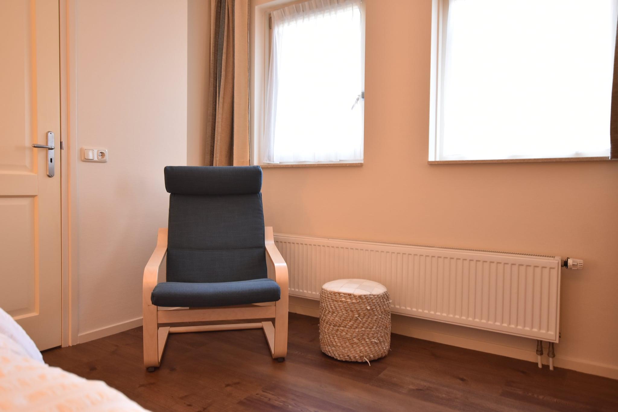 Stueetage: (åbent køkken(komfur, emhætte, kaffemaskine(kaffetragt), combi-mikroovn, opvaskemaskine , køle-fryseskab), stue / spisestue(Fjernsyn(fladskærm), sofahjørne), soveværelse(2x enkeltseng(boxmadras), sofahjørne), badeværelse(bruser, håndvask, toilet), varme(gulvvarme)) havedøre, terrasse, have, havemøbler, parkering