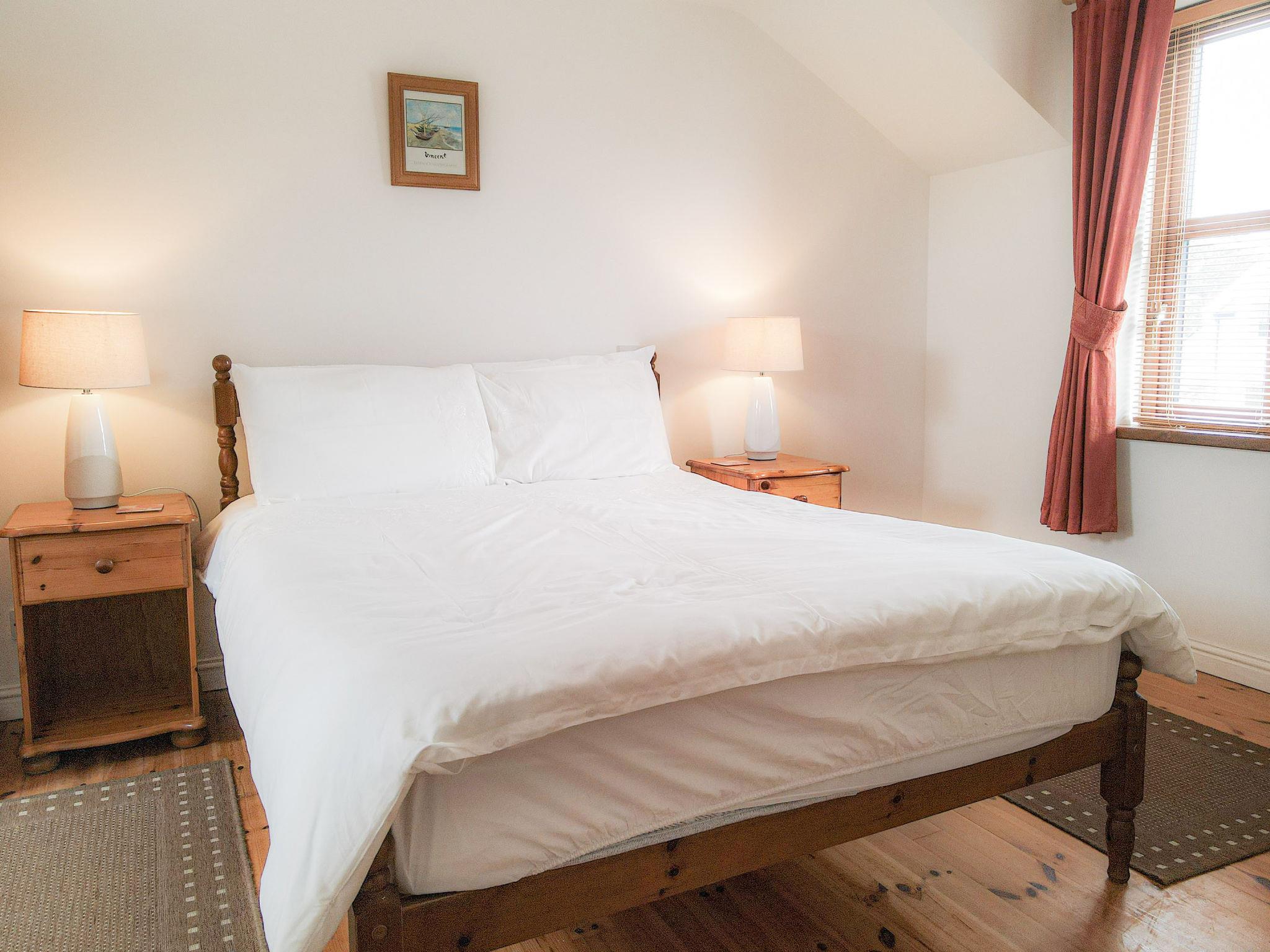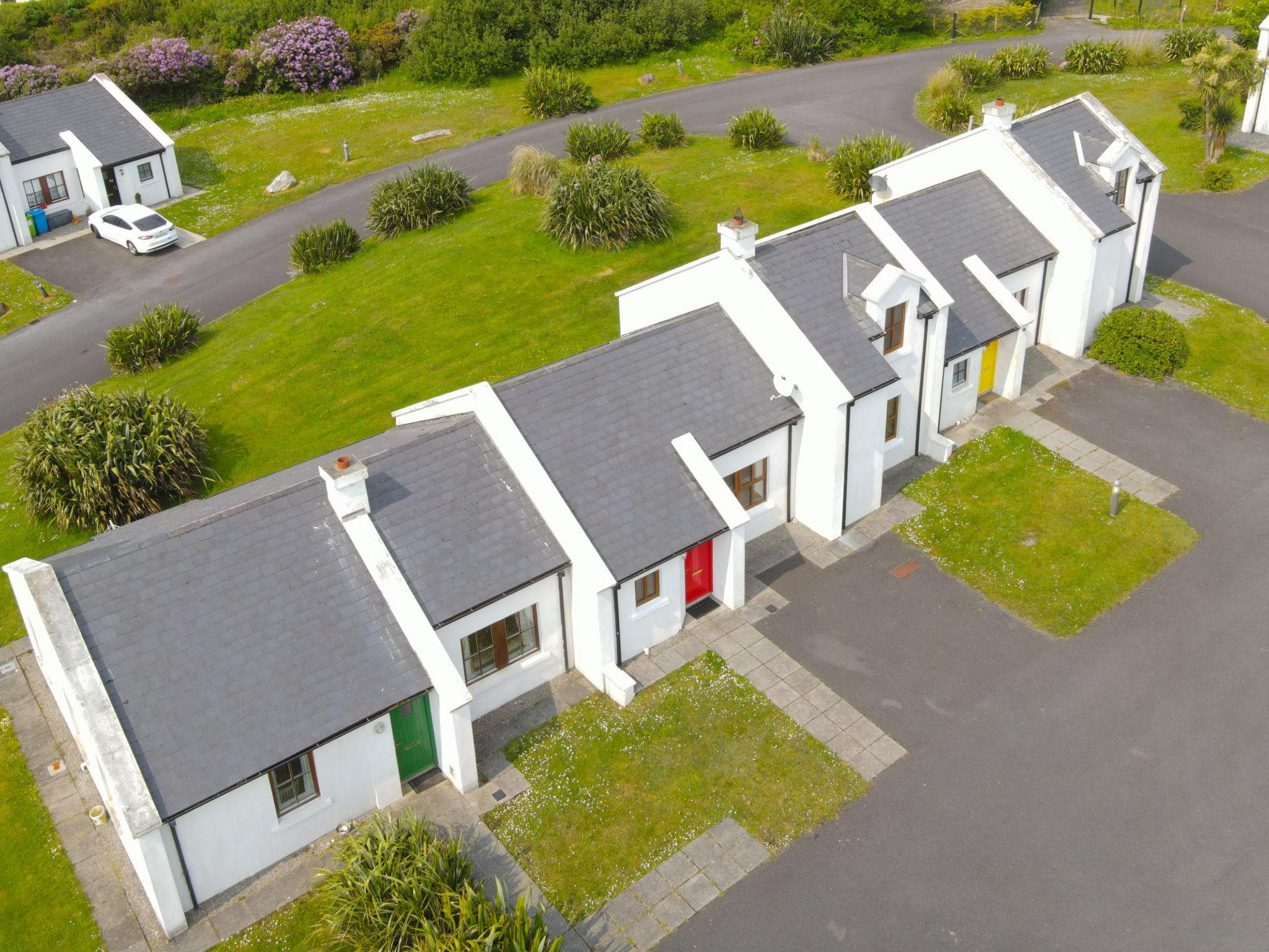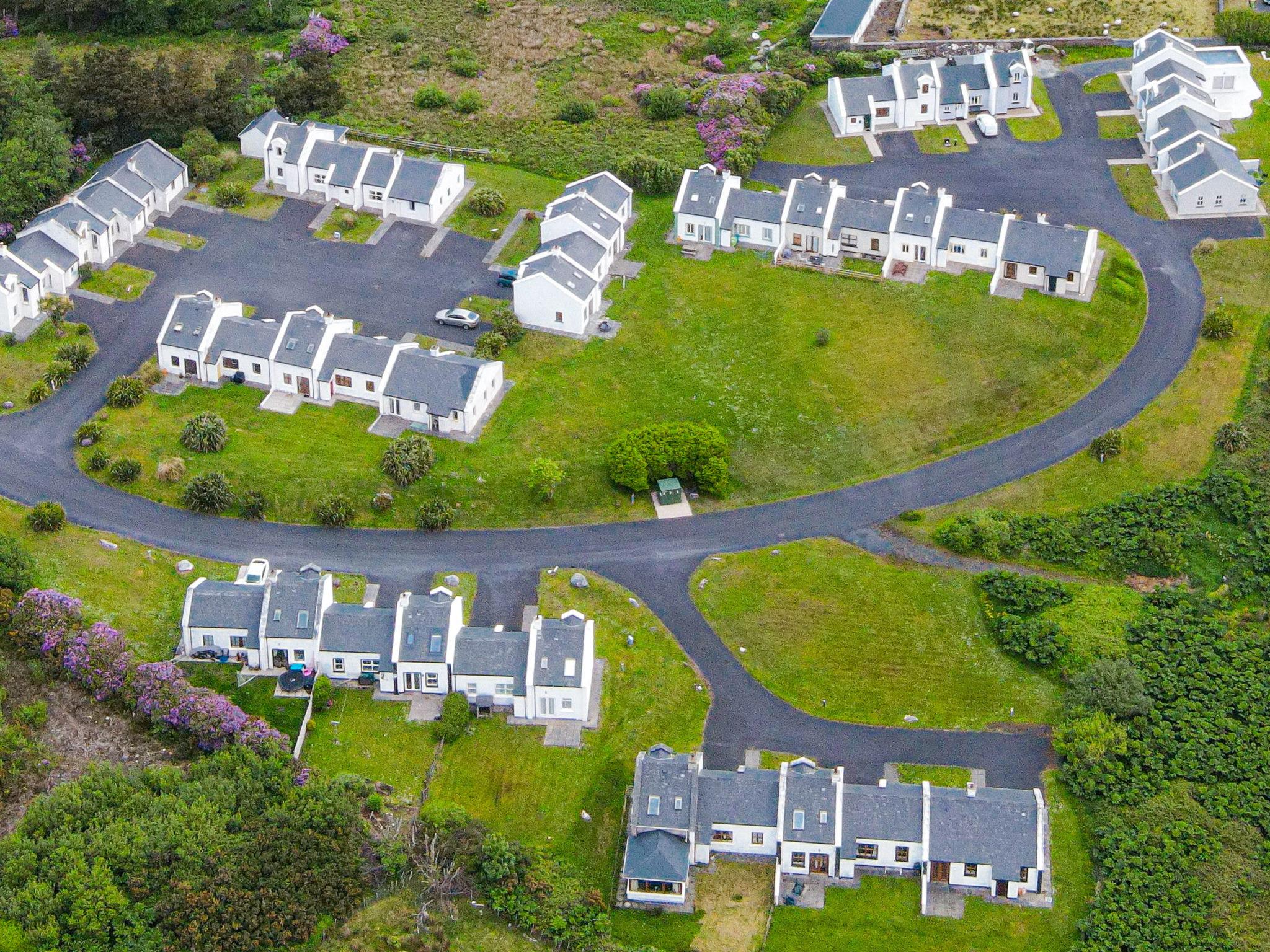 "Achill Sound HV No 9", 4-room house 100 m2. Object suitable for 5 adults. Living room with open-hearth fireplace, TV and DVD. 1 room with 1 double bed. 1 room with 1 double bed. 1 room with 1 bed. Kitchen (4 hot plates, oven, dishwasher, toaster, kettle, microwave, freezer). Bath/WC, 2 showers/WC. Facilities: washing machine, iron. Internet (WiFi, free). Please note: non-smokers only. rpt/ ppsn