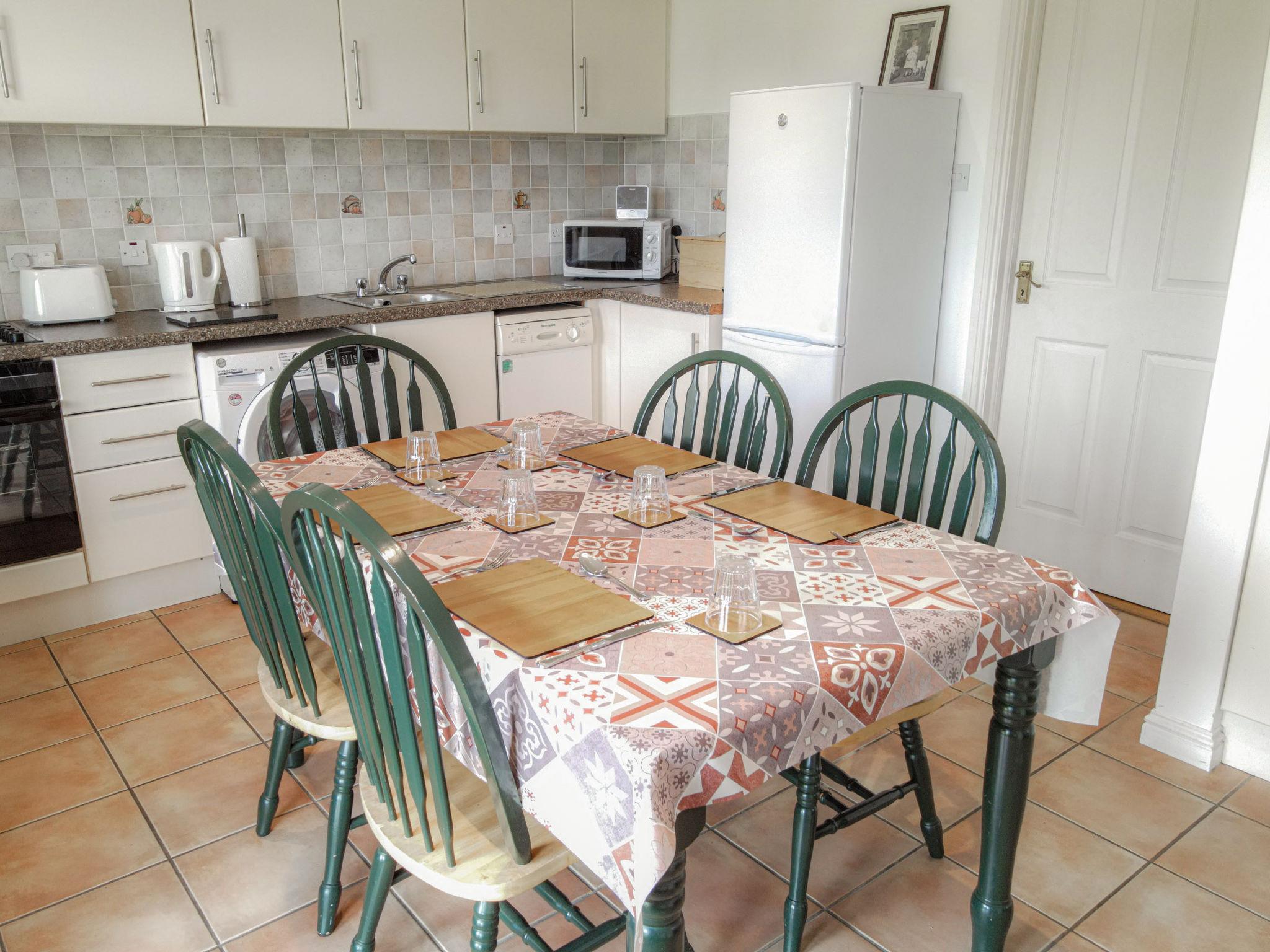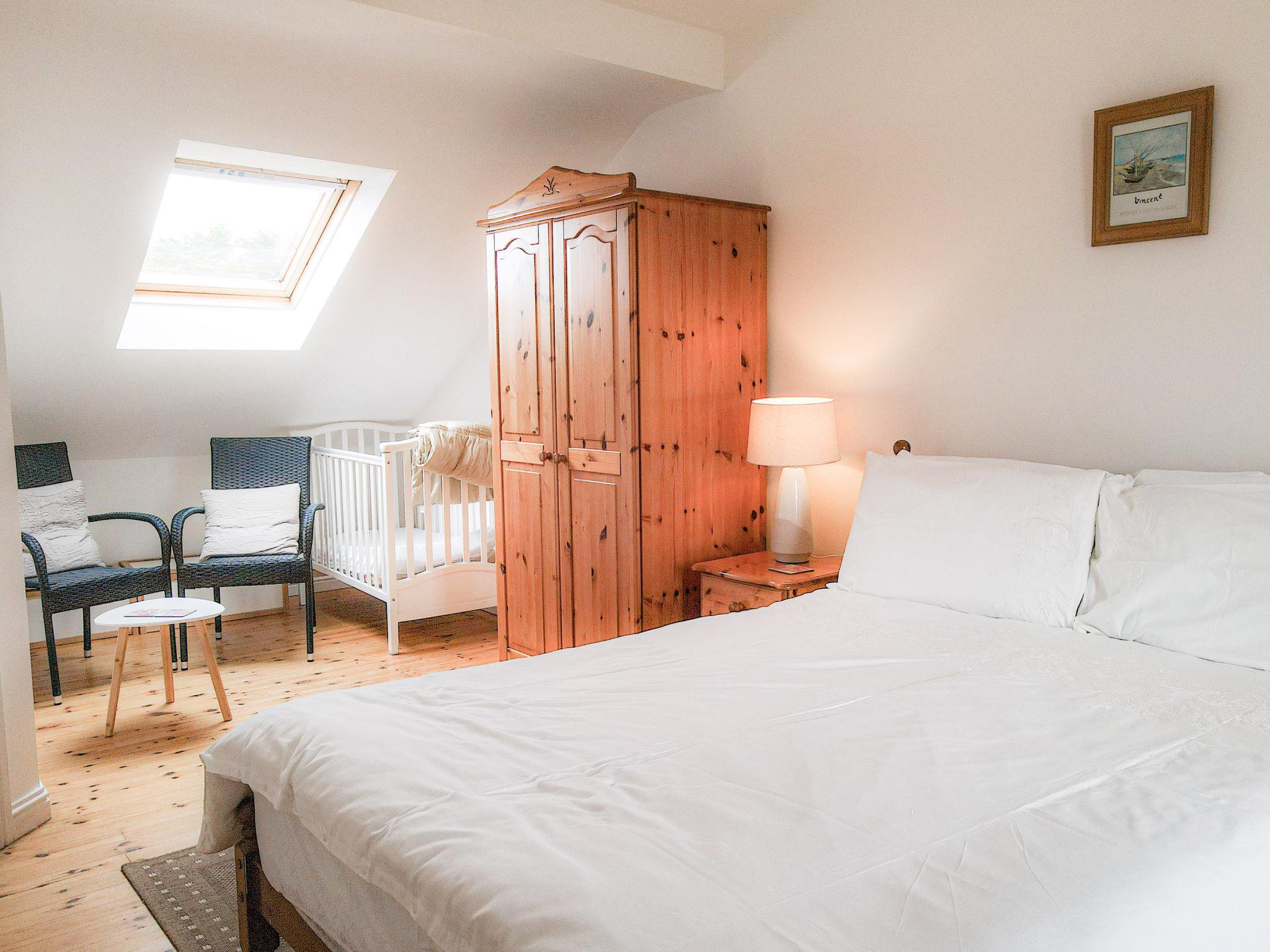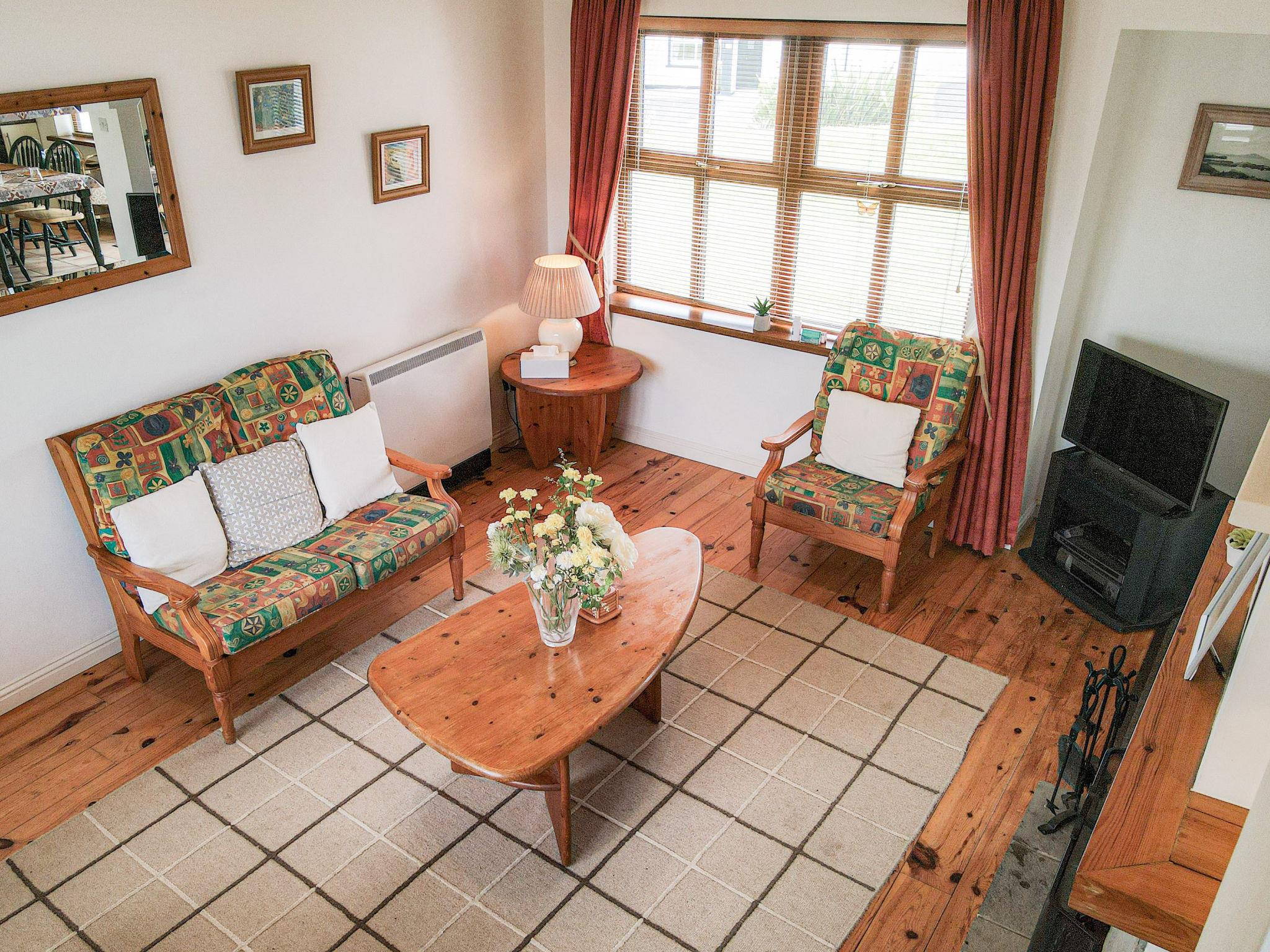 "Achill Sound HV No 9", 4-room house 100 m2. Object suitable for 5 adults. Living room with open-hearth fireplace, TV and DVD. 1 room with 1 double bed. 1 room with 1 double bed. 1 room with 1 bed. Kitchen (4 hot plates, oven, dishwasher, toaster, kettle, microwave, freezer). Bath/WC, 2 showers/WC. Facilities: washing machine, iron. Internet (WiFi, free). Please note: non-smokers only. rpt/ ppsn