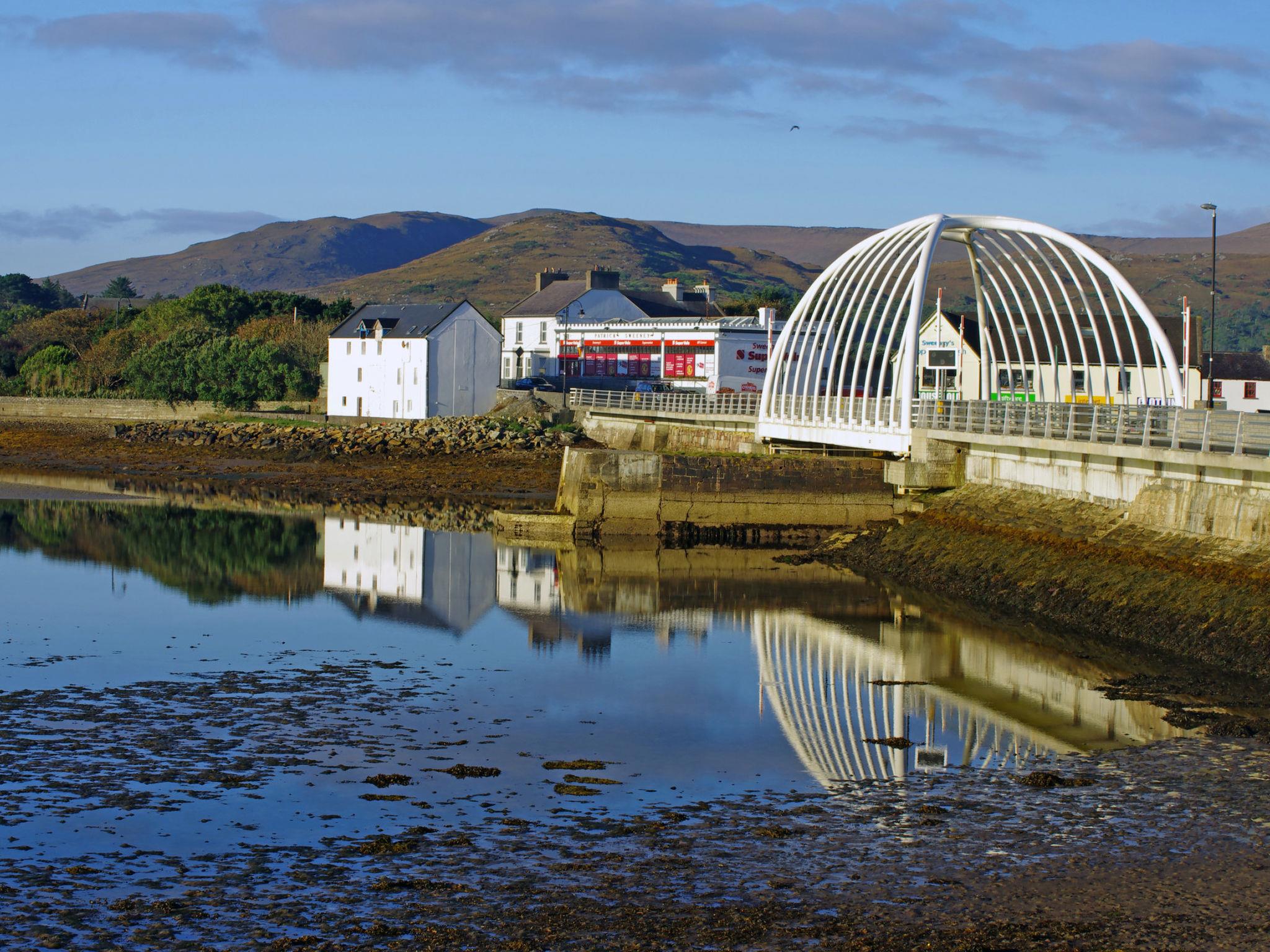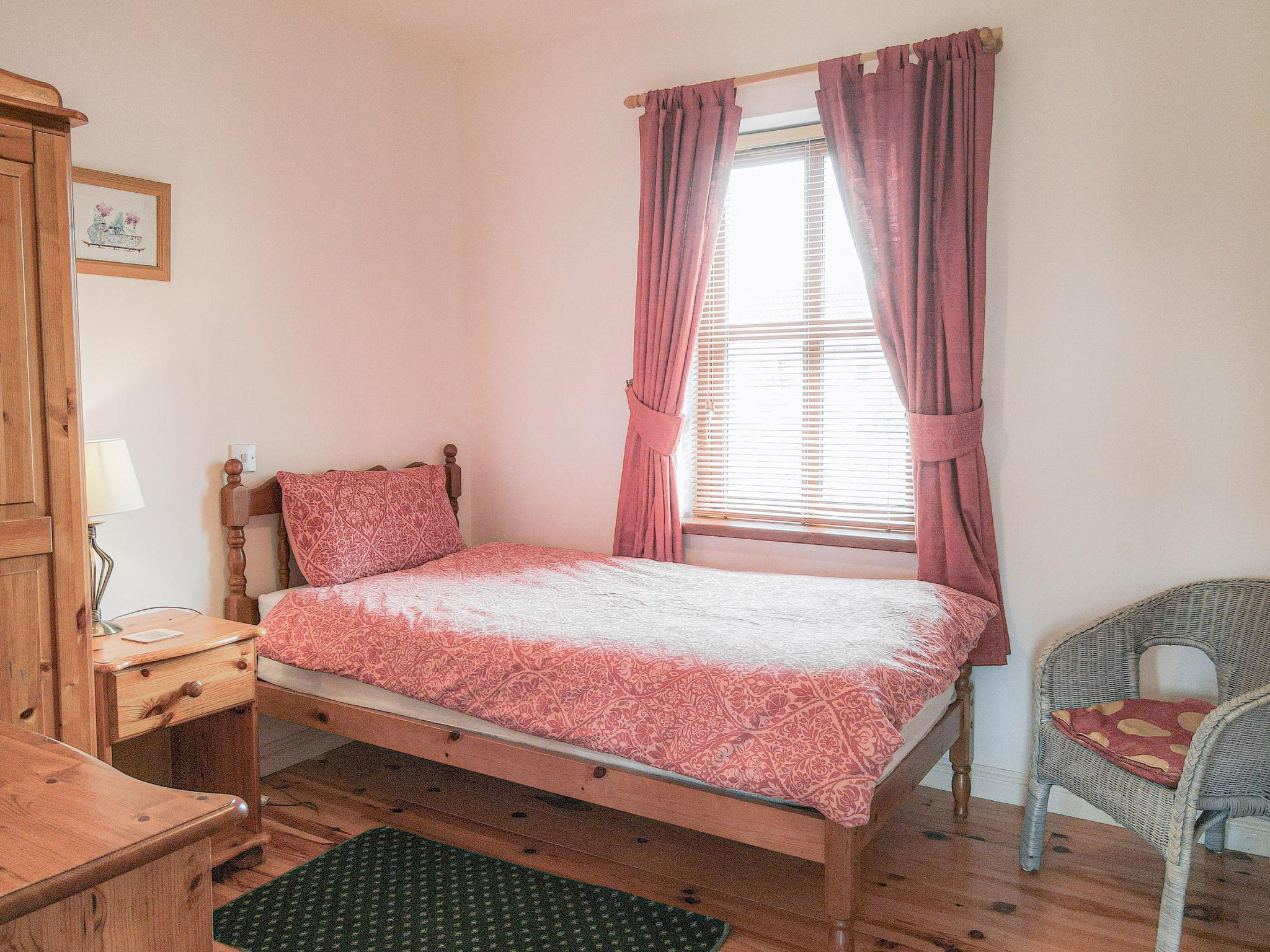Achill Island: House. 2.3 km from the lake. Private: garden. Garden furniture, parking (for 1 cars). Supermarket 15 km, bus stop 1 km, railway station 68.6 km, sandy beach 23 km. Golf course 15.3 km. The owner does not accept any youth groups.