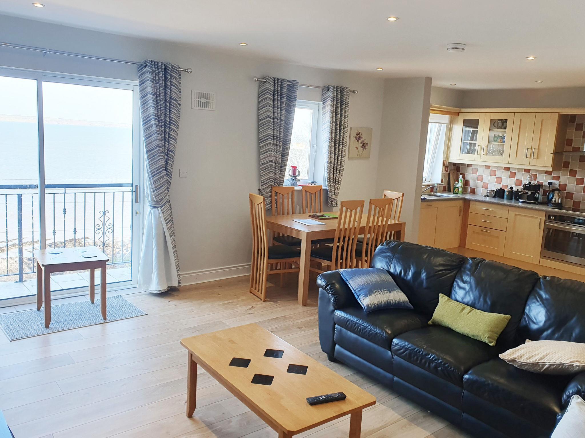 "Ballycotton Holiday (TR1+2) Apartment No 6", 3-room apartment 98 m2. Object suitable for 5 adults. Living room with open-hearth fireplace. 1 room with 1 double bed. 1 room with 1 bed and 1 double bed. Kitchen (4 hot plates, oven, dishwasher, toaster, kettle, microwave, freezer, electric coffee machine). Bath/WC, shower/WC. Balcony. Facilities: washing machine. Internet (WiFi, free). Please note: non-smokers only. Smoke alarm.