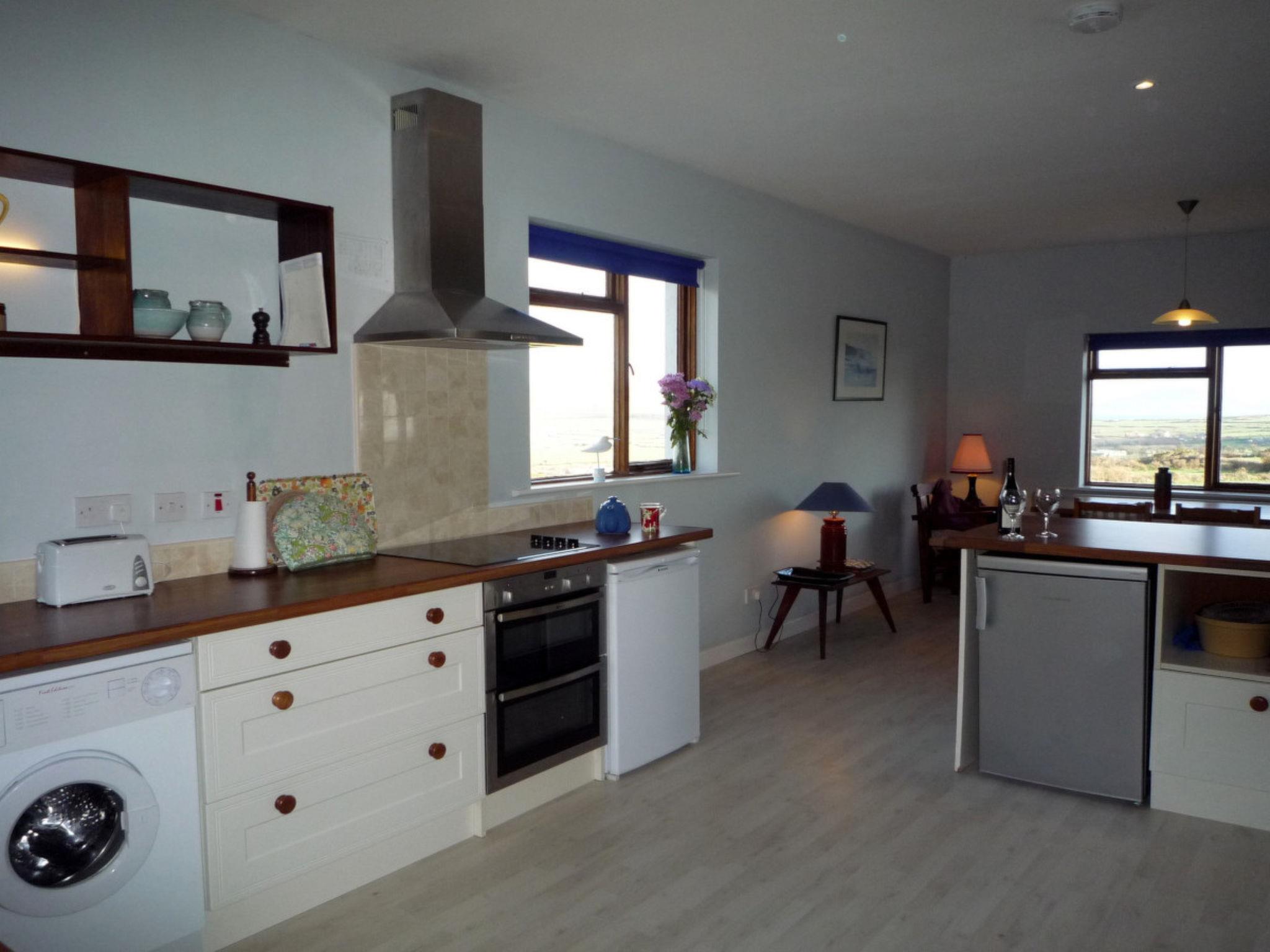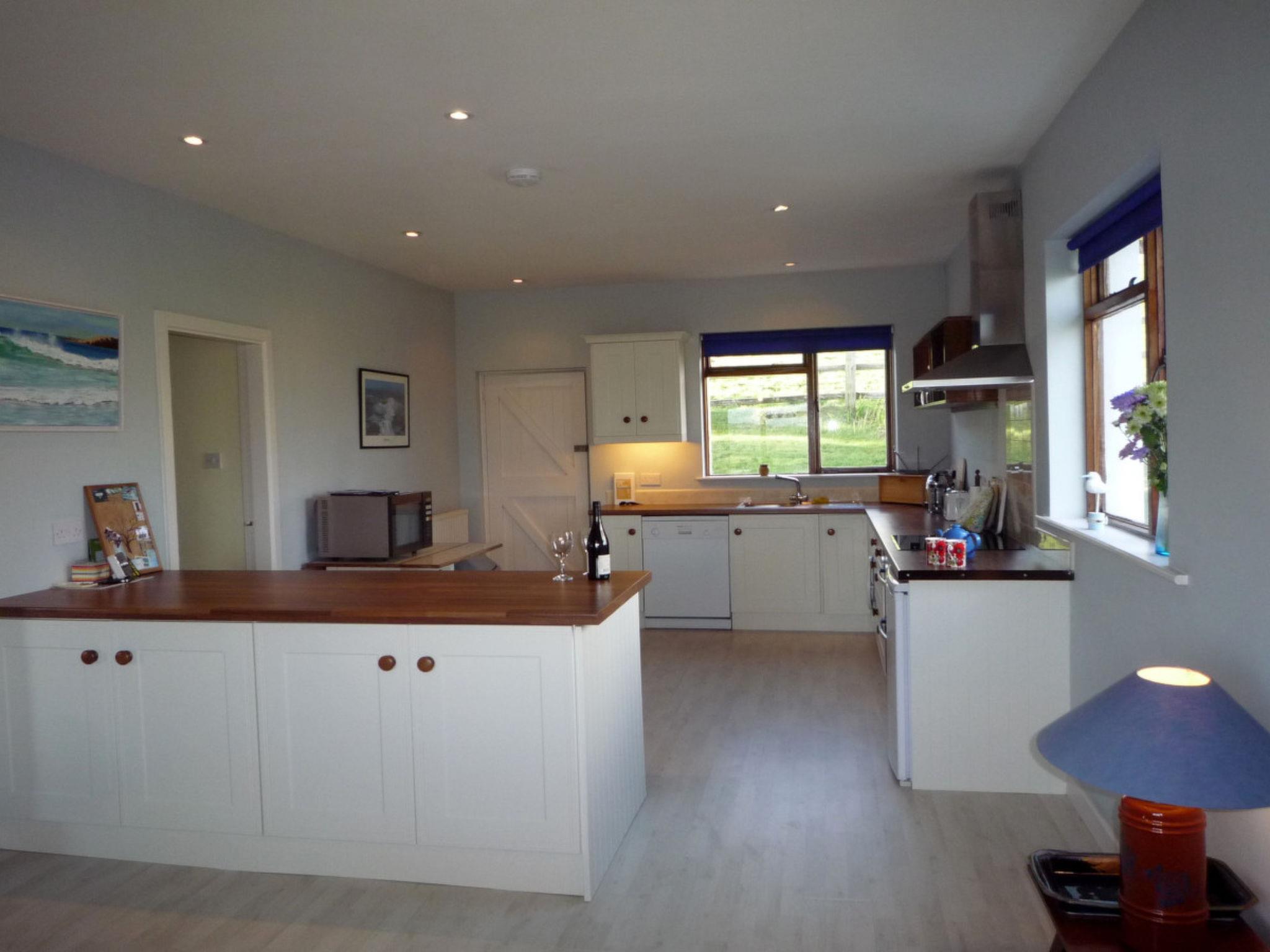 "Dingle Bay View (TR2)", 5-room bungalow 120 m2. Object suitable for 6 adults. Living room with open-hearth fireplace. 1 room with 1 french bed. 1 room with 1 double bed. 1 room with 1 bed. 1 room with 1 bed. Kitchen (4 hot plates, oven, dishwasher, toaster, kettle, microwave). Bath/WC. Facilities: washing machine, iron. Internet (WiFi, free). Please note: non-smokers only. Smoke alarm.