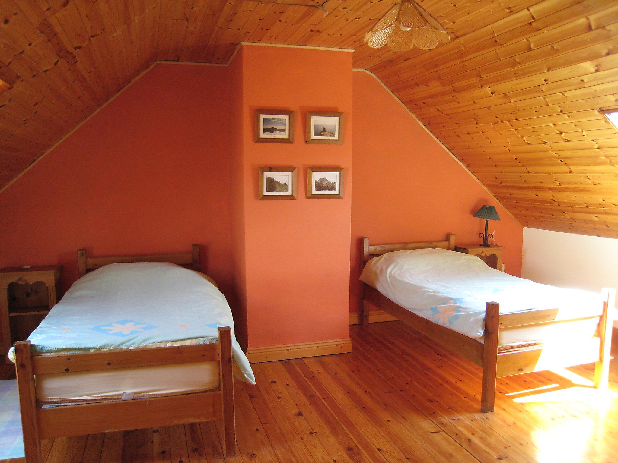 5-room house 129 m2 on 2 levels. Comfortable and cosy furnishings: living/dining room with open-hearth fireplace, dining table and TV. Exit to the patio. 1 room with 1 french bed. 1 room with 2 beds. Kitchen (4 hot plates, oven, dishwasher, microwave, freezer). Bath/WC. Upper floor: with sloping ceilings, 1 room with 1 french bed and shower/WC. 1 room with 2 beds and shower/WC. Patio. Terrace furniture. Beautiful view of the sea. Facilities: washing machine, dryer, iron, children's high chair, baby cot, hair dryer. Please note: TV only EN.